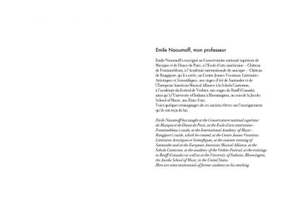 The DVD is accompanied by a booklet with testimonials by some of Emile Naoumoff's former students, who evoke their experiences with this exceptional artist and teacher