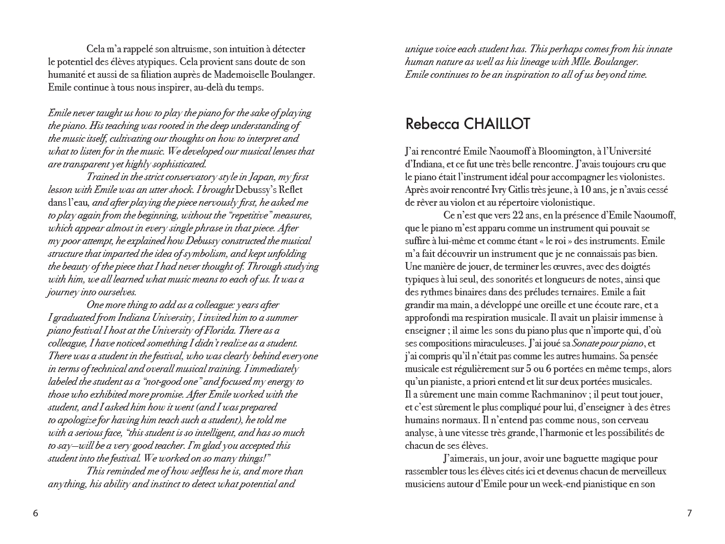 A filmed interview with the pianist, composer and teacher Émile Naoumoff, conducted by Nathalie Guilbaud, with a booklet gathering the testimonies of some of his former students.