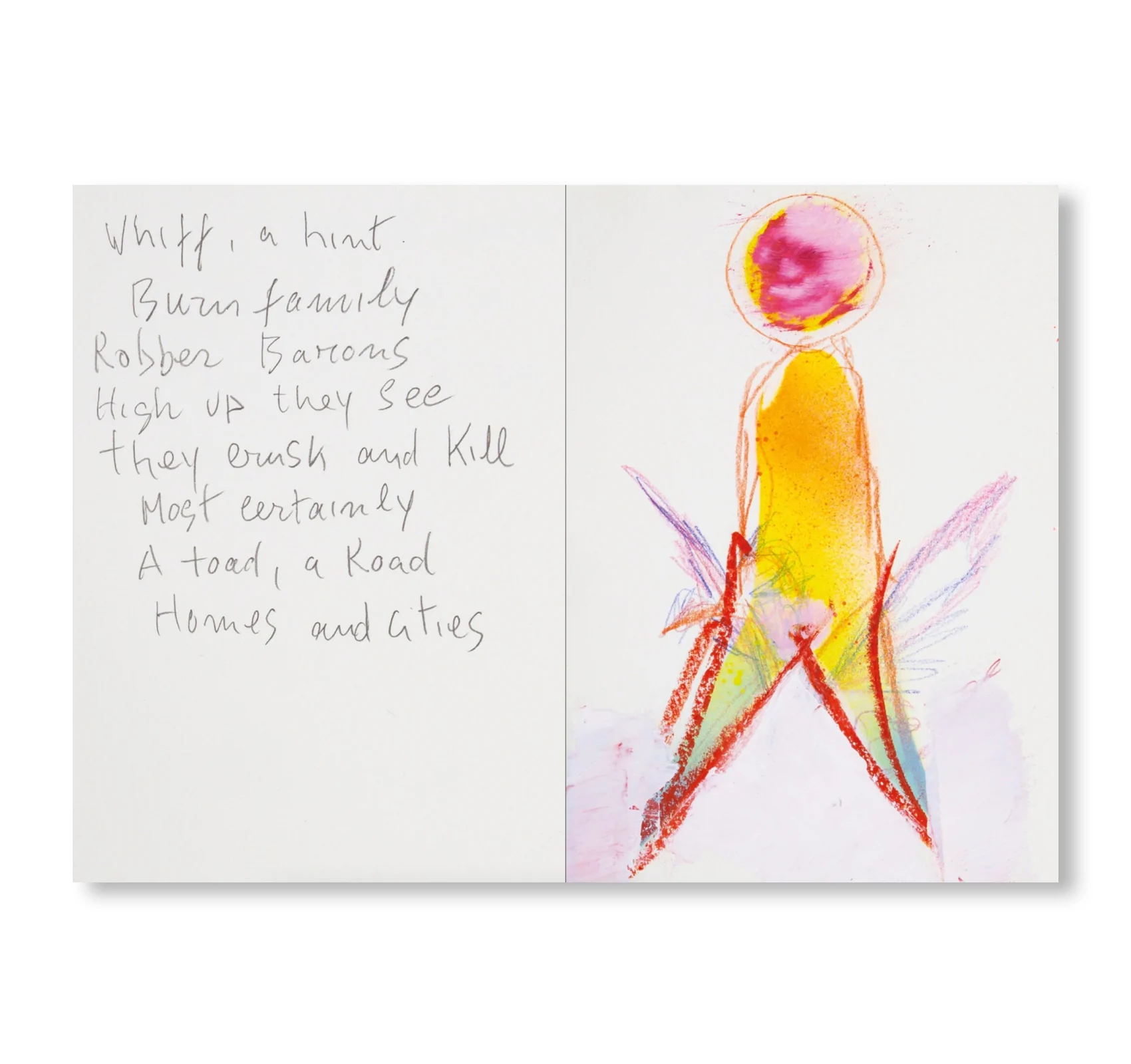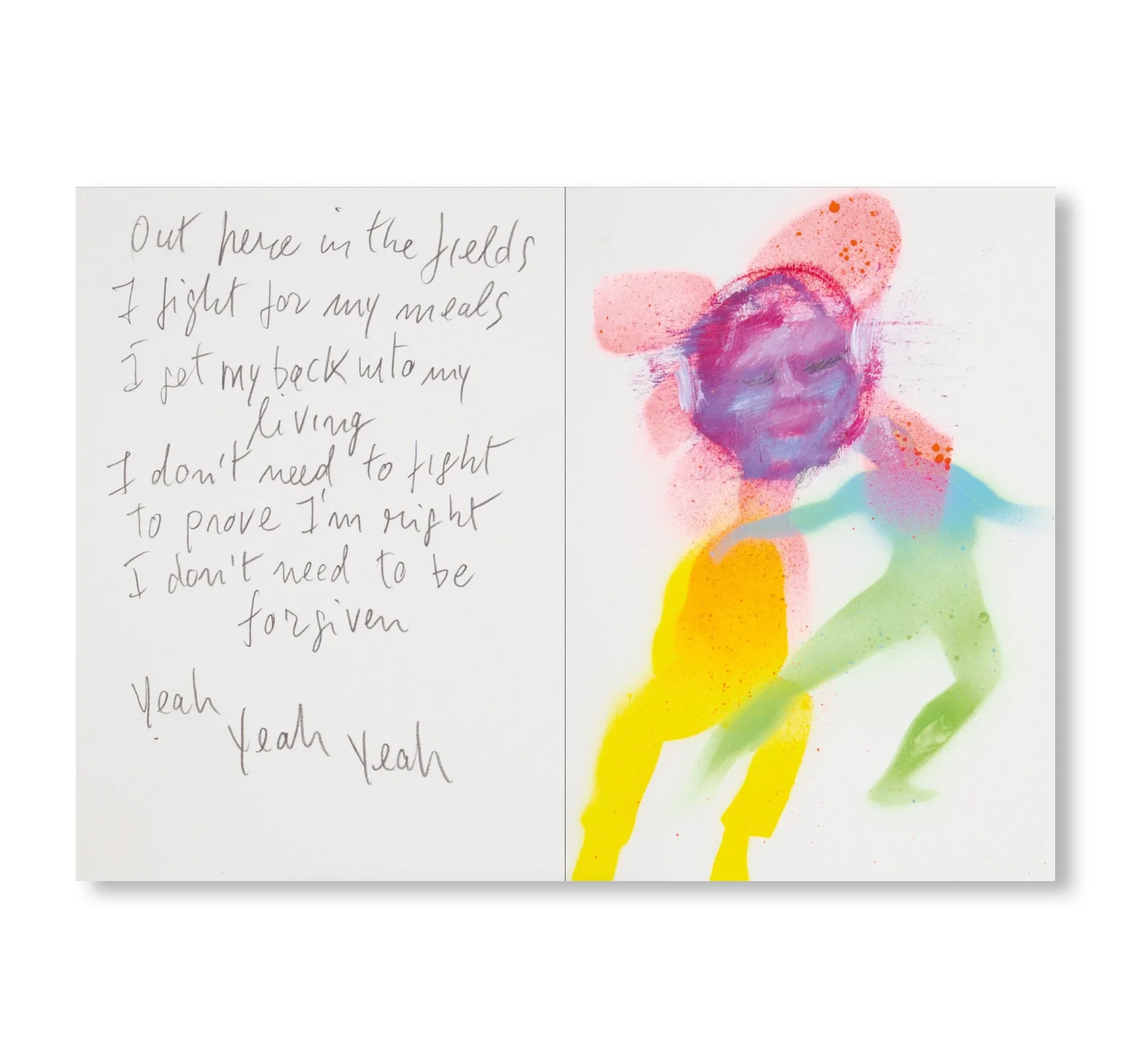 Autobiography by Alessandro Pessoli is a mix of drawings and written words created specifically for the publication. The handwritten texts belong from some of the songs the artist is used to listen while at work.