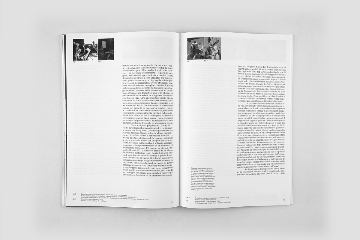 Through a range of references, Roccasalva has developed a vast iconographic repertoire made up of characters, objects, architectures, and his own peculiar vocabulary, deployed to reflect on the crisis of the Subject, and in turn that of identity, image, and form. This publication highlights the inter-connections and cross-references between themes, iconographies, techniques, and languages adopted by the artist over the years, accompanied by photographic documentation of the exhibition in which it originates and critical texts by art historians Ara H. Merjian and Flavia Frigeri. Ara H. Merjian's essay retraces Roccasalva's production through comparison with the history of twentieth-century art, while Flavia Frigeri reads the work through shifts in the temporal, spatial, and narrative prism.