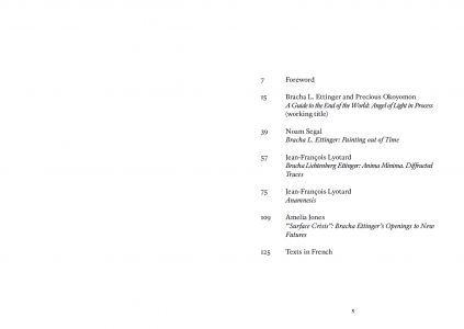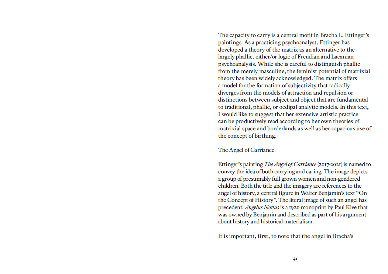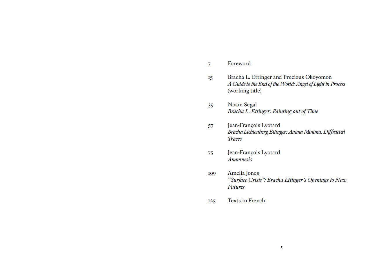 Un parcours de l'œuvre peinte de Bracha L. Ettinger, à travers un ensemble de reproductions et de textes de Jean-François Lyotard, Nicolas Bourriaud, Noam Segal, Amelia Jones, Precious Okoyomon et de l'artiste elle-même.