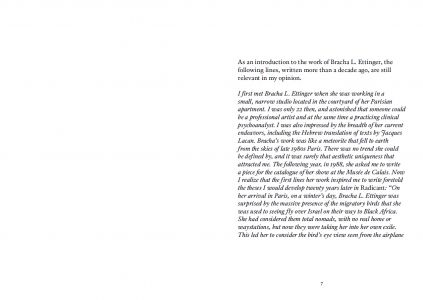 Pour la première exposition personnelle de Bracha L. Ettinger à Paris depuis 22 ans, Radicants publie un ensemble de textes essentiels autour de son travail, incluant deux textes de Jean-François Lyotard, un écrit de Noam Segal (commissaire de l'exposition), un texte d'Amelia Jones, et enfin – le plus récent – un projet d'écriture à quatre mains de Precious Okoyomon et Bracha L. Ettinger elle-même.