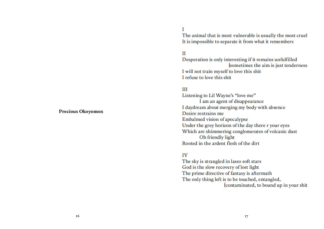Textes de Nicolas Bourriaud, Amelia Jones, Bracha Lichtenberg Ettinger, Jean-François Lyotard, Precious Okoyomon, Noam Segal.