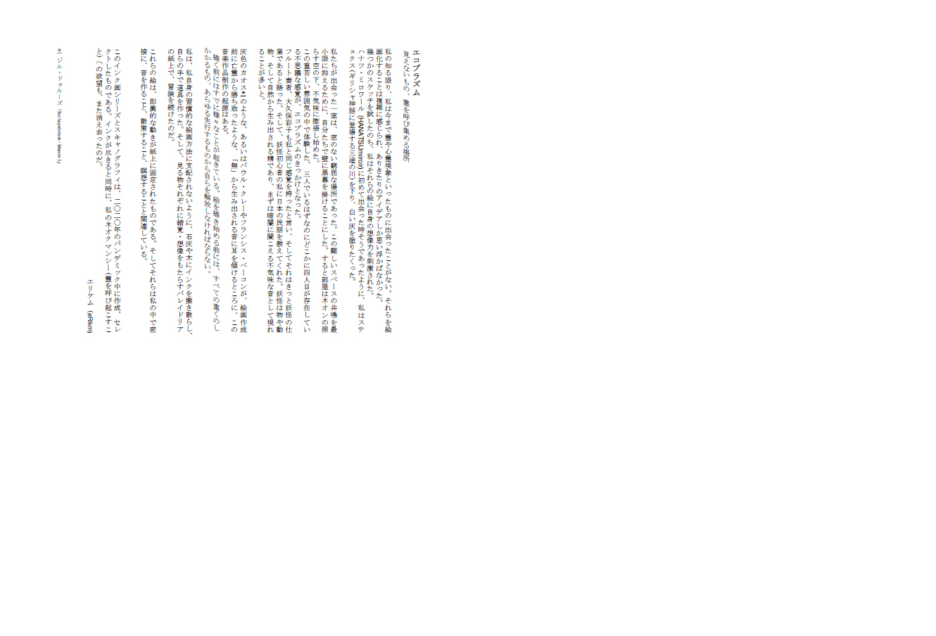 Une série de dessins à l'encre et de scanographies fantomatiques d'eRikm, accompagnée d'une pièce sonore mixte déclinée en 13 arcanes, avec des textes sonores librement inspirés de fragments d'histoires sur l'univers des Yokai, ces fantômes et créatures surnaturelles qui peuplent la mythologie japonaise, entre paysages sonores hypnotisants et dispositifs instrumentaux envoûtants.