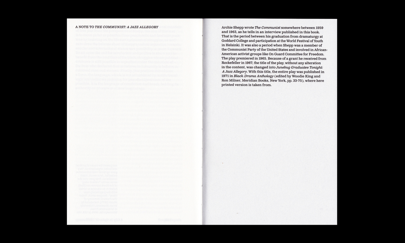 Outre l'aperçu théorique et historique présenté par les éditeurs Sezgin Boynik et Taneli Viitahuhta, l'ouvrage comprend des témoignages de l'esprit collectif et international du festival de 1962, des documents traduits de la presse finlandaise, une nouvelle interview d'Archie Shepp, un texte commandé à Jeff Schwartz sur le contexte historique de l'engagement politique des musiciens de free jazz, et la reproduction de trois textes de Shepp difficiles à trouver. La nouvelle édition de Free Jazz Communism comprend également la réimpression de l'intégralité du script de la pièce d'Archie Shepp, The Communist (Junebug Graduates Tonight: A Jazz Allegory).