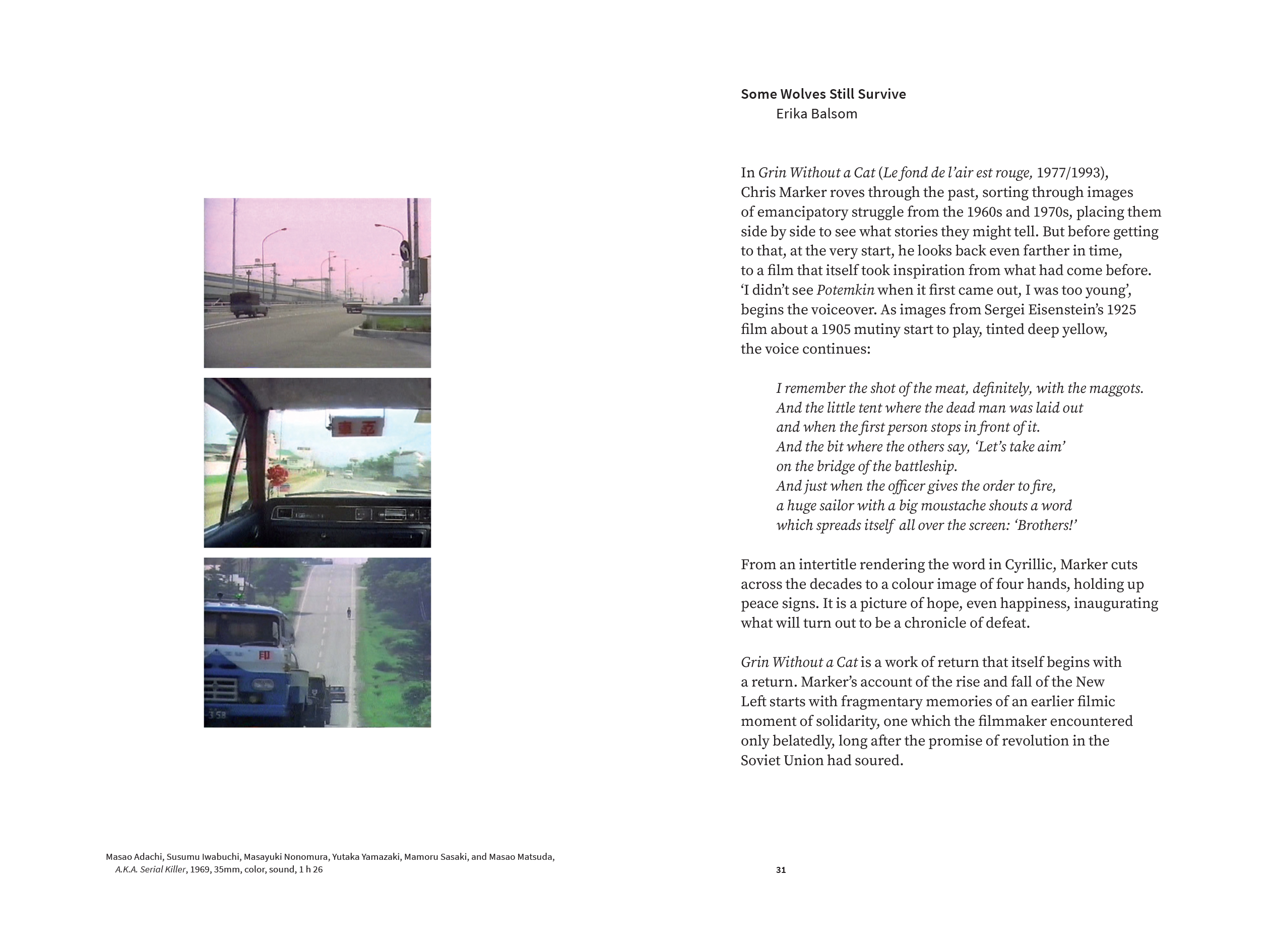 Textes de Erika Balsom et Marcella Lista.