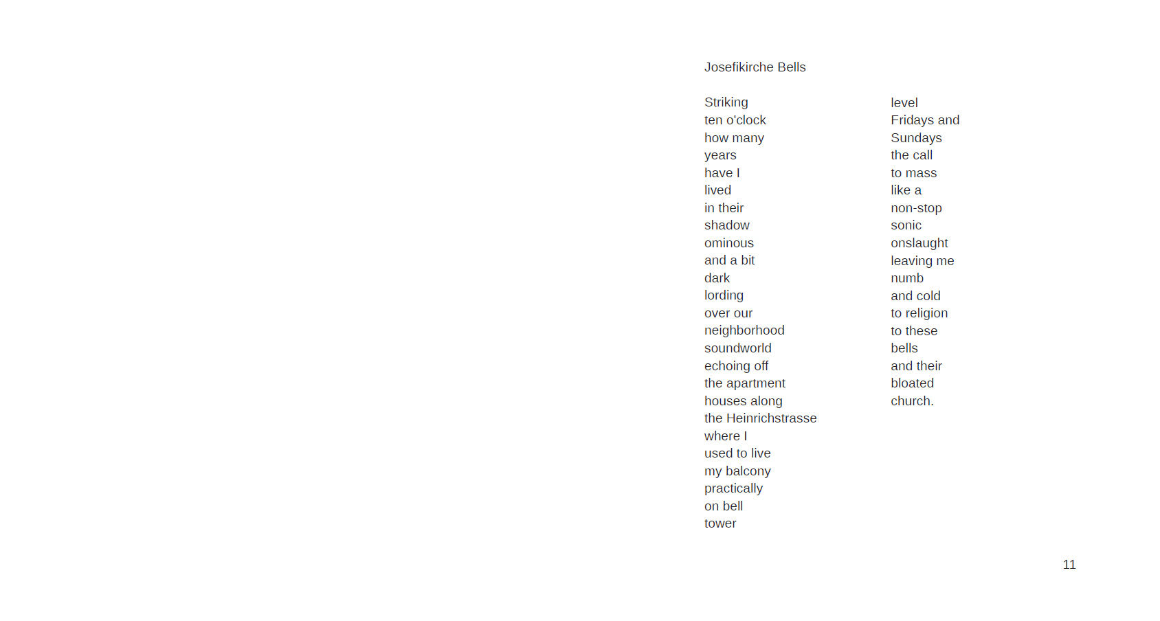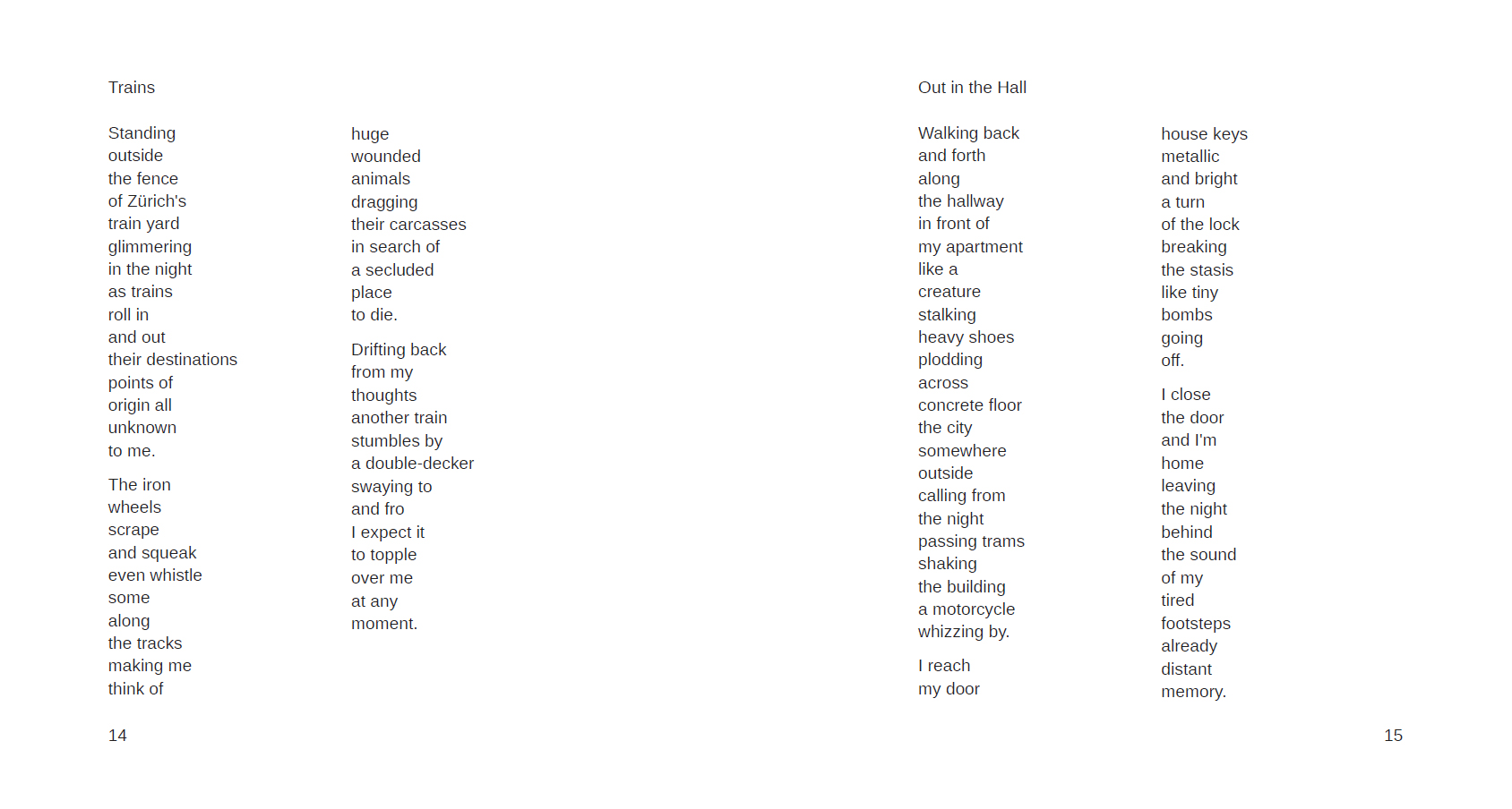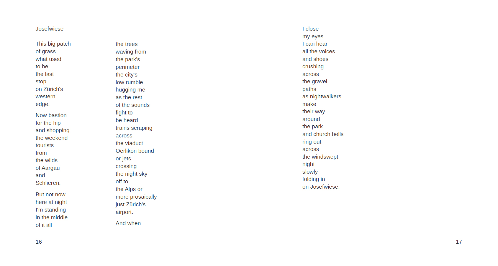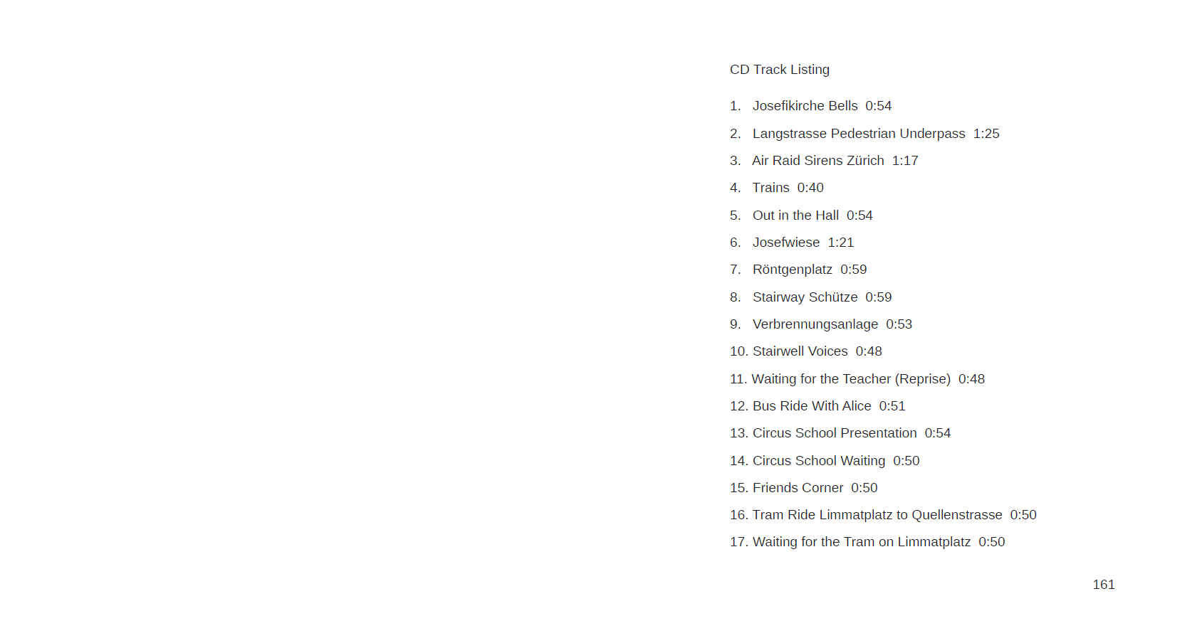 Un recueil de 77 textes de Jason Kahn, chaque texte ayant été écrit en réponse à un enregistrement de terrain réalisé par l'artiste sonore à Zurich en février-mars 2020 (CD audio contenant les 77 enregistrements inclus) : une cartographie poétique et sonore qui rend compte de la constitution du lieu par la manière dont il « sonne ».