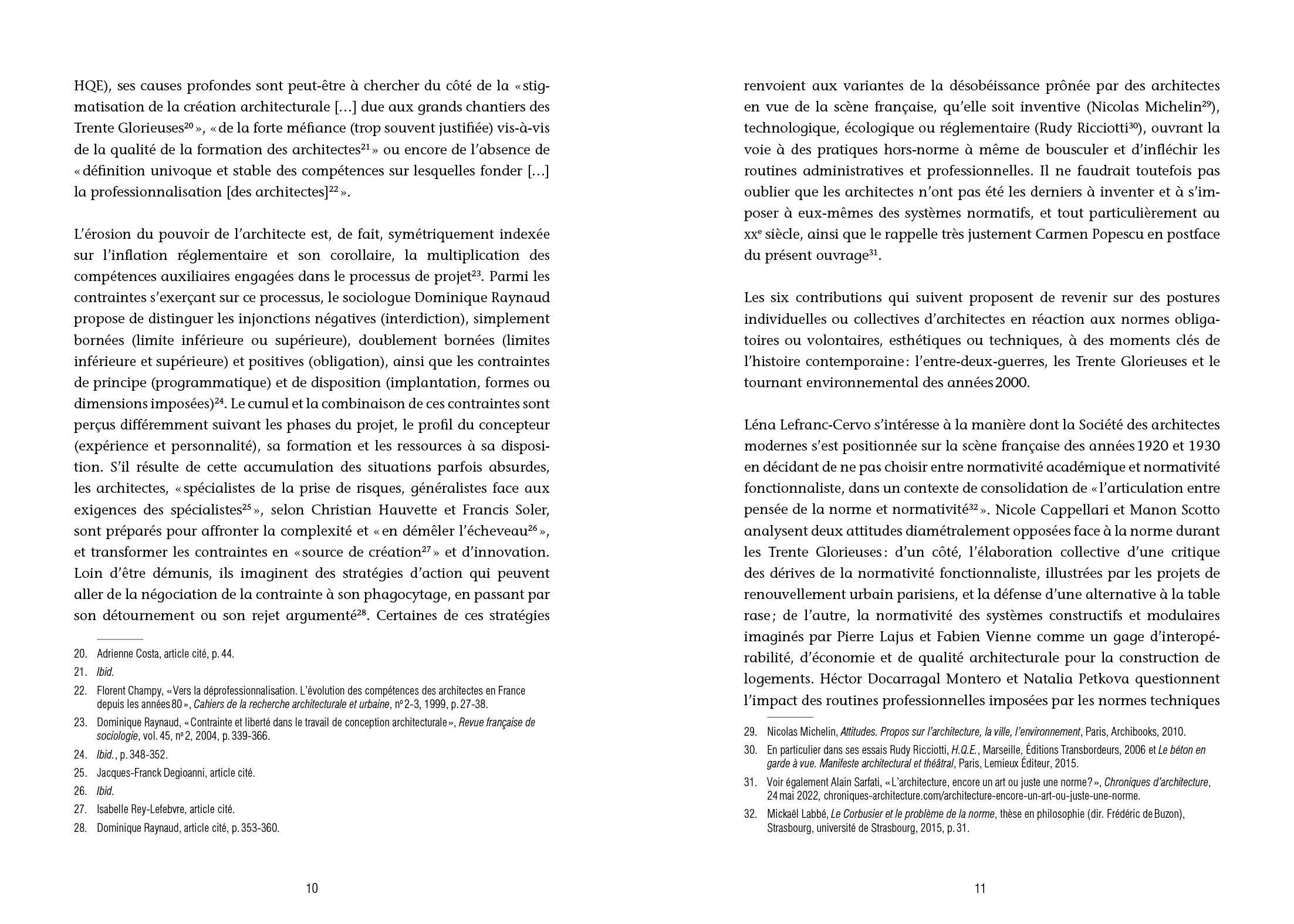 - « Transgression de normes » brosse un portrait collectif d'architectes français engagés dans la voie du hors-norme et la critique de son institutionnalisation inachevée.