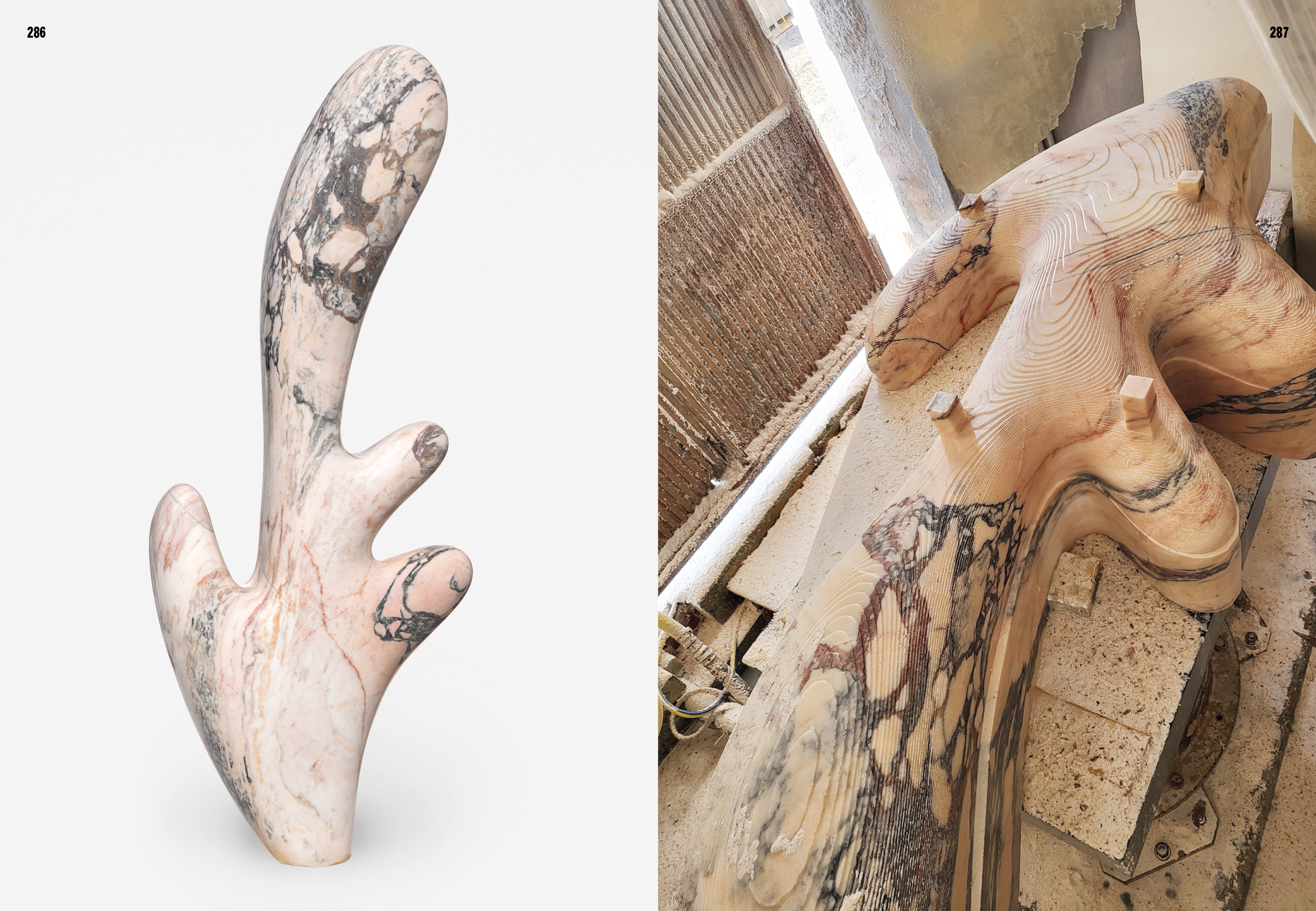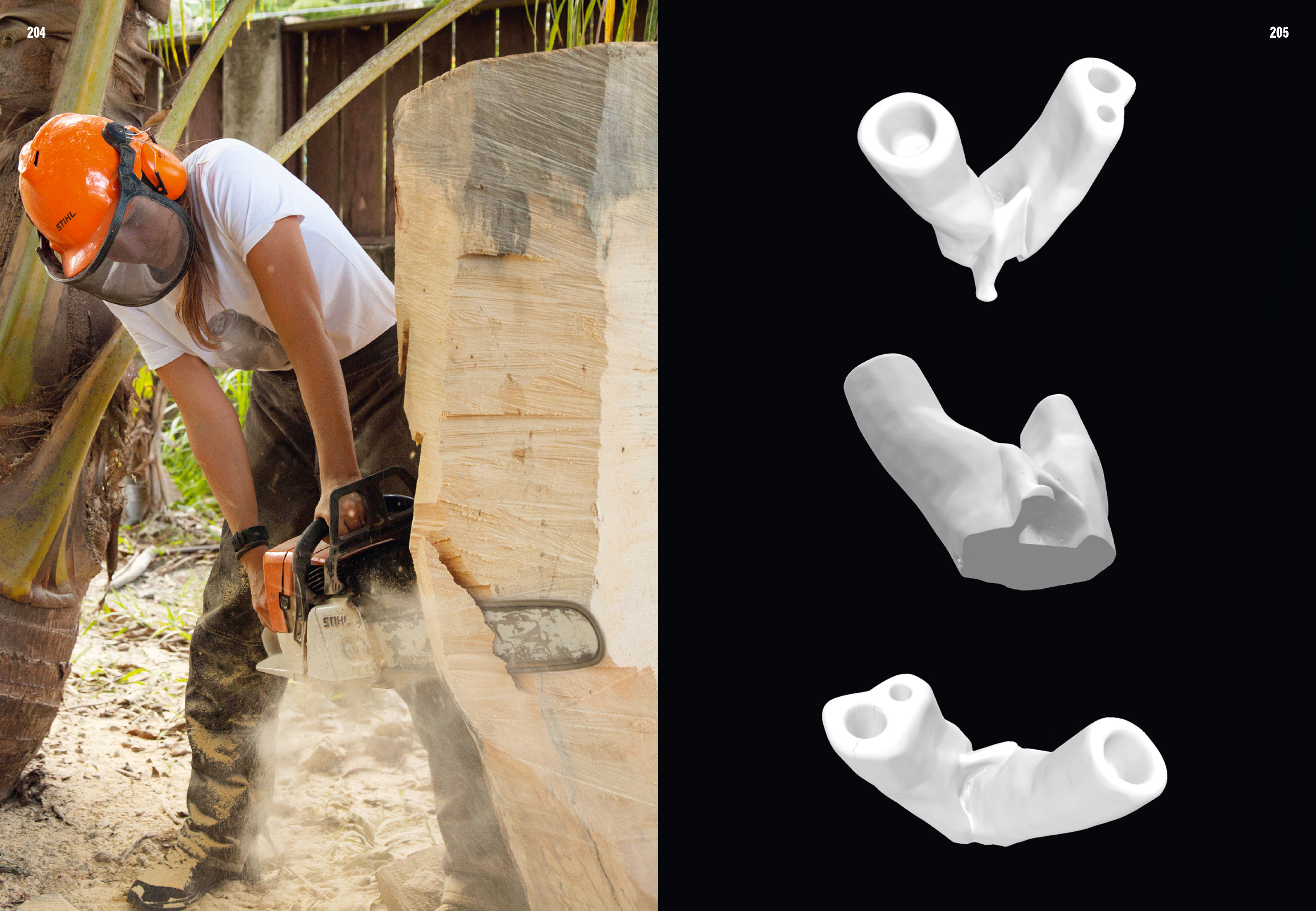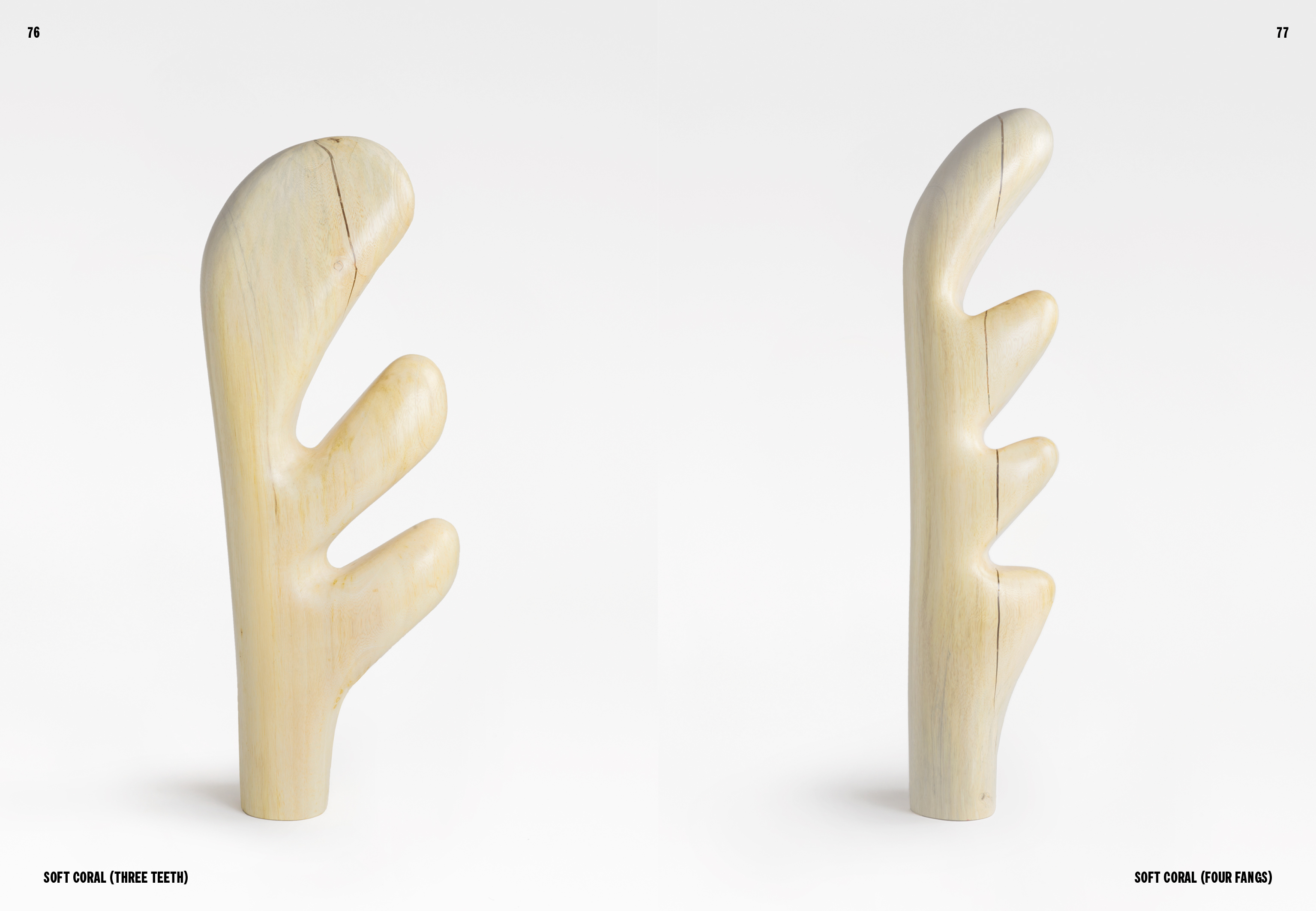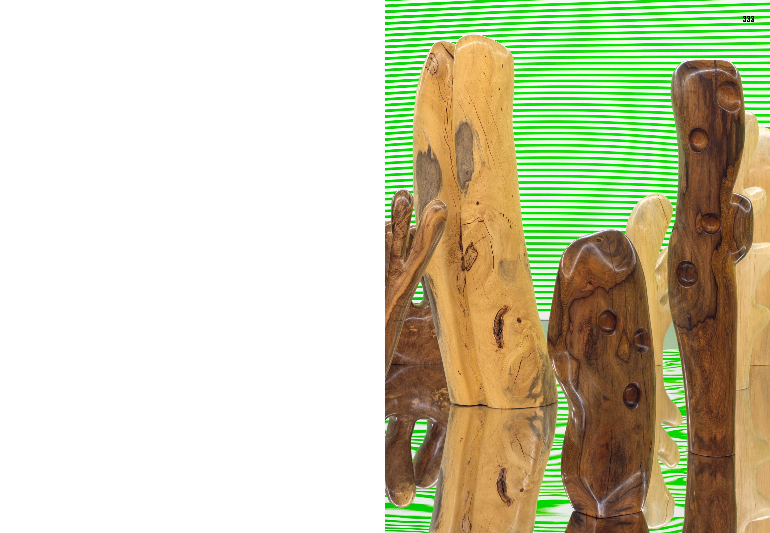 Le livre commence par un index des sculptures en bois de Comte, auxquelles elle donne des surnons, comme s'il s'agissait d'êtres familiers. Réalisées à partir de croquis, elles sont sculptées dans le bois ou exécutées dans le marbre à l'aide de supports numériques. Ainsi, le marbre, représentation pétrifiée de la mer, rencontre le bois, lieu de stockage des processus naturels terrestres et source constante d'oxygène.