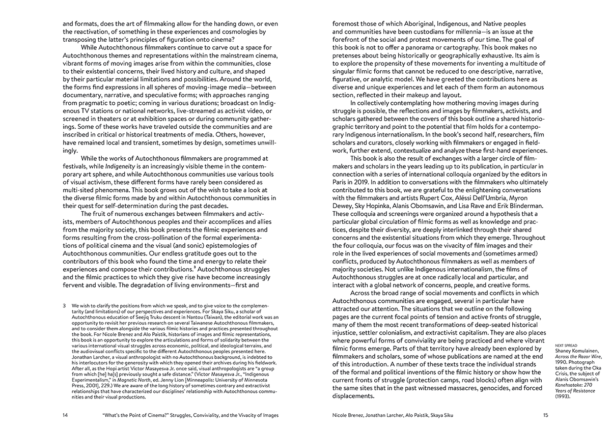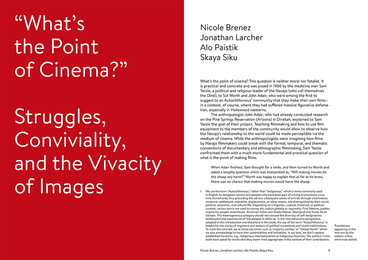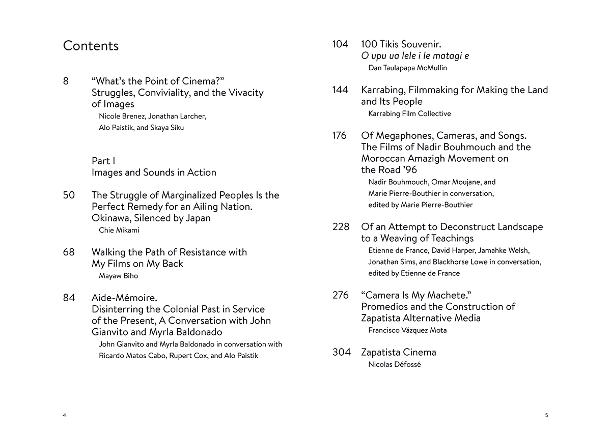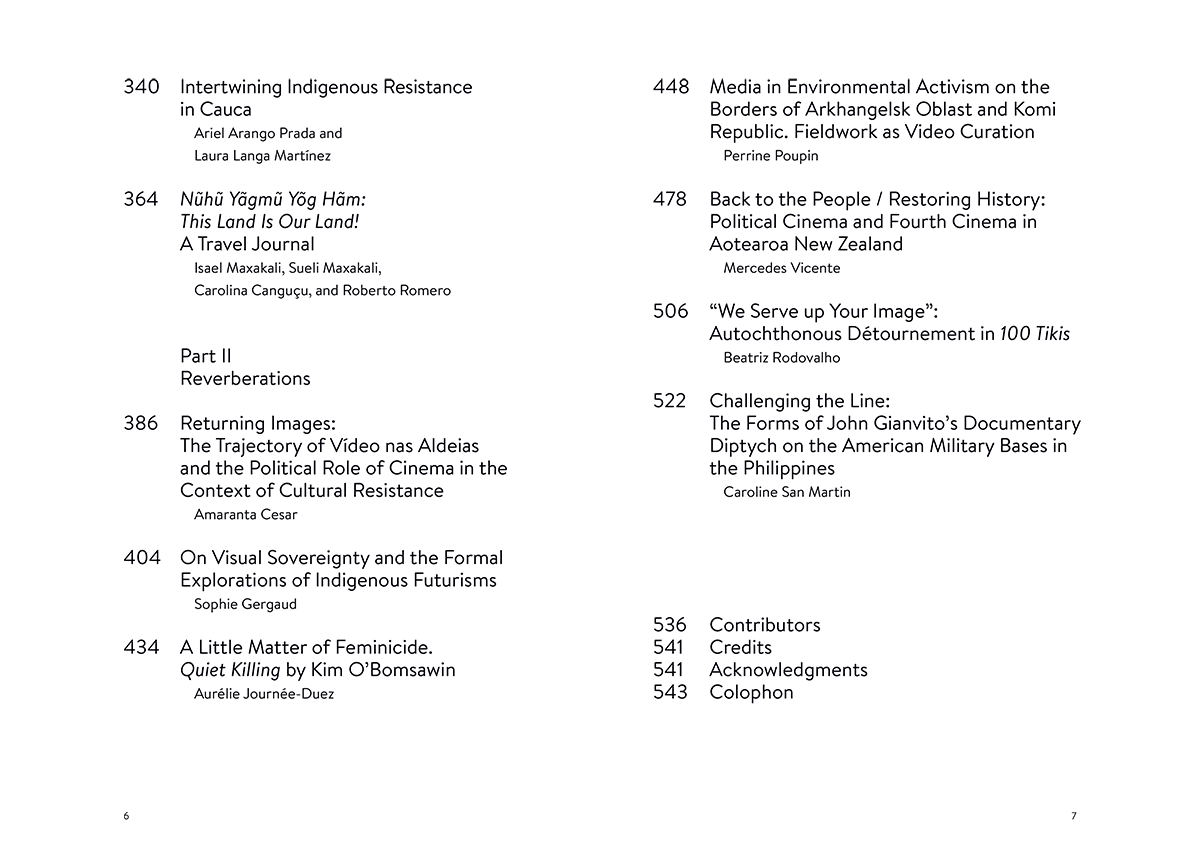 Contributions by Myrla Baldonado, Mayaw Biho, Nadir Bouhmouch, Ricardo Matos Cabo, Carolina Canguçu, Amaranta Cesar, Karrabing Film Collective, Rupert Cox, Nicolas Défossé, Etienne De France, Sophie Gergaud, John Gianvito, David Harper, Aurélie Journée-Duez, Blackhouse Lowe, Caroline San Martin, Laura Langa Martínez, Isael Maxakali, Sueli Maxakali, Dan Taulapapa Mcmullin, Chie Mikami, Francisco Vázquez Mota, Omar Moujane, Marie Pierre-Bouthier, Perrine Poupin, Ariel Arango Prada, Beatriz Rodovalho, Roberto Romero, Jonathan Sims, Mercedes Vicente, Jamahke Welsh.
