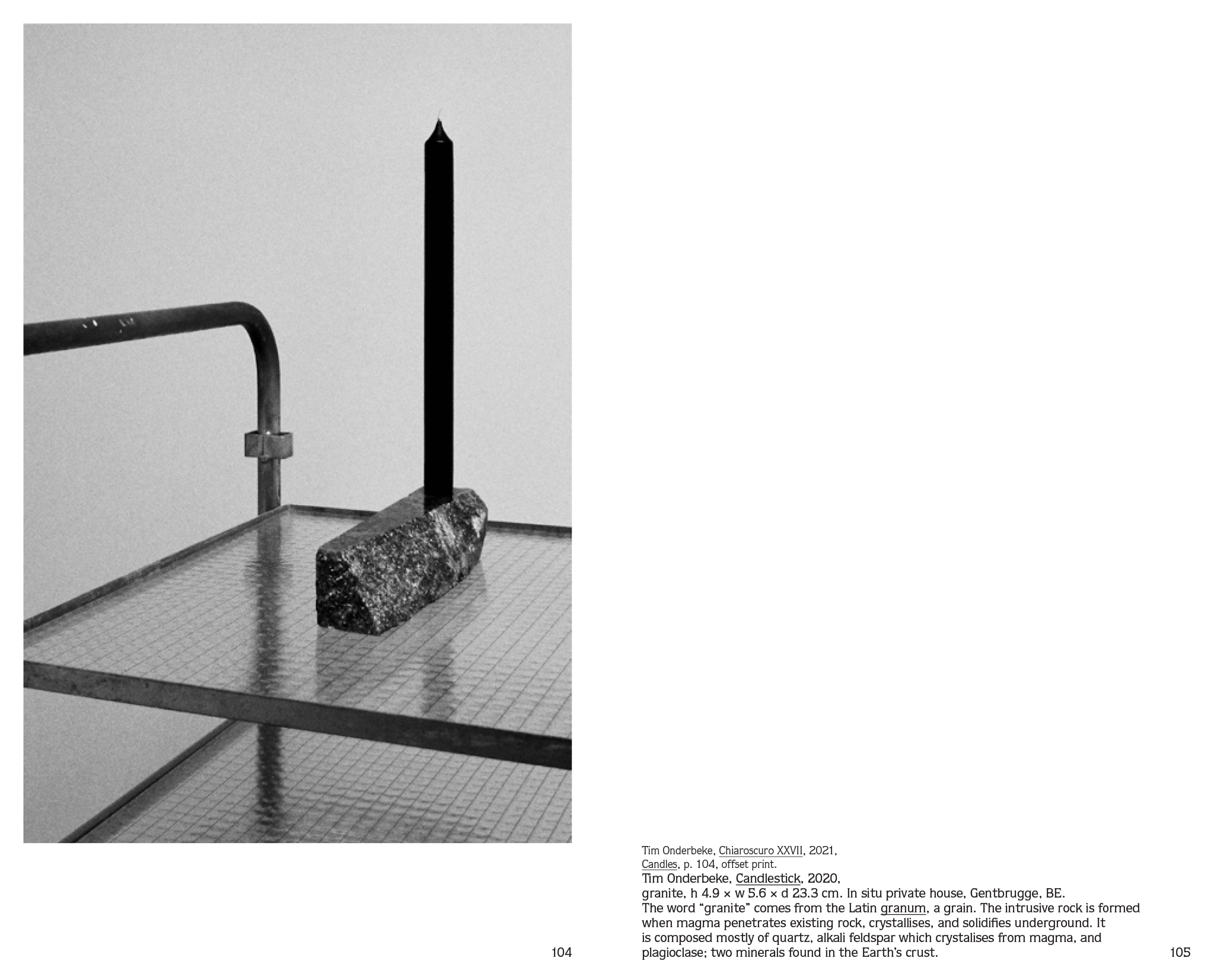Candles, Onderbeke utilise son propre travail et celui d'autres personnes pour étudier ce qu'il appelle « la couleur de l'obscurité » ou l'espace négatif, un concept qu'il a emprunté à l'écrivain et essayiste japonais Jun'ichirō Tanizaki. Tanizaki décrit cette expérience intense qu'il a vécue dans une grande pièce sombre d'une maison de thé japonaise, où la lumière de quelques bougies donnait à l'obscurité environnante une présence tangible, comme si elle se transformait en une matière monolithique. Onderbeke voit dans une bougie allumée une implosion de l'espace architectural dont le centre est habituellement laissé vide. Une bougie allumée dans une pièce sombre renverse cette expérience et influence notre perception de l'espace, du temps et de l'atmosphère.