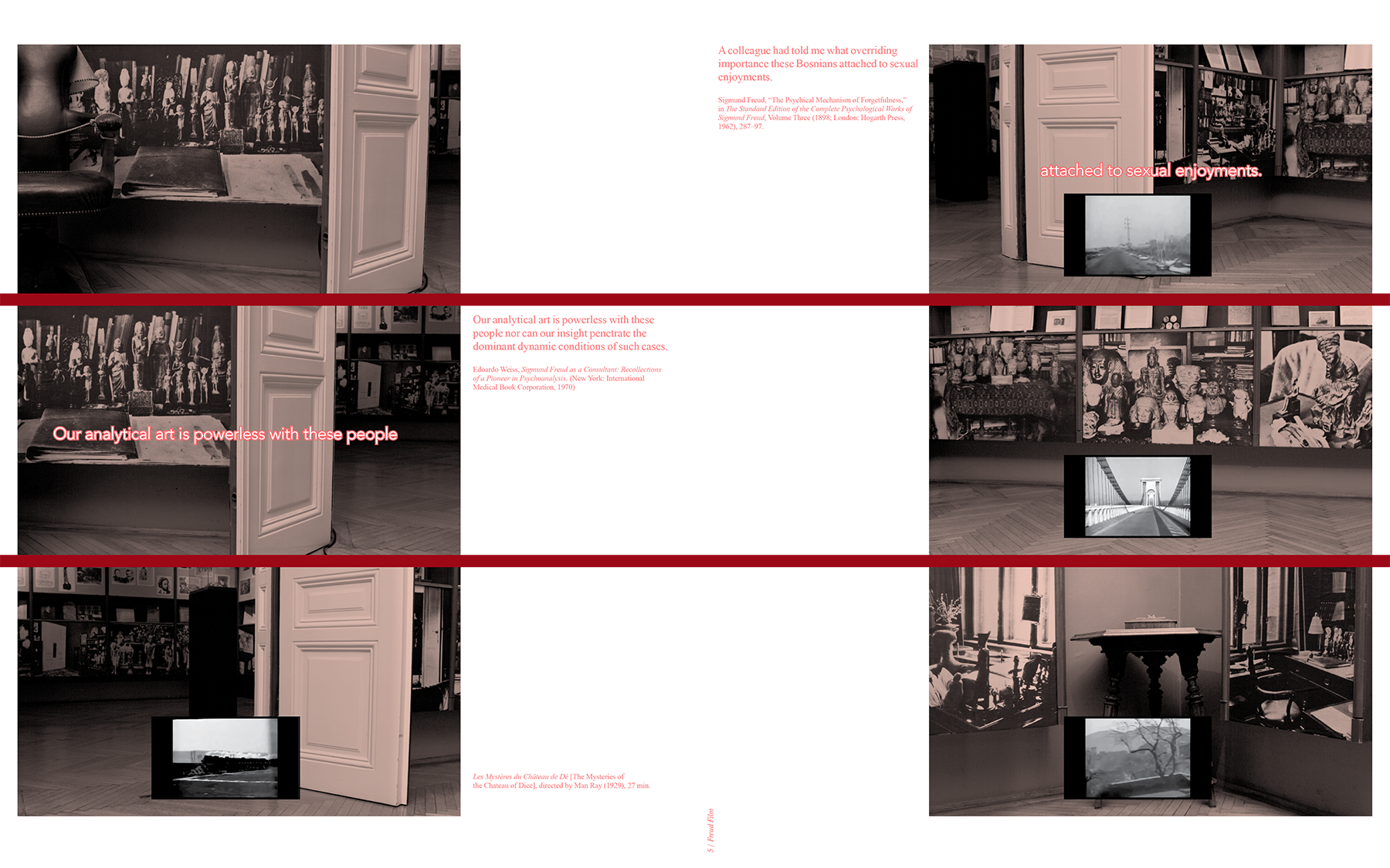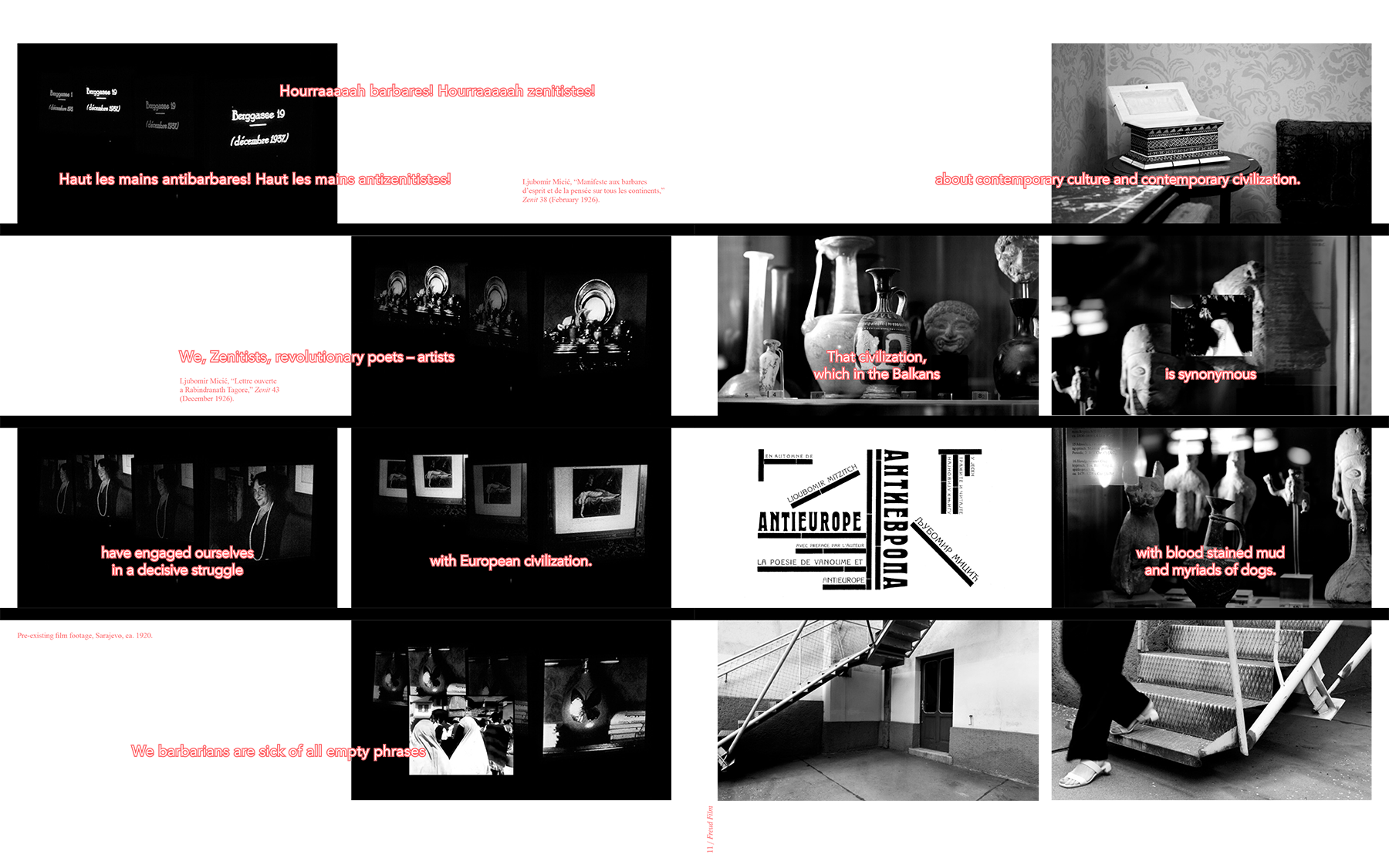 In Freud Film, Ana Hoffner ex-Prvulovic deals with the unconscious within the development of Freud's psychoanalytical theory and tackles the racialized and heteropatriarchal dimension of its concept of "alterity", which is foundational to the constitution of a modern "European identity"—based, actually, on the exclusion of others. Non-alignment as a geopolitical reality and as a concept—a political and cultural refusal to align to certain normative models and behaviors—recurs often in the artist's work. Non-aligned Relatives is a work constellation in which she investigates diverse aspects of non-alignment, on political, cultural, and psychoanalytical levels, especially also linking it to formations of queer kinship, a strategy which continues in The Bacha Posh Project.