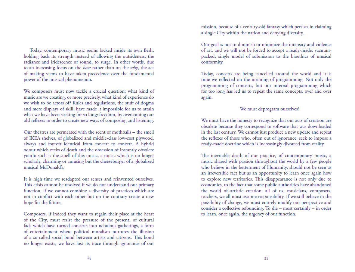 Un essai du compositeur français qui met en perspective ses concepts musicaux et articule sa vision de la musique et de la société.
