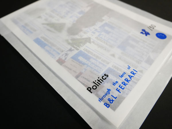 Photographies imprimées sur papier non couché 250 g/m², insérées dans une pochette en papier cristal, sérigraphiée et numérotée.