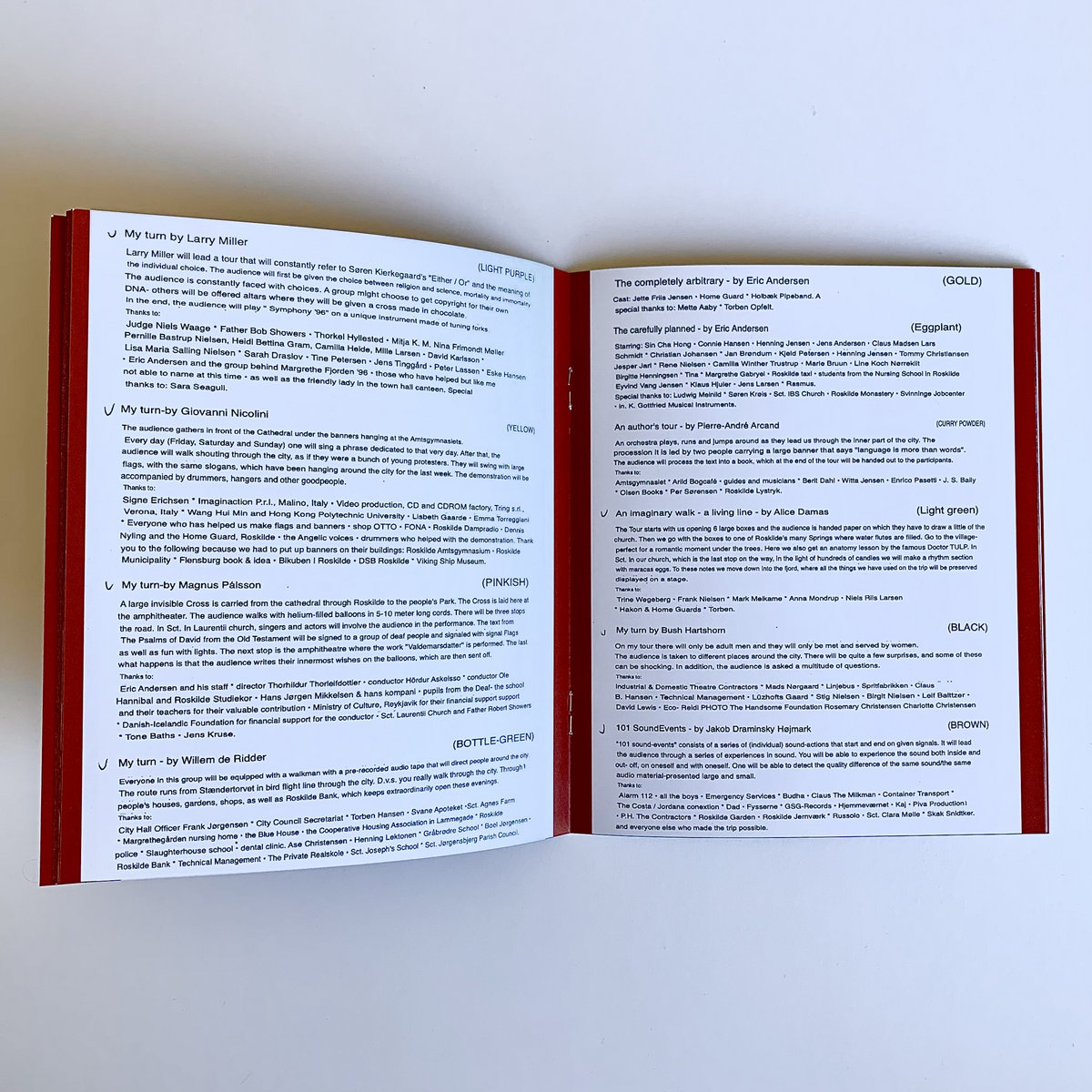 Plus de 4 heures de vidéo sont présentées, d'un concert d'orgue complet tenu dans la cathédrale de Roskilde, avec des mannequins sur échasses et des grenouilles jouets sautant dans les bancs, à un « ballet aérien » d'hélicoptères dansant au-dessus de l'eau la nuit. La ville entière est devenue la scène des trois soirées de représentation. Les images immersives tournées à la main circulent entre les événements, naviguant dans les rues et entre les événements. Une qualité surréaliste de film amateur.