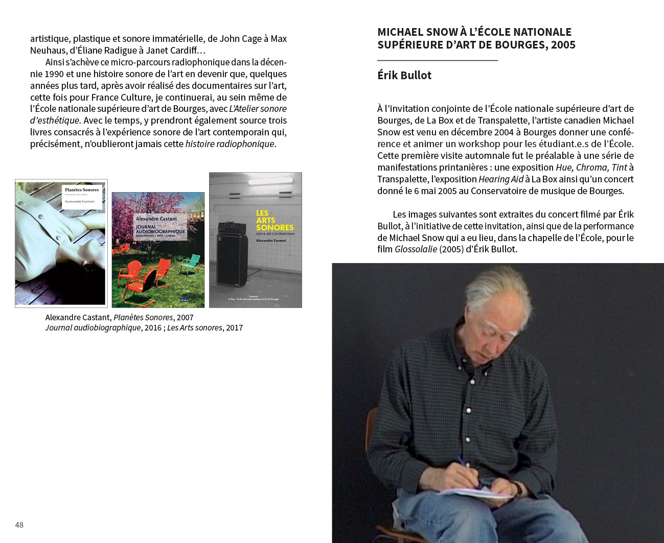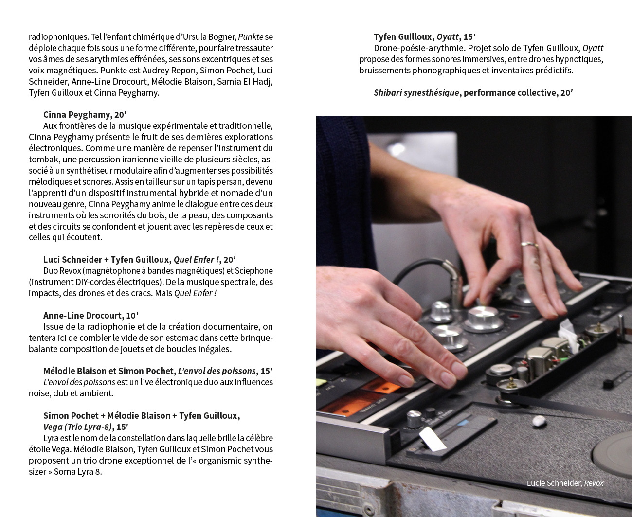 Contributions de Benjamin L. Aman, Carla Beaumatin, Neal Beggs, Érik Bullot, Alexandre Castant, Ambre Charpagne, Florence Chevallier, Cécile Colle}{Ralf Nuhn, Magali Desbazeille, Anaïs Dunn et Stéphane Joly, Ferenc Gróf, Stéphanie Jamet, Jérôme Joy, Tatiana Komaroff, Aurélien Krafft, LASSO (Association étudiante de l'École nationale supérieure d'art de Bourges), Ingrid Luche, Jean-Michel Ponty, Myriam Pruvot, Punkte (post-diplôme Arts & créations sonores), Nina Queissner, Sofia Quintero, Talla Thiam, Antonin Verhulst, Li Xinran et Sonia Gassemi, Liu Yaonan, Jonathan Zwaenepoel.