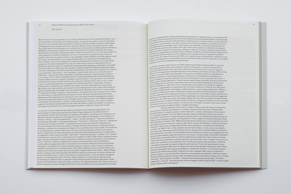 Plus d'un demi-siècle après sa conception, cette publication examine la relation entre les premiers habitants et l'urbanisme, l'architecture et la décoration intérieure de Milano San Felice, en faisant appel à la fois à ceux qui ont participé à la phase de développement et à la première communauté de résidents – qui, avec beaucoup de soin et de fierté, abrite un ensemble remarquable d'archives privées et de souvenirs personnels et collectifs. Avec une contribution narrative de l'écrivain Ivan Carozzi et un texte de l'historien de l'architecture Filippo De Pieri.