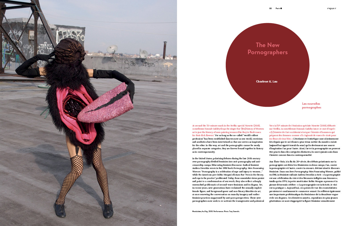 À la suite de l'essor de l'industrie pornographique des années 1970, les œuvres d'art présentant des images explicites de la sexualité vont critiquer à la fois cette industrie et le milieu artistique. Durant plusieurs décennies, des artistes transgresseront non seulement le cloisonnement des catégories art et pornographie, mais aussi l'aspect patriarcal de l'art, des pornographies commerciales et des normes sexuelles. Les textes du dossier Porn·O sont l'occasion de rappeler diverses productions artistiques mettant en scène une diversité de représentations sexuelles à travers la pornographie alternative, éducative, gaie, lesbiennes, dyke, queer, féministe, amateure, laquelle transforme les pourtours de la pornographie, la rendant littéralement protéiforme.