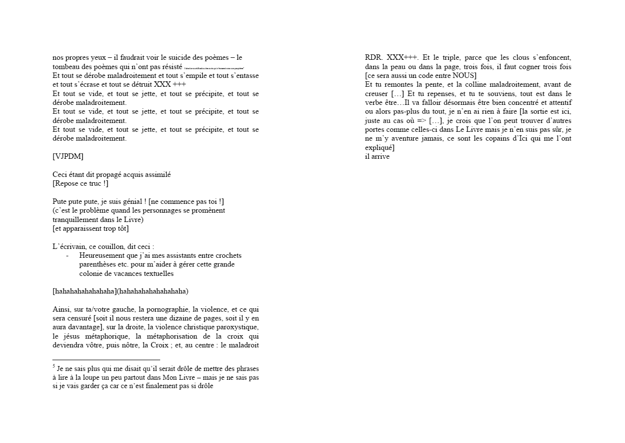 Une interrogation viscérale sur ce qu'un livre peut ou ne peut être, et sur les positions de l'auteur/lecteur.