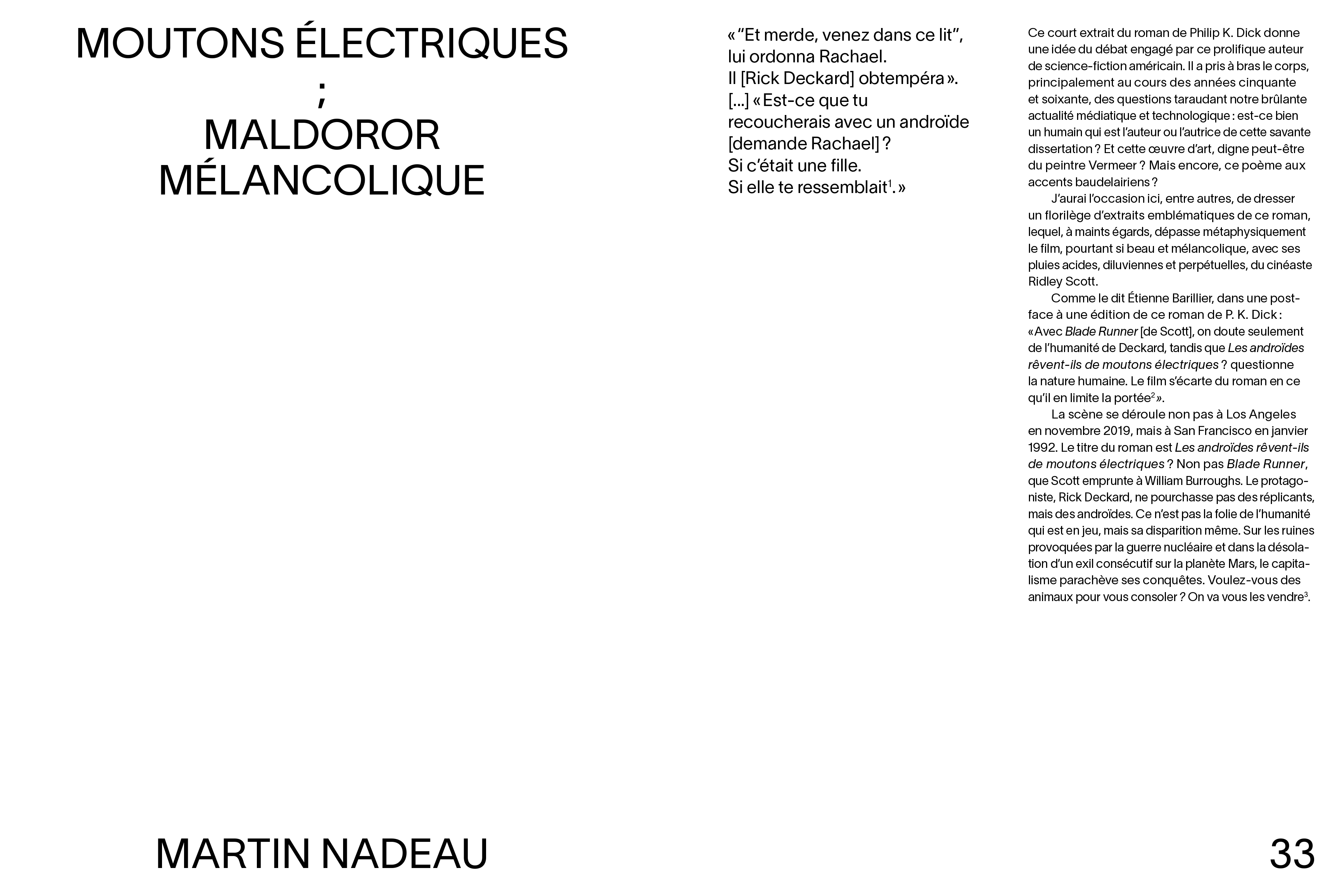 Beaucoup d'autres aspects sont abordés, parce qu'il s'agit bien d'abord d'actualiser le thème névralgique de la mélancolie ; ainsi, les lectrices et lecteurs pourront trouver des articles au sujet de films (Matrix, Blade Runner) ; de quelques poèmes, ainsi que des considérations philosophiques et littéraires ; n'a-t-on pas dit à propos du roman de Burgess cité ci-dessus qu'il s'agit d'un roman philosophique ?