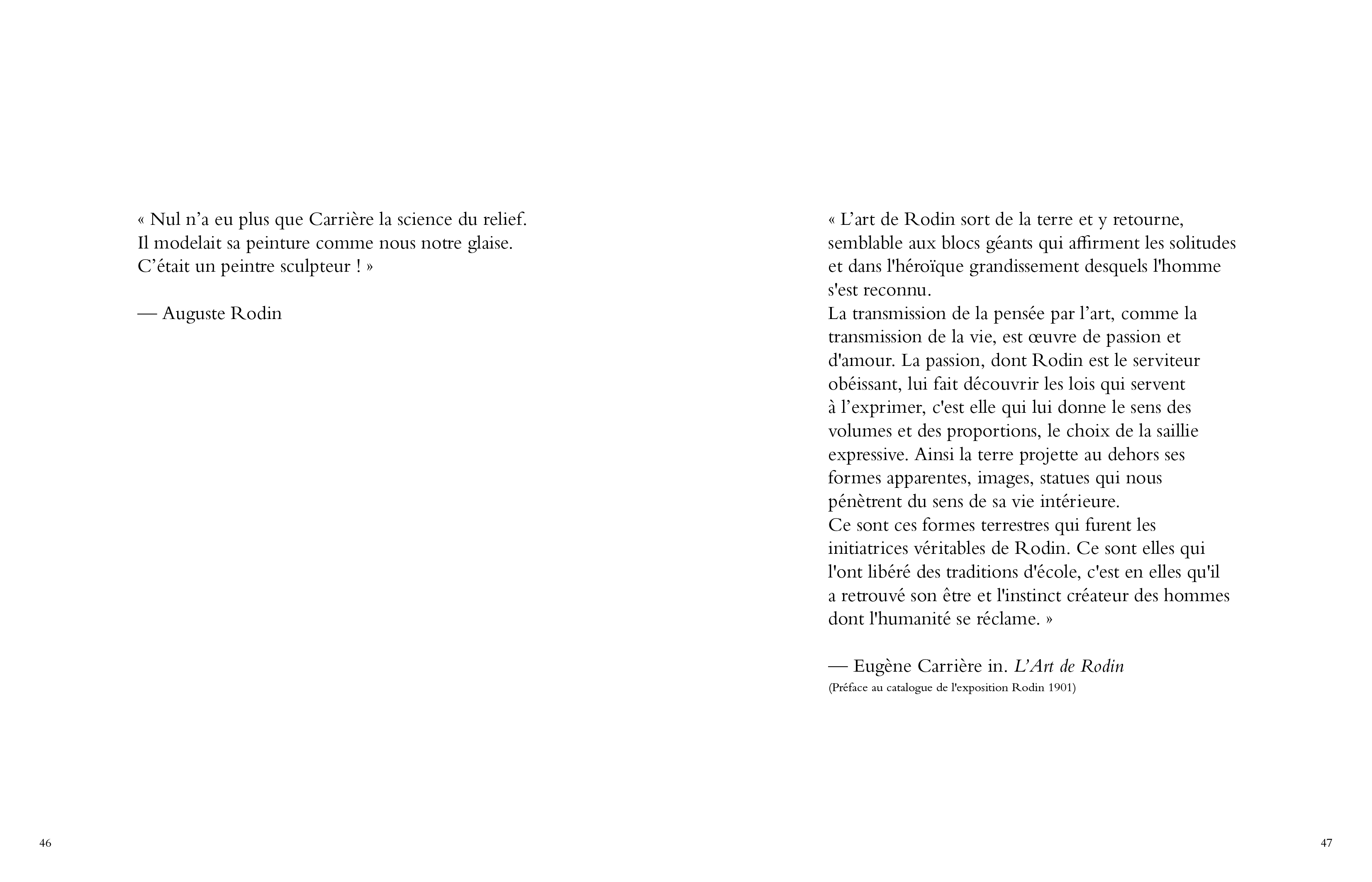 Ce catalogue propose une vue d'ensemble du travail d'Eugène Carrière couvrant plus de vingt-cinq années d'une œuvre prolifique et néanmoins limitée à quelques sujets de prédilection : des scènes de la vie quotidienne, avec sa femme et ses enfants, ses amitiés, des paysages. Artiste admiré de son vivant, il a été oublié après sa mort, en dépit des nombreuses œuvres présentes dans les collections des musées les plus prestigieux en France comme à l'étranger. Traçant une voie singulière, à contre-courant des mouvements dominants de son temps, Carrière a influencé les plus grands artistes de la modernité comme Picasso,