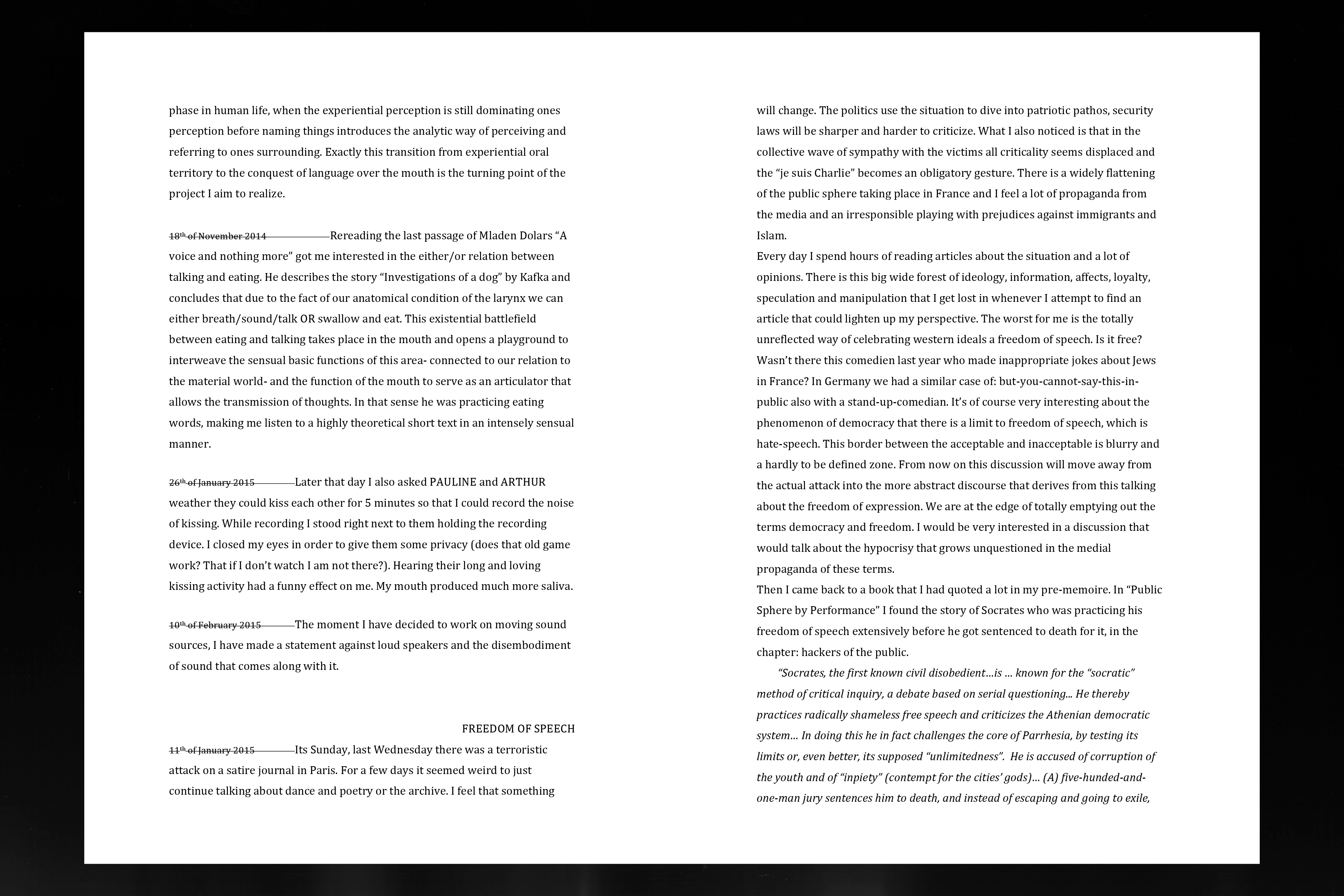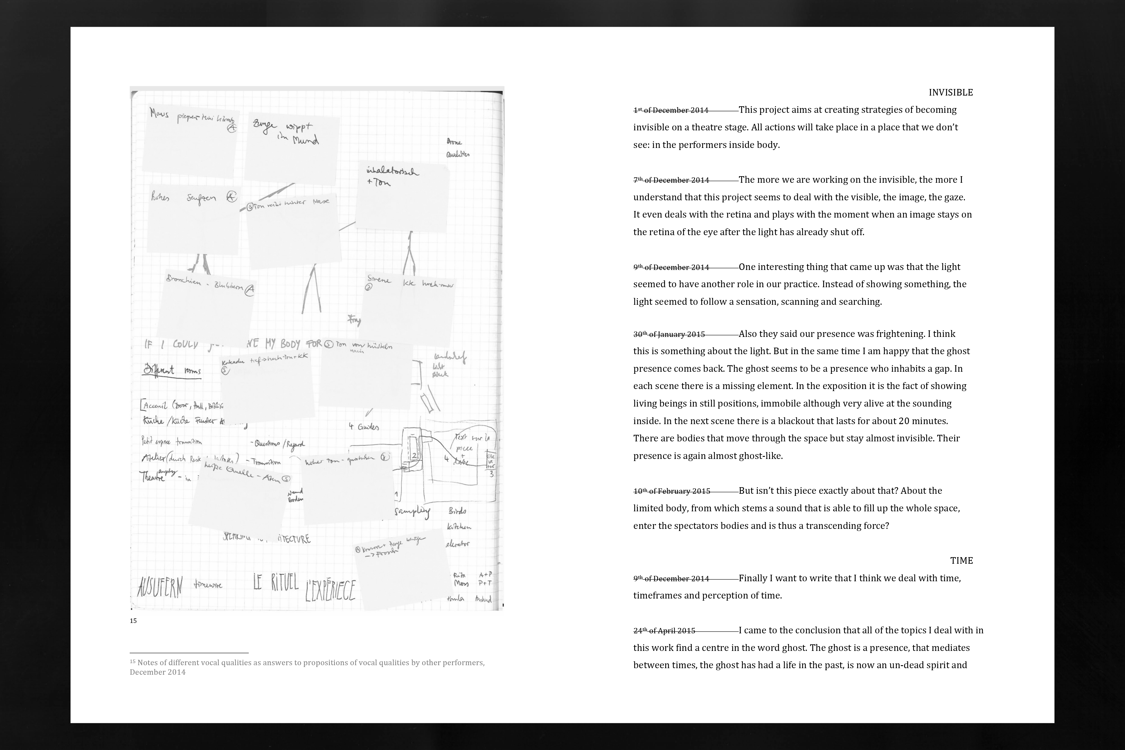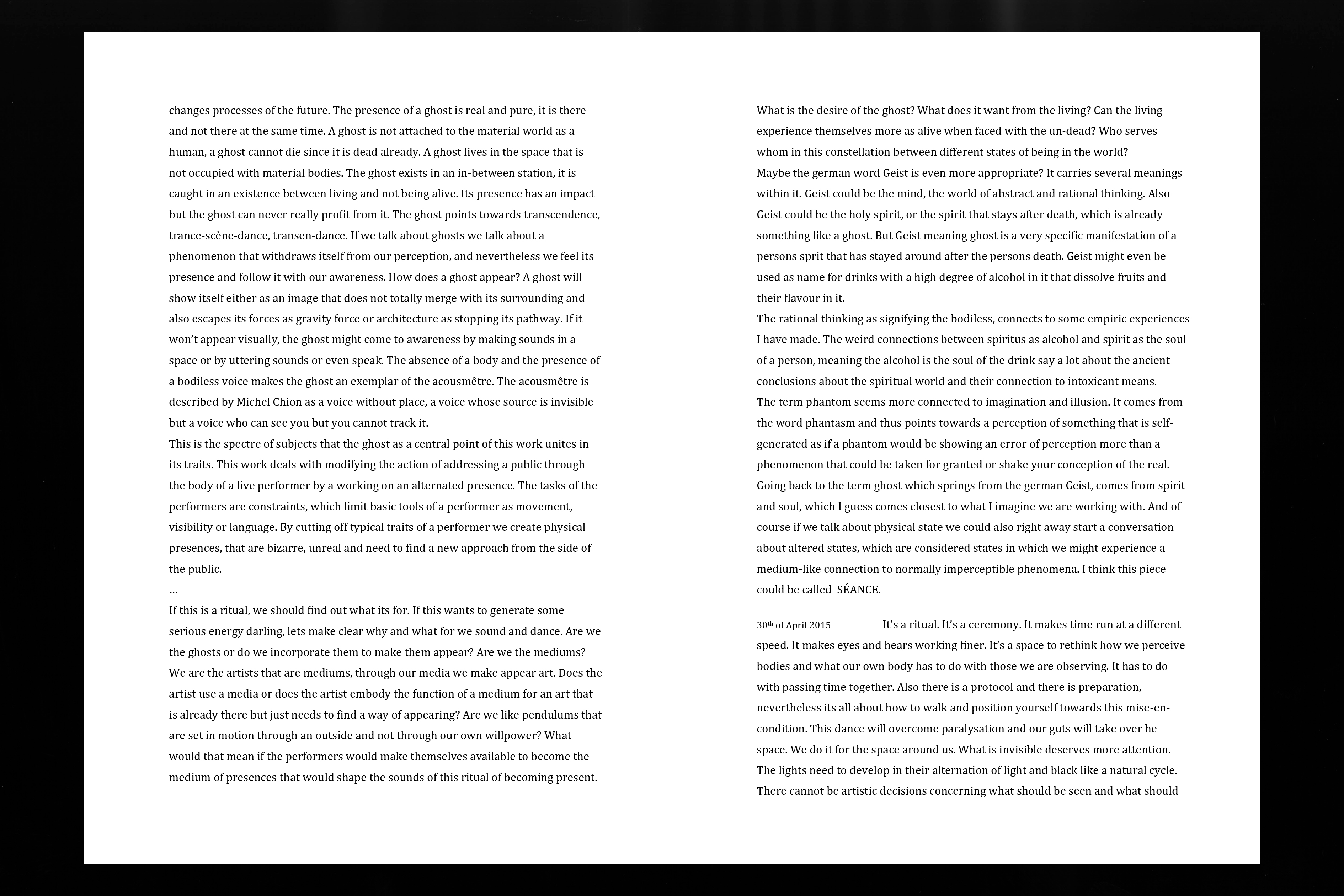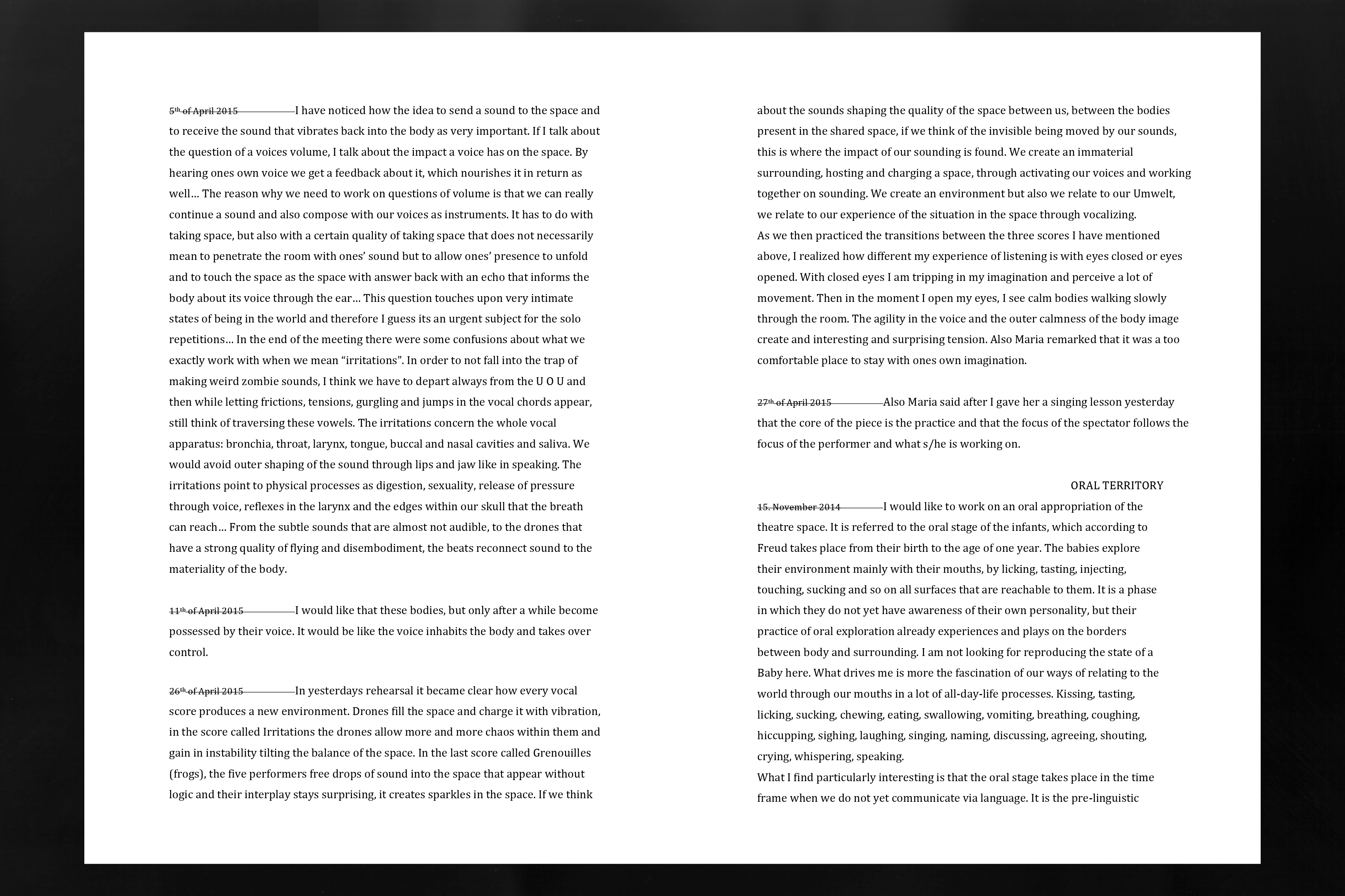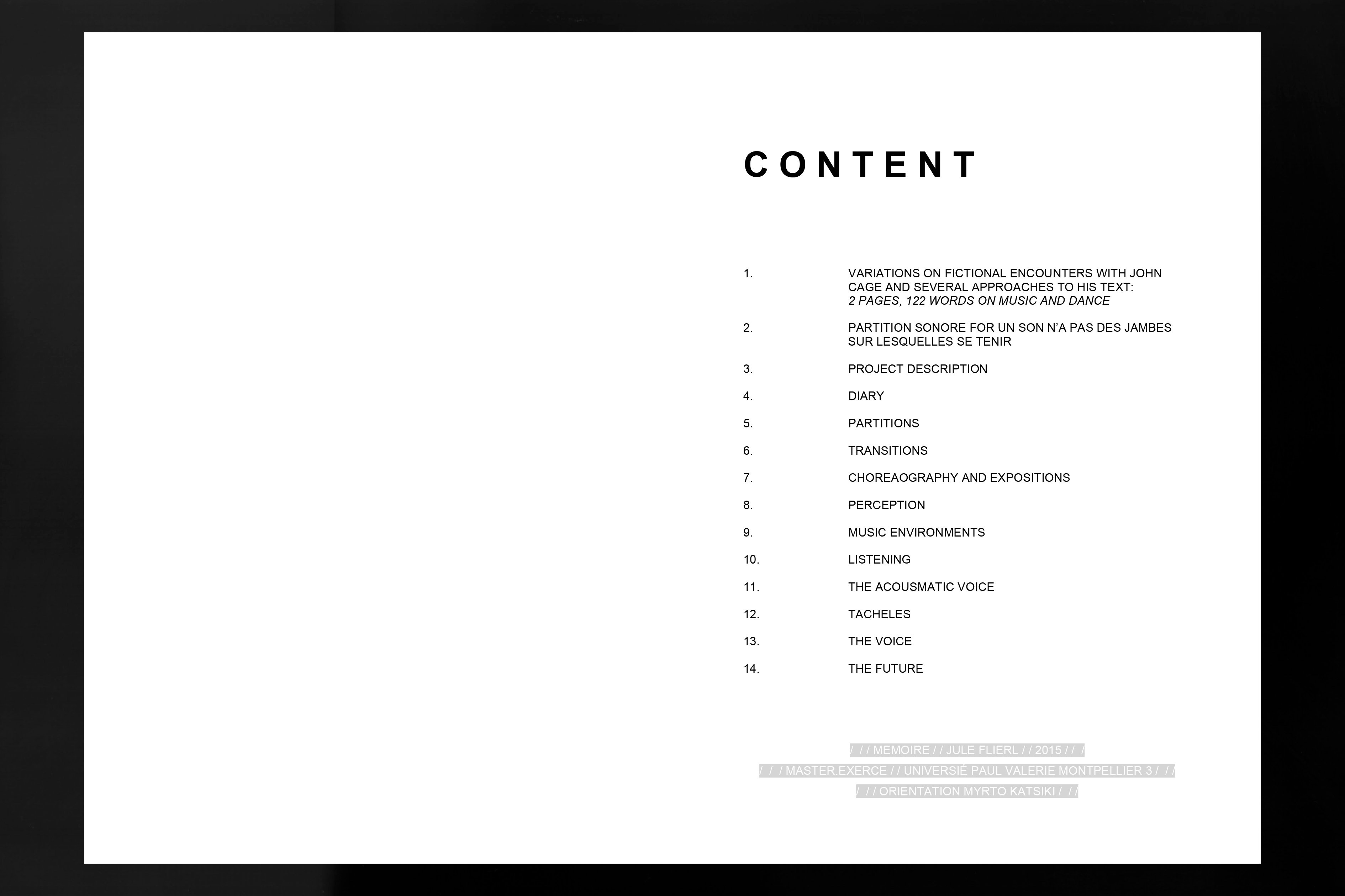 Cette édition restitue la recherche de la chorégraphe et performeuse berlinoise Jule Flierl pendant les deux années d'Exerce, master en chorégraphie et performance (Centre chorégraphique National de Montpellier / Occitanie et Université Paul Valéry). Le pari réussi de ce texte est de maintenir une oralité, une vocalité, au sein même de l'écriture textuelle. Celle-ci devient tour à tour description, analyse, partition, voix, musique, etc.
