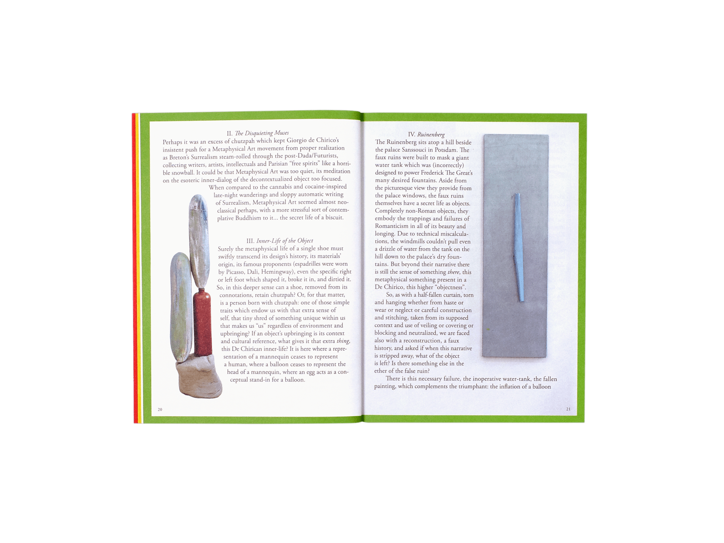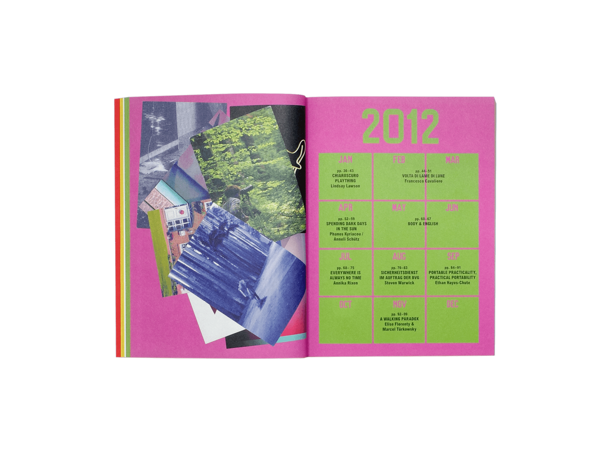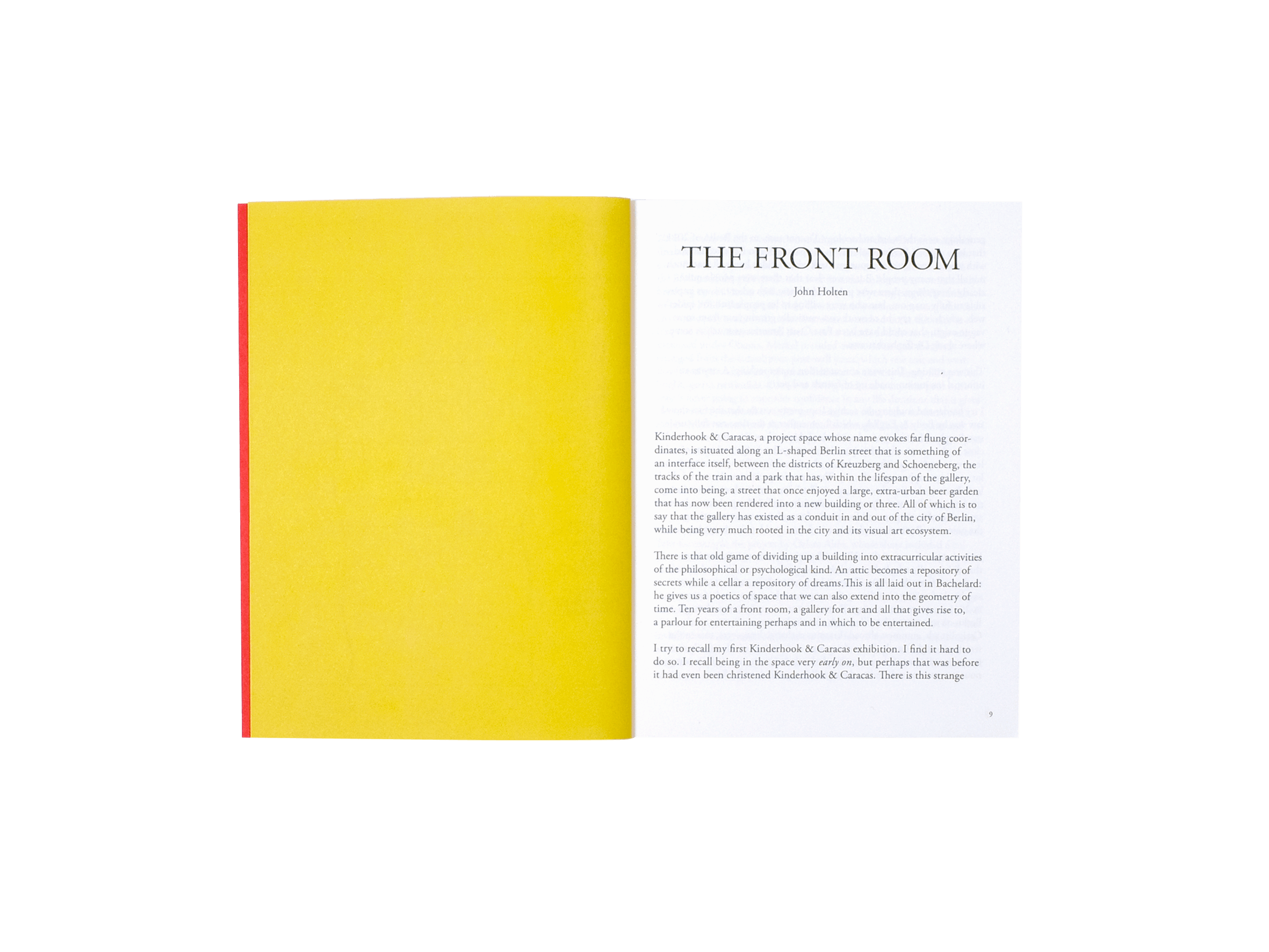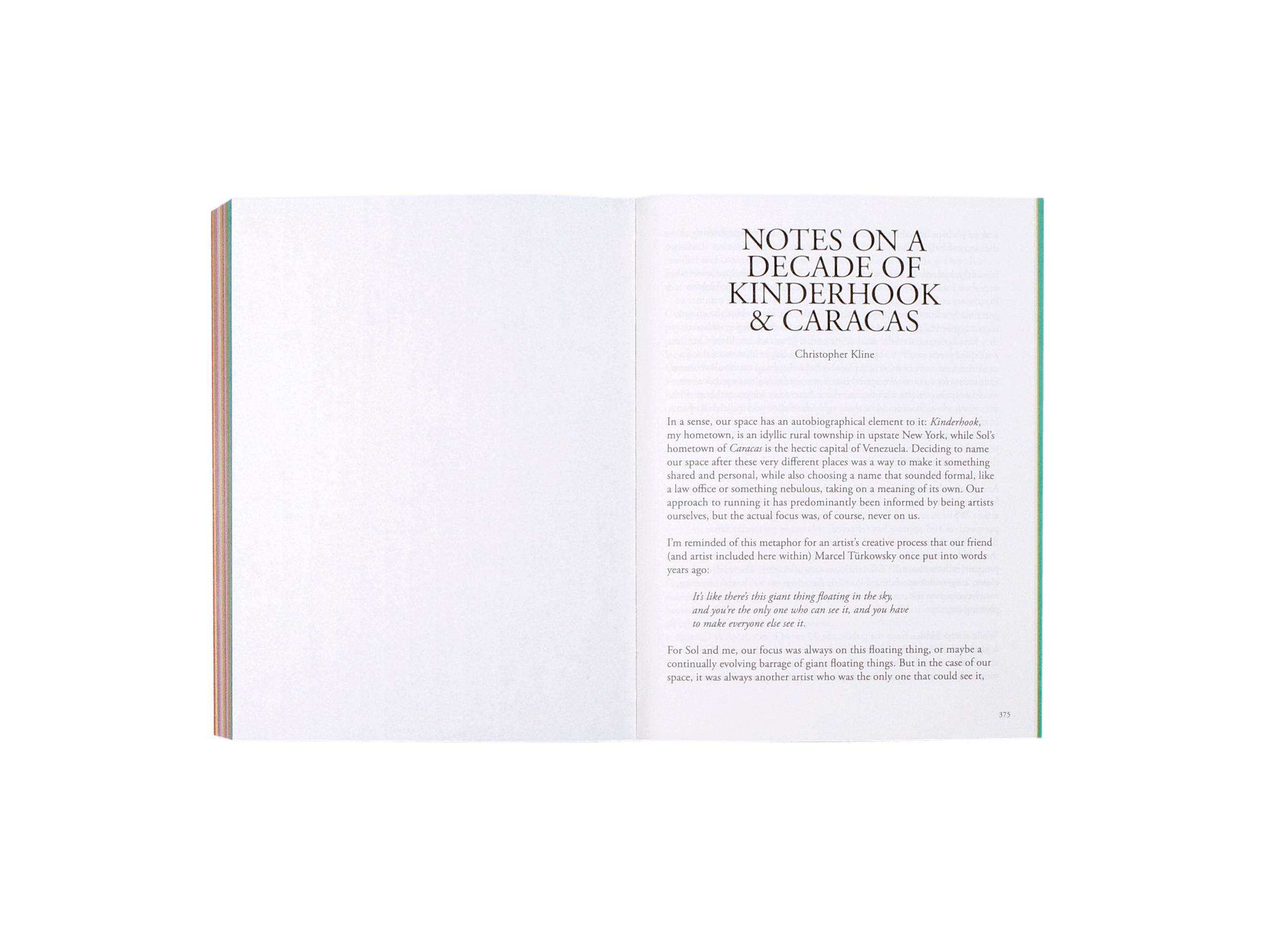 Fondé par les artistes Sol Calero et Christopher Kline en 2011 et nommé d'après leurs villes d'origine, Kinderhook & Caracas s'est concentré sur la production d'expositions individuelles et de projets de groupe singuliers, développant une approche de plus en plus immersive au fil des ans. La conception graphique complexe du livre de Santiago da Silva et Ana Cecilia Breña reflète l'approche curatoriale organique de l'espace, offrant une capsule temporelle pour une certaine époque de la création d'expositions dirigées par des artistes à Berlin. Une introduction de John Holten et le recueil des textes originaux des expositions contextualisent les projets en proposant des références tangentielles, des anecdotes historiques et une approche poétique de la recherche documentaire.