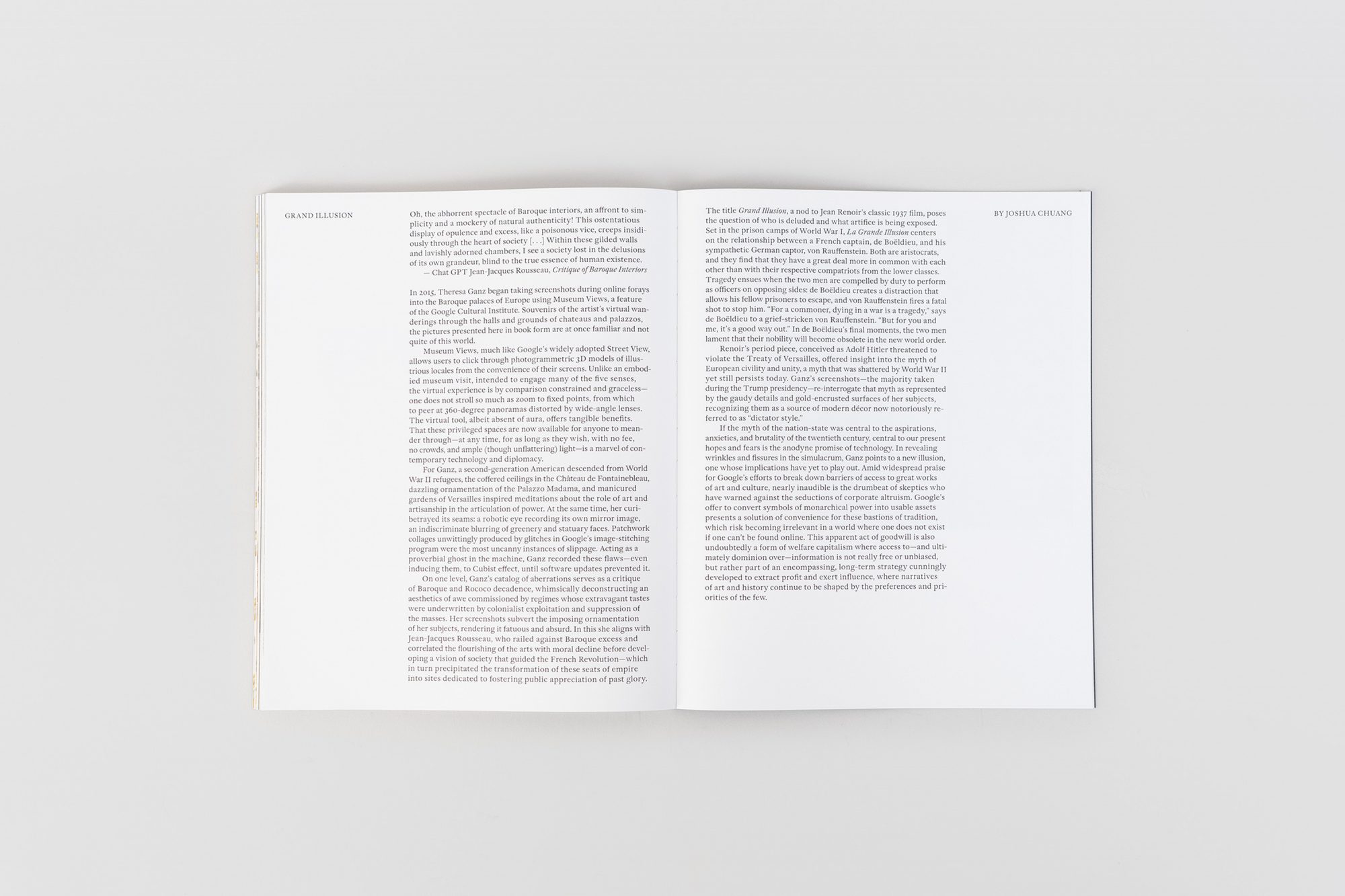 Une série photographique de captures d'écran de la « Museum View » de l'Institut culturel de Google, représentant des palais européens baroques : une déambulation virtuelle dans les couloirs de Versailles, du château de Fontainebleau, du château de Schönbrunn, du Palazzo Madama, etc., déformés et rendus bizarres par les accidents de l'intelligence artificielle.