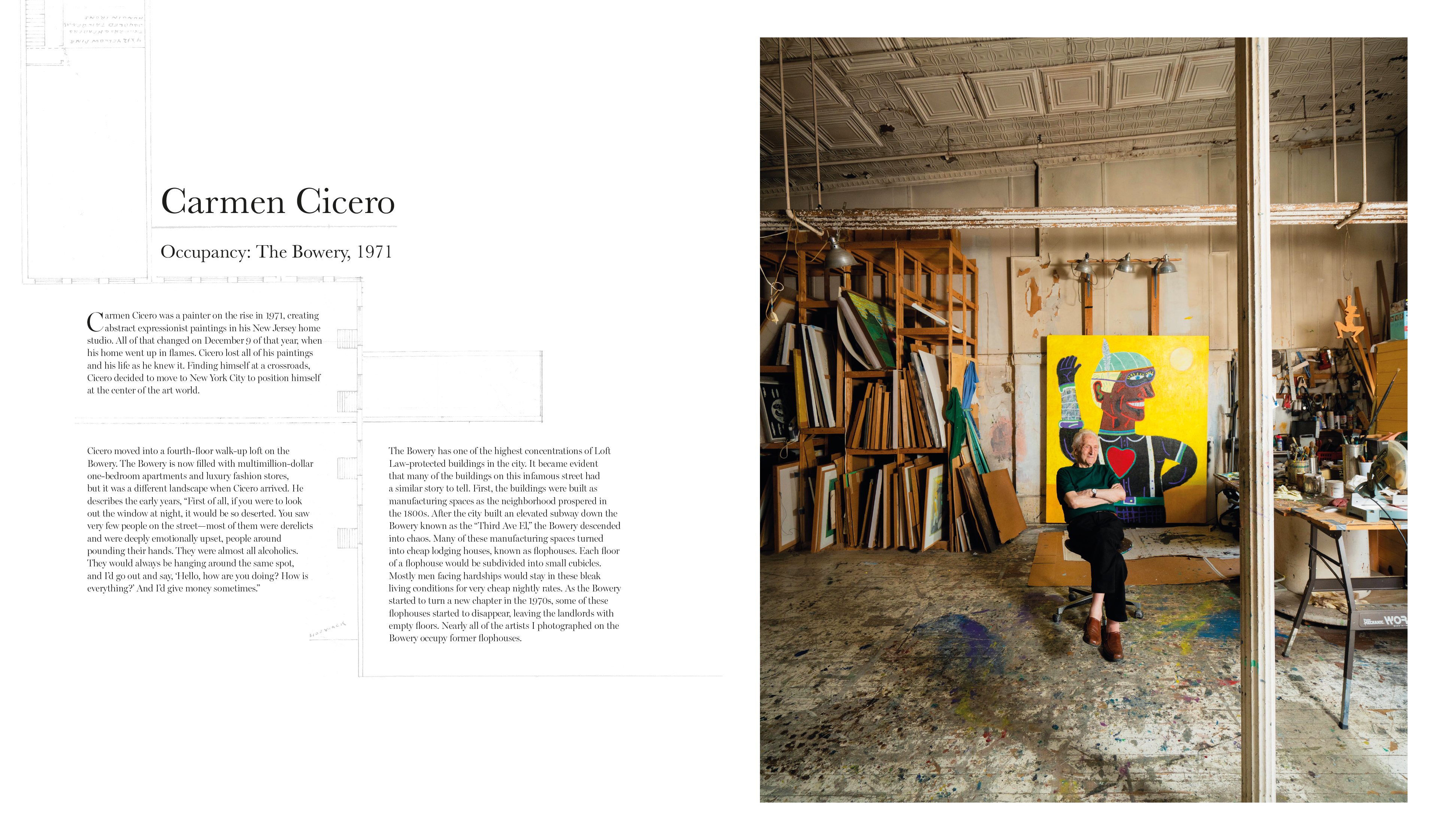 Joshua Charow a consacré deux années à créer son premier livre de photographies sur les artistes vivant sous la protection de la loi sur les lofts. Cette loi, promulguée en 1982 (article 7-C de la Multiple Dwelling Law), a permis de protéger et de stabiliser les loyers de milliers d'artistes qui vivaient illégalement dans des lofts à vocation commerciale et industrielle dans des quartiers comme Soho, Tribeca et Bowery, après que l'industrie manufacturière a largement quitté Manhattan. Il y a deux ans, il a trouvé une carte des bâtiments protégés restants, a sonné à des centaines de portes et a photographié et interviewé plus de 50 artistes qui vivent encore aujourd'hui dans ces incroyables lofts. À l'heure où New York fait face à un nombre sans précédent d'espaces commerciaux vacants, cette incroyable histoire inédite tombe à point nommé.