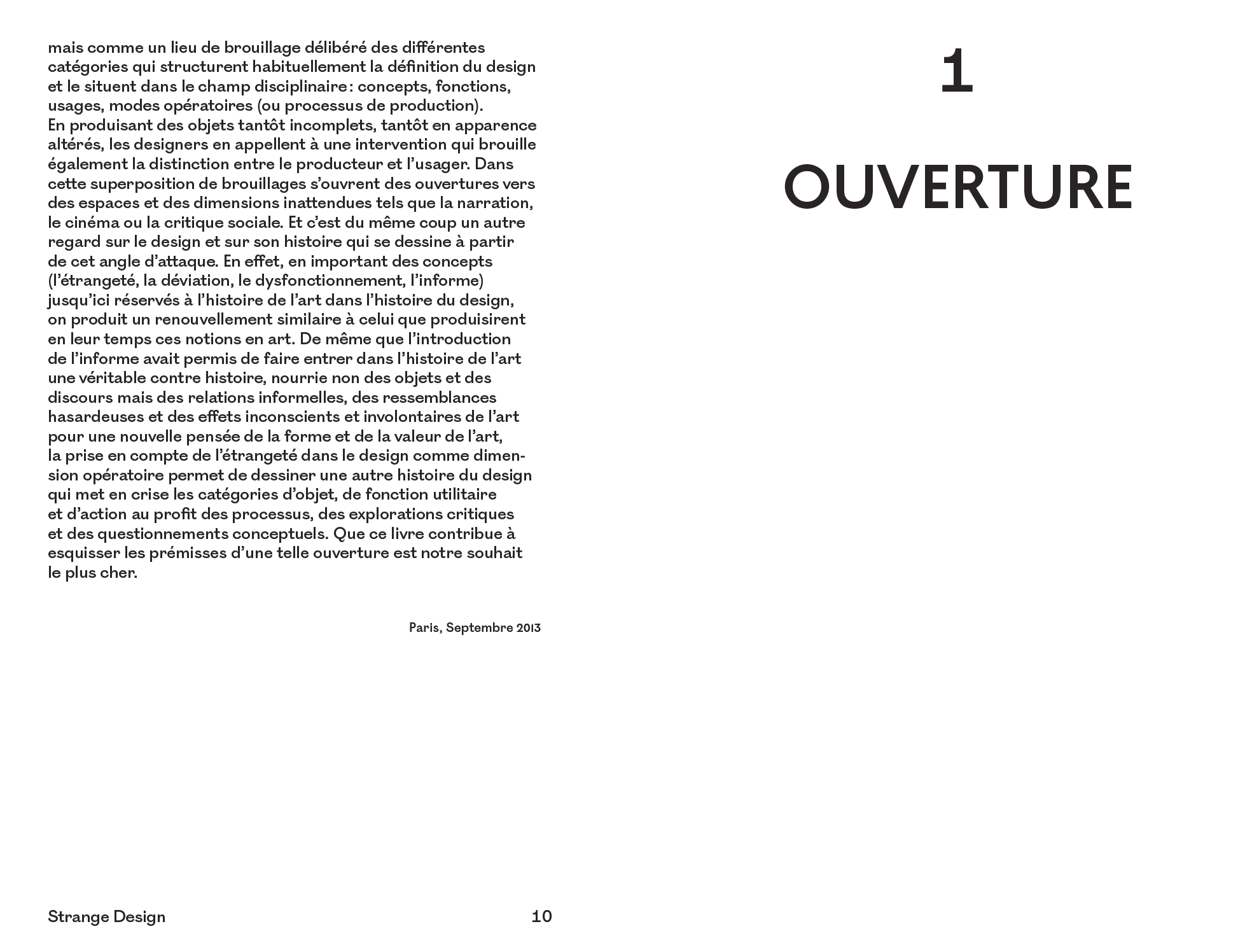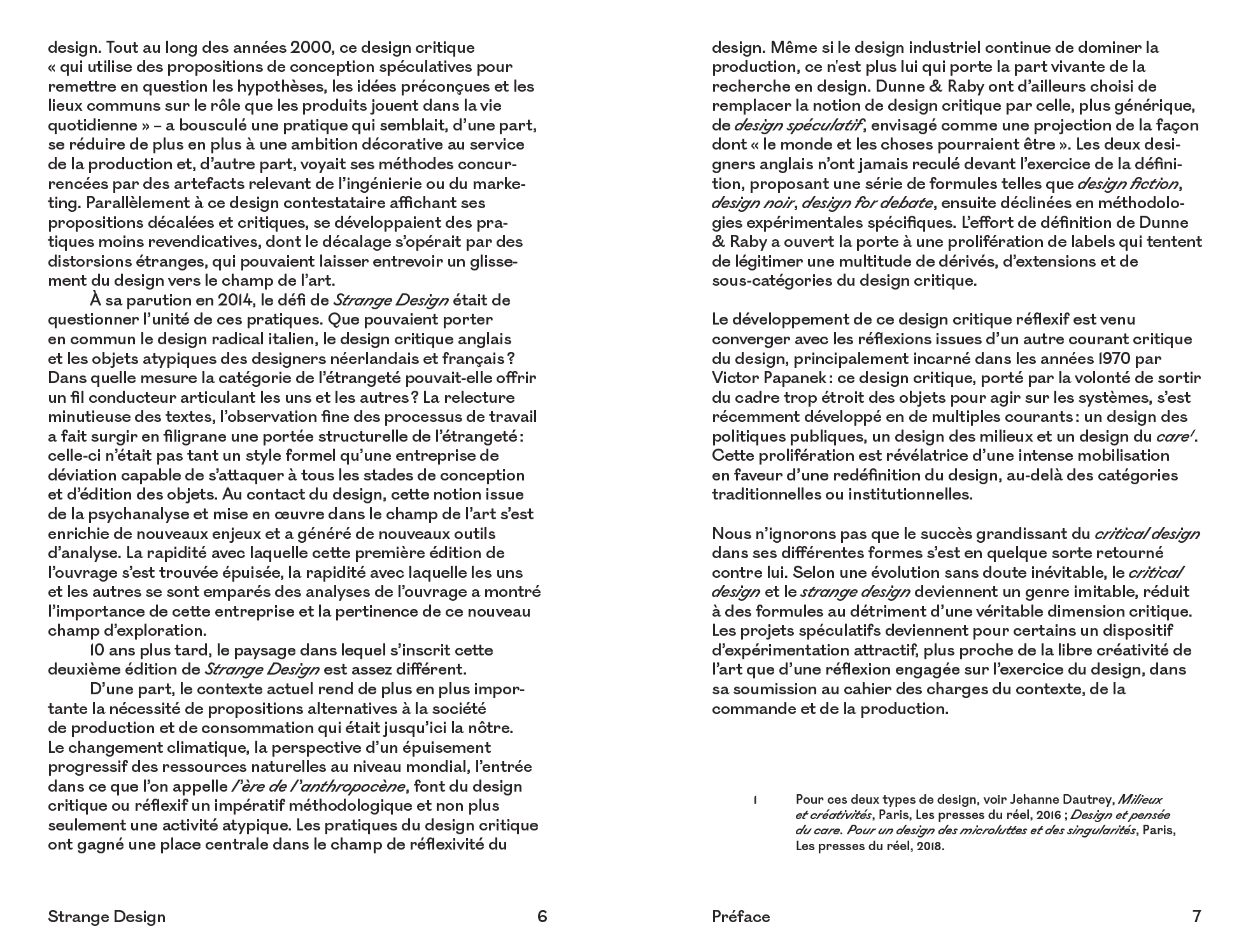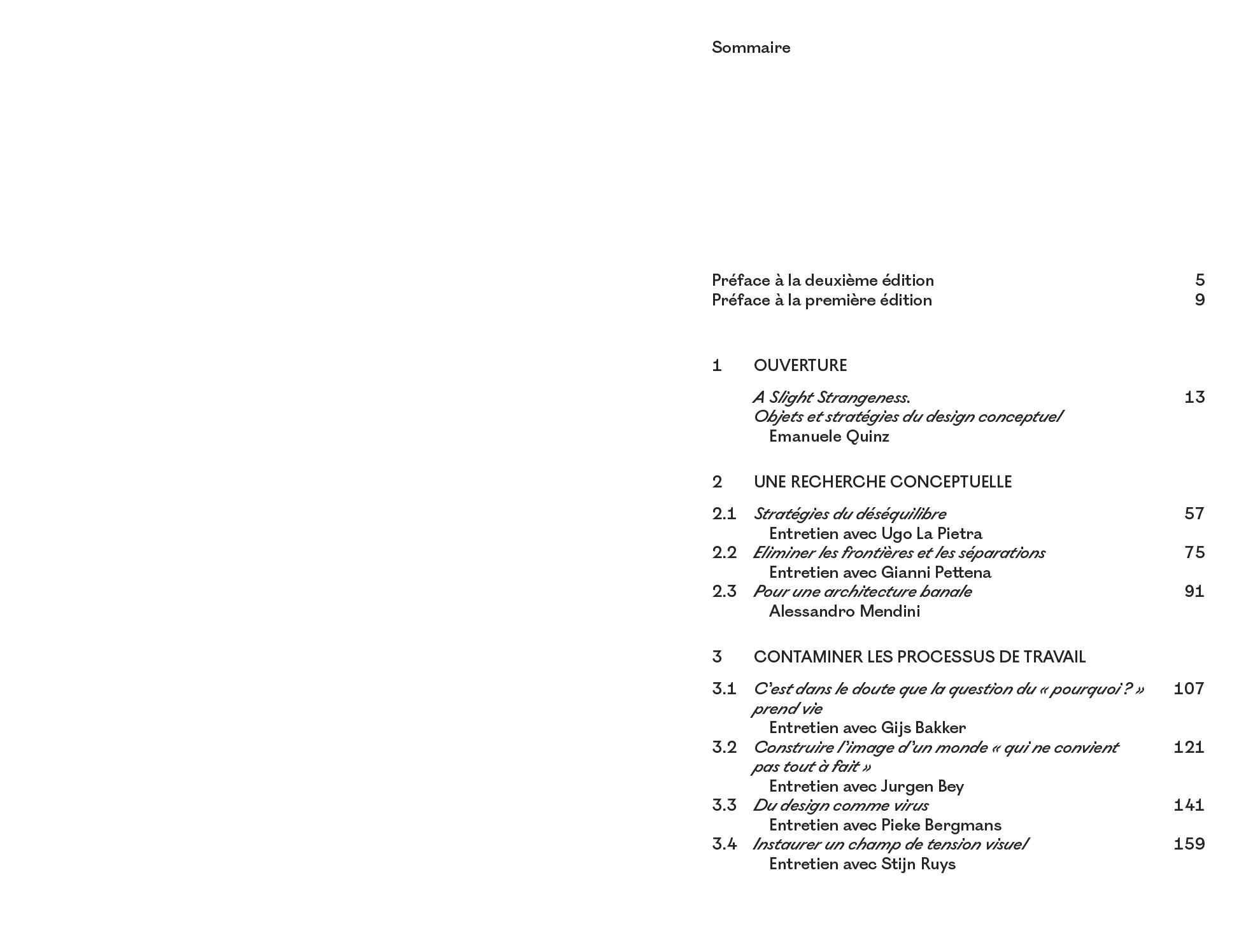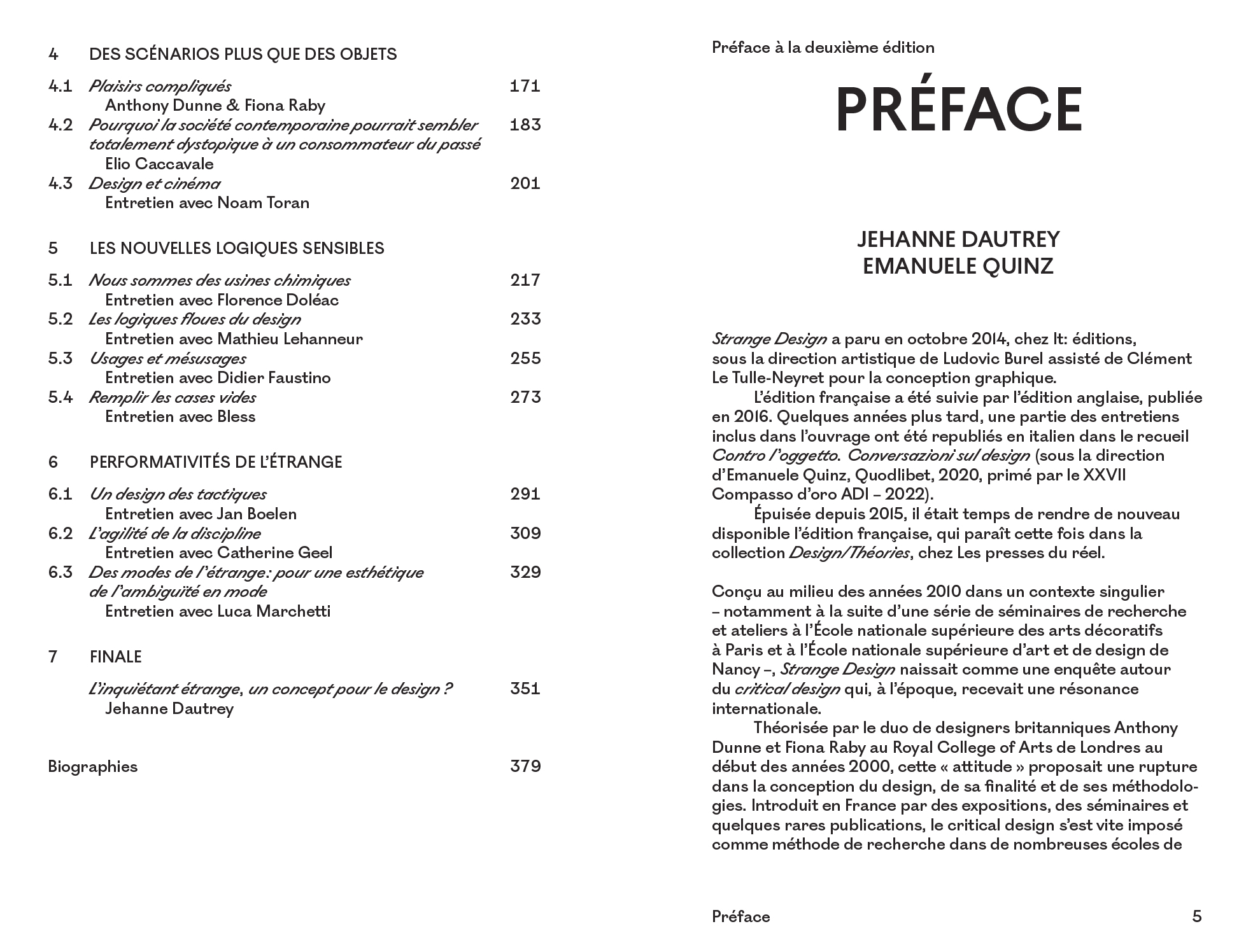 A partir de ces quatre moments saillants que sont le design radical italien de la fin des années 1960 et 1970, le design conceptuel néerlandais des années 1990, le critical design anglais des années 2000 et enfin la scène contemporaine, notamment en France, cet ouvrage montre comment ce strange design n'est pas tant un style qu'une posture critique qui ne cesse d'irriguer le champ du design.