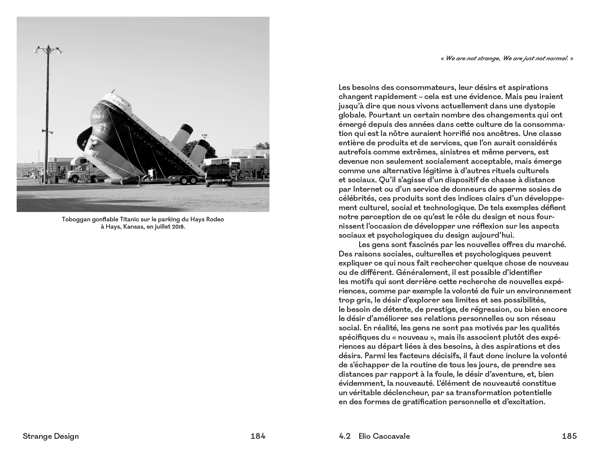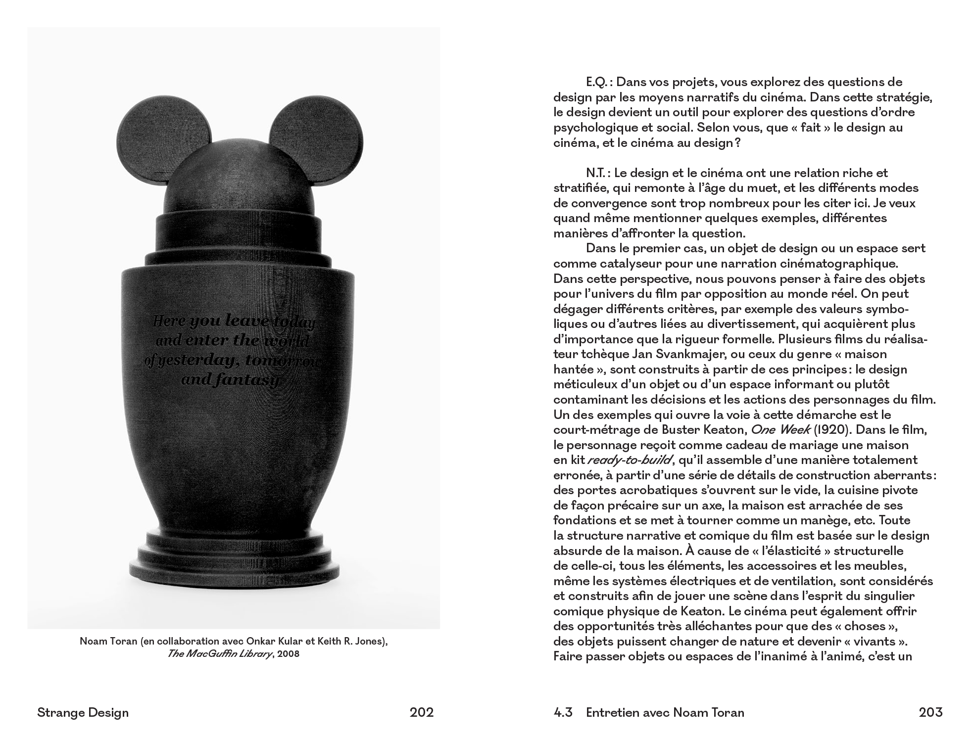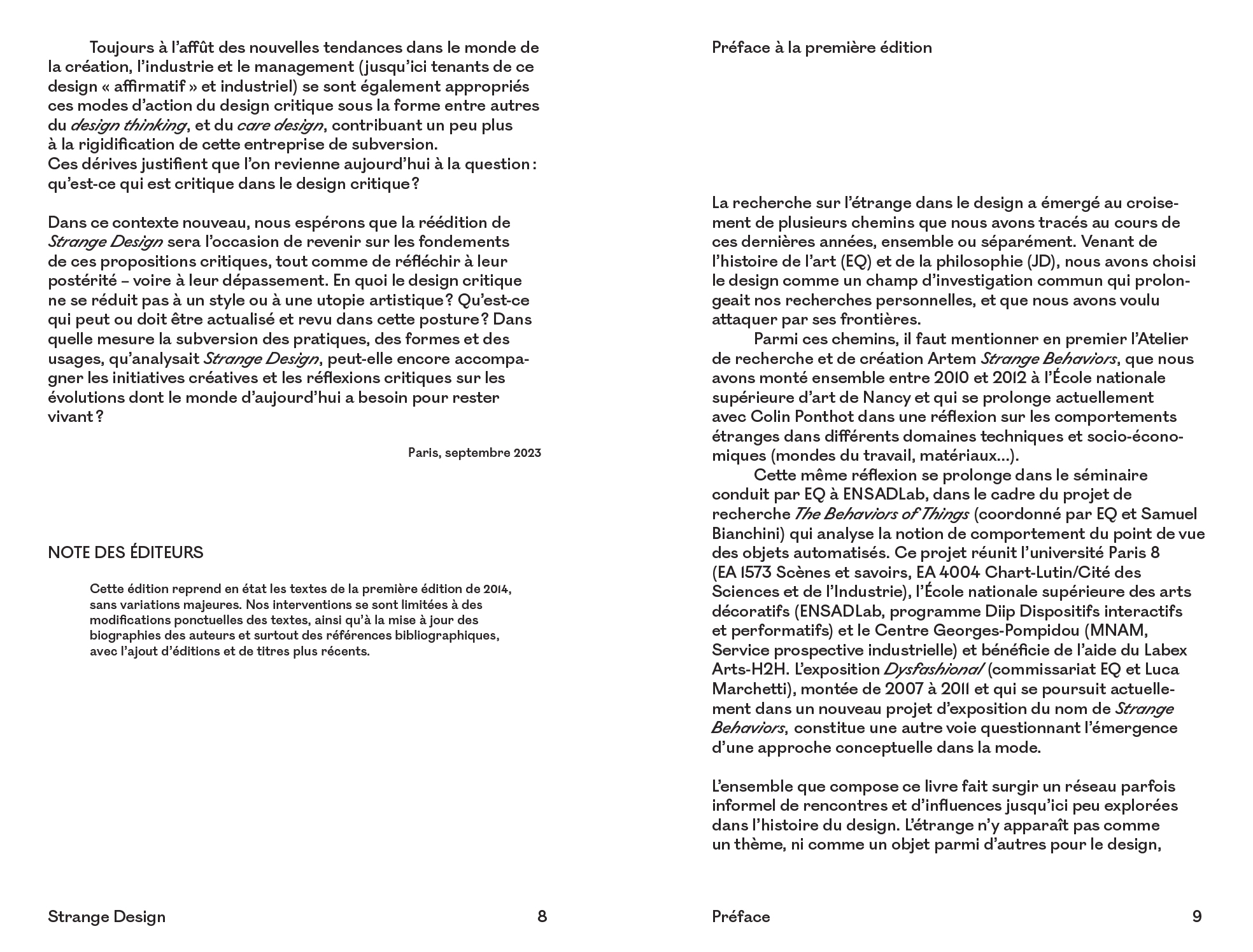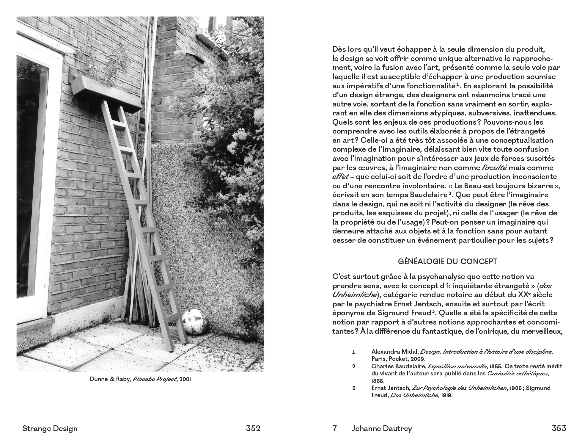 A partir de ces quatre moments saillants que sont le design radical italien de la fin des années 1960 et 1970, le design conceptuel néerlandais des années 1990, le critical design anglais des années 2000 et enfin la scène contemporaine, notamment en France, cet ouvrage montre comment ce strange design n'est pas tant un style qu'une posture critique qui ne cesse d'irriguer le champ du design.