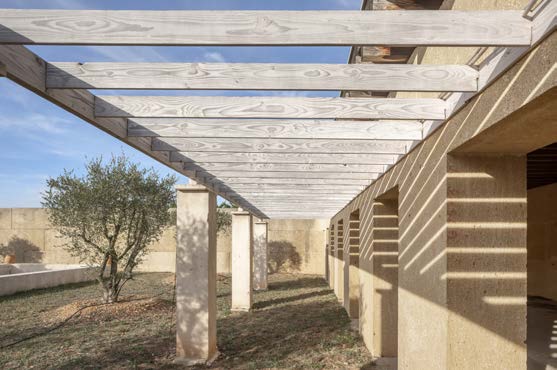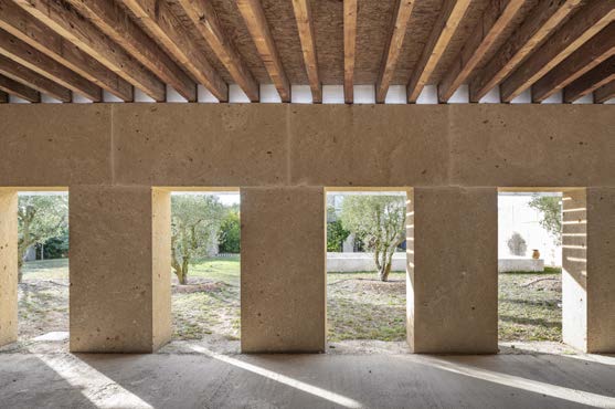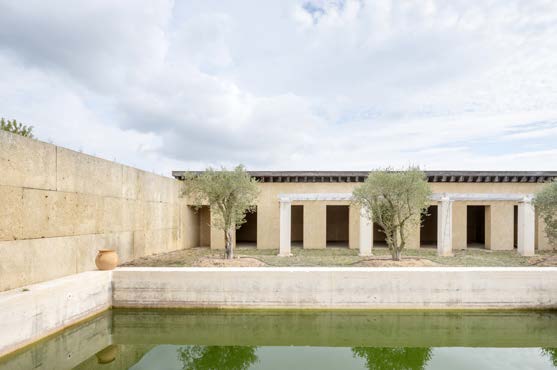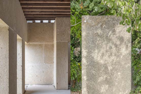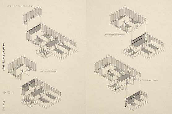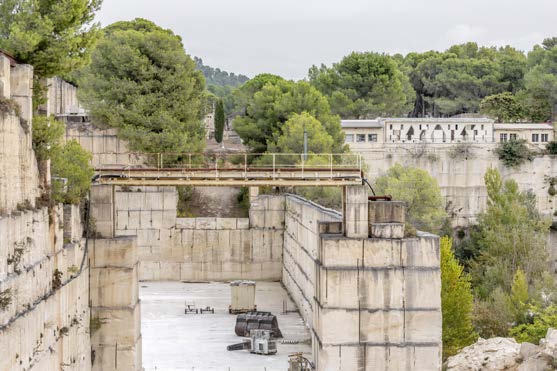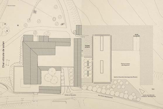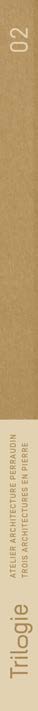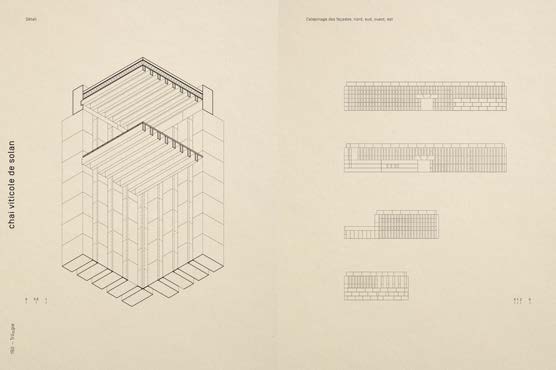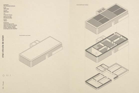 Ordinaire dans l'histoire de l'architecture et devenue extra-ordinaire, dans le sens d'étrange et incongru aujourd'hui, la pierre est une matière à la fois variée et abondante, au point que Gilles Perraudin propose de rebaptiser notre planète « la Pierre » en accord avec son principal constituant. Deux chais et un kiosque fondent sur la pierre un manifeste de l'archaïsme comme refus des solutions industrielles dans la construction. A leurs logiques globalisantes, technologiques et énergivores, Gilles Perraudin oppose la réalité de la matière, le jeu de la manipulation des blocs, la simplicité constructive, l'emploi de ressources locales, la vérité de l'espace intersection de la matière et de la lumière. Les programmes des trois réalisations se relient à une production non industrielle de produits agricoles sans pesticides ou de matériaux géosourcés, où l'extraction devient production d'espace en fabricant lentement des cathédrales souterraines de pierre, donnant aux carrières une dimension mythologique. Les trois réalisations dessinent un triangle entre Vauvert, Fontvieille et Solan.