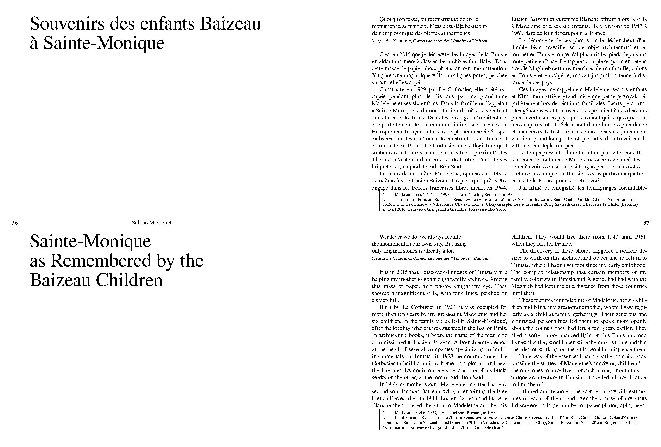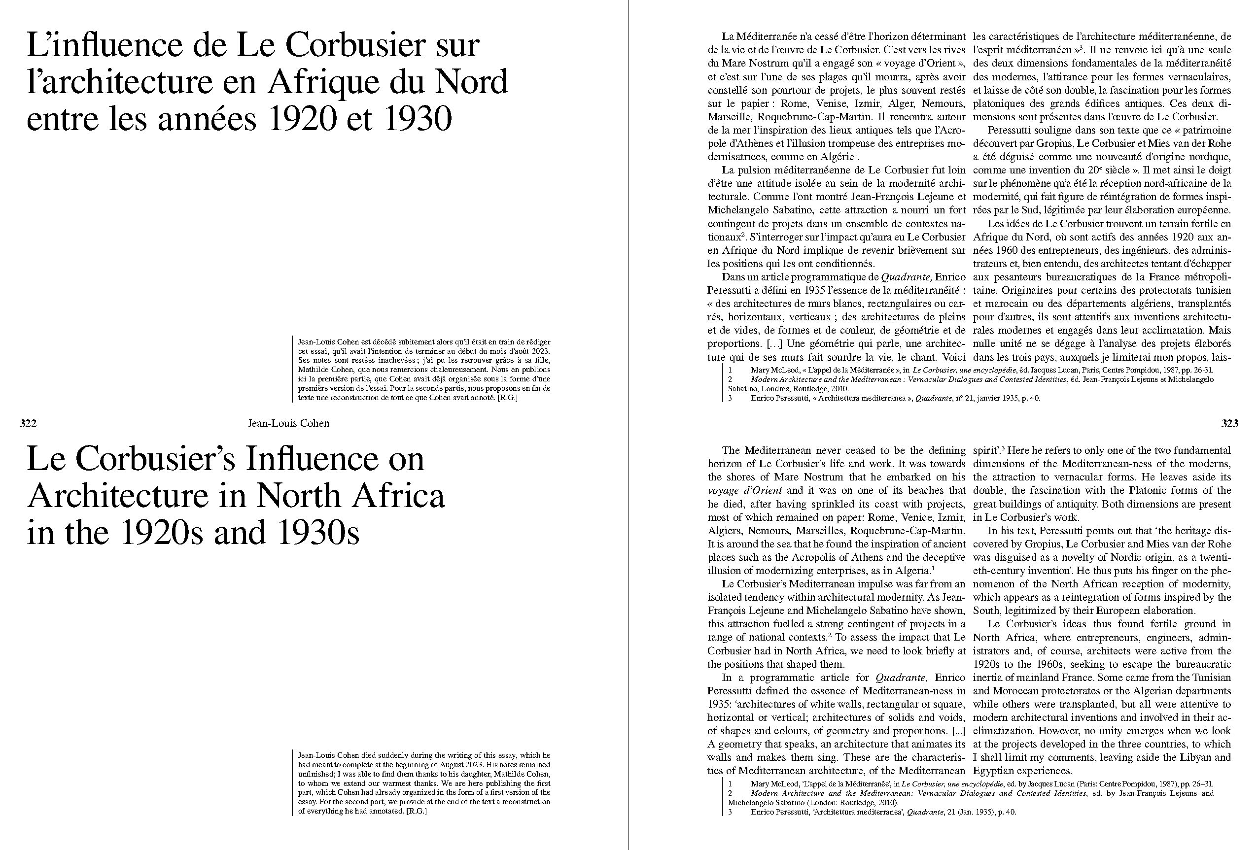 Contributions de Chacha Atallah, Baukunst, Tim Benton, Mohamed Ali Berhouma, Thomas Bilanges, Jean-Louis Cohen, Sophie Delhay, Dogma, Expérience, fala, Roberto Gargiani, André Kempe, Jacques Lucan, Sabine Massenet, OFFICE Kersten Geers David Van Severen, Point Supreme, Anna Rosellini.