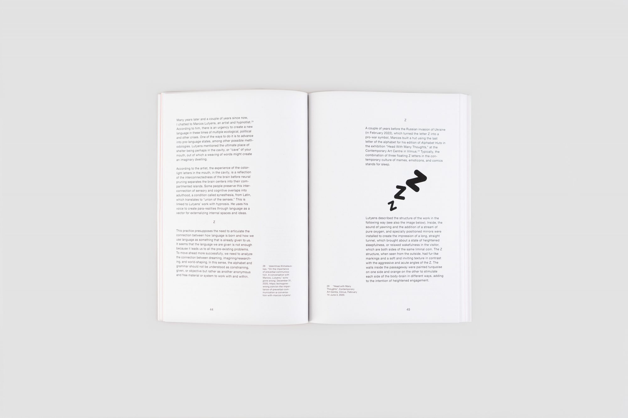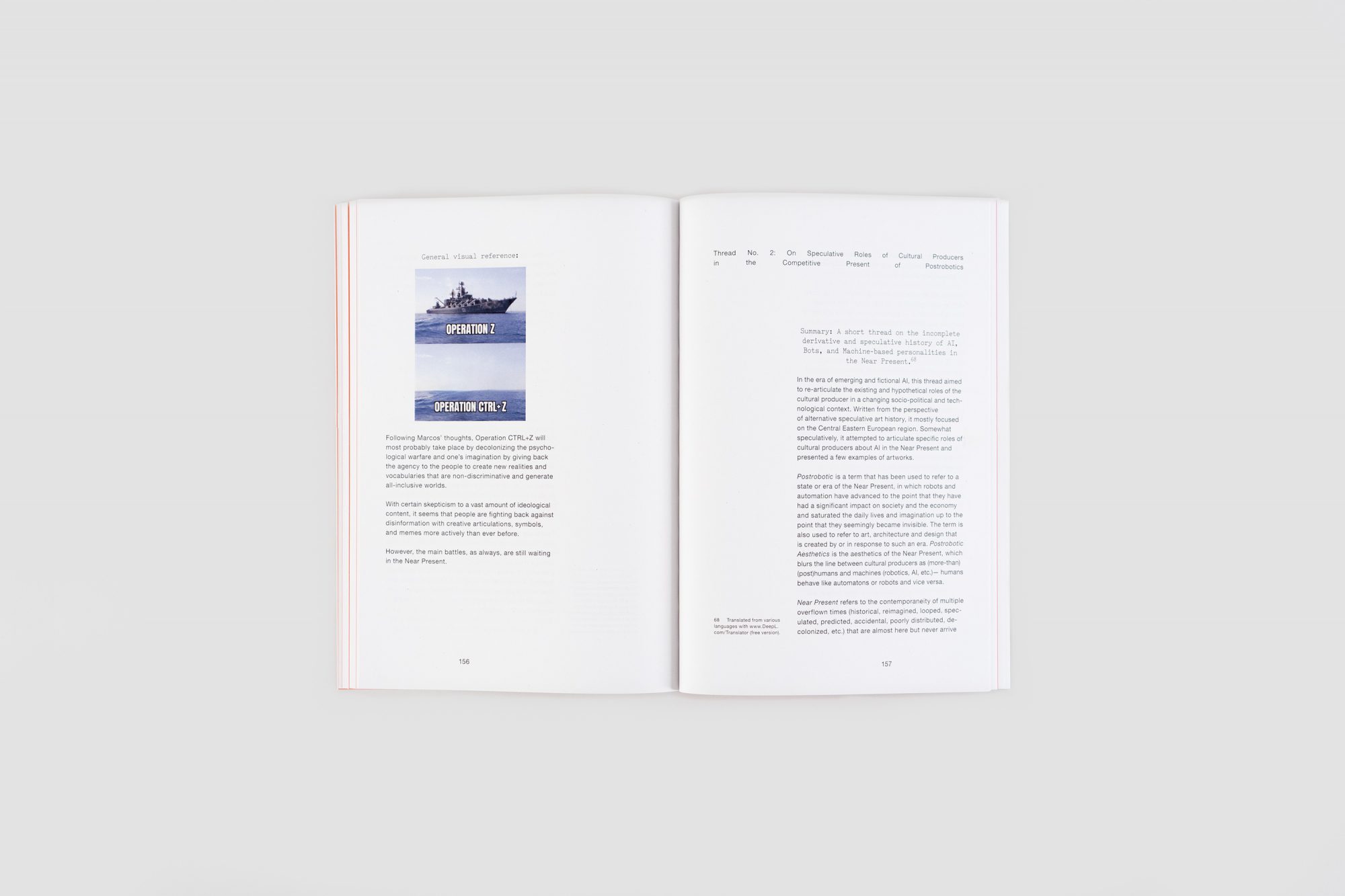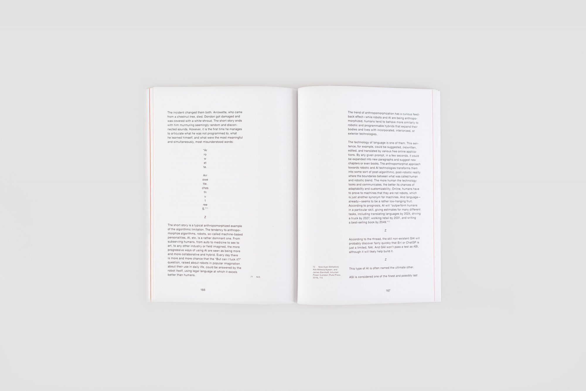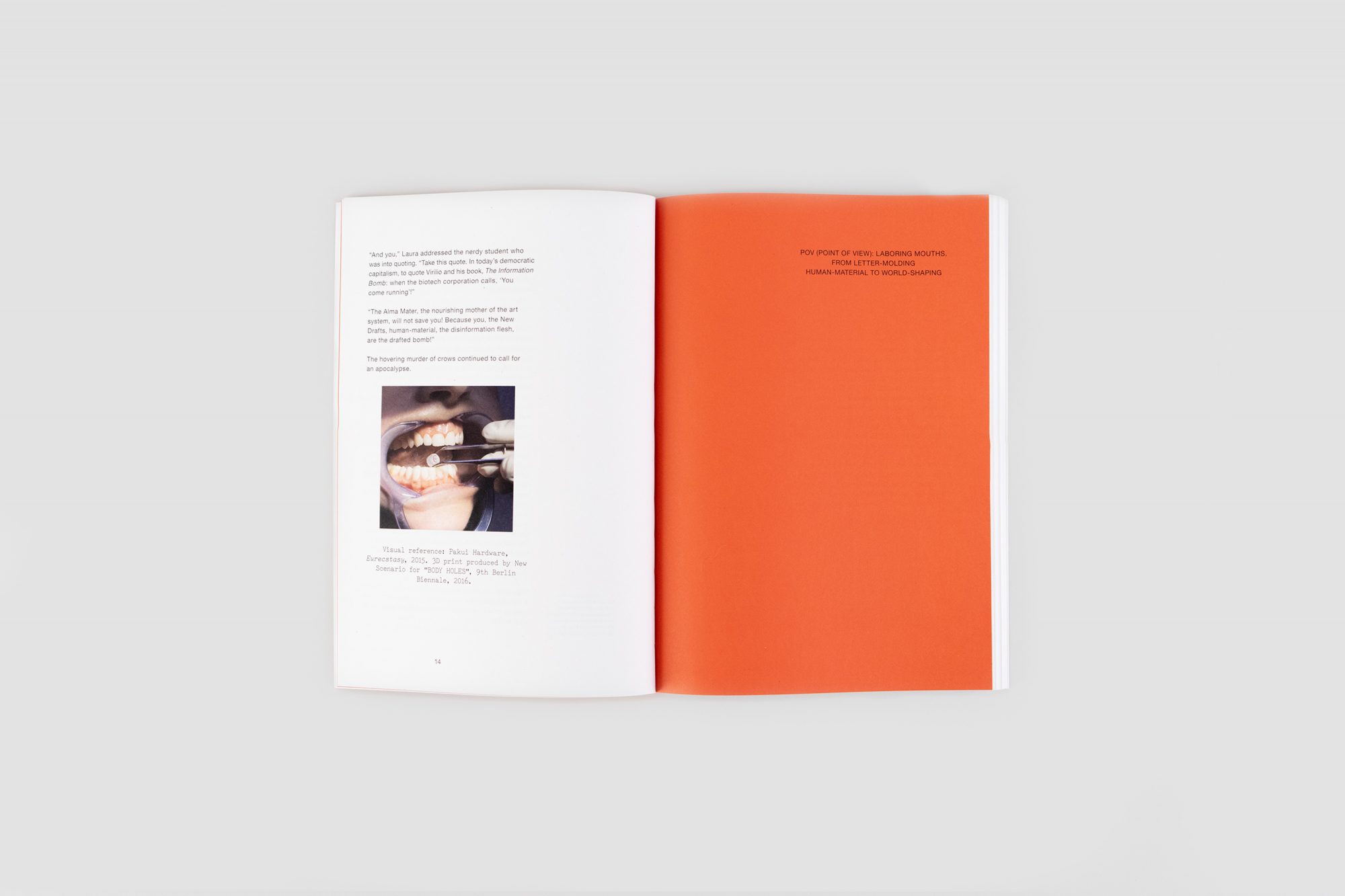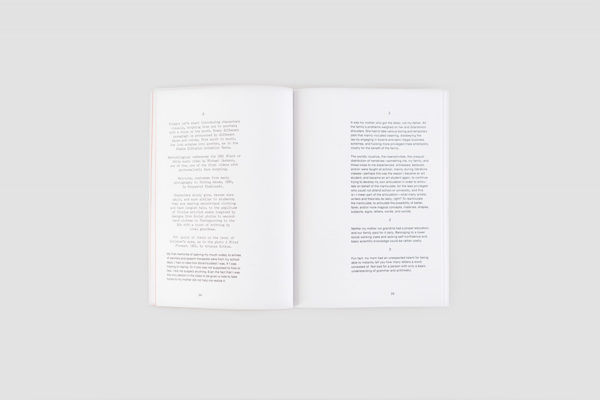 Rédigé en collaboration avec un assistant dactylographique basé sur le cloud et frappé du « syndrome du personnage principal », le texte peut également être interprété comme un roman académique sur la recherche doctorale d'une génération surcaféinée souffrant d'un léger trouble de l'attention, ou comme un script spéculatif pour des collaborations (im)possibles avec l'IA ou des personnalités basées sur des machines à venir. Il s'agit également d'une tentative de rédaction d'une thèse de doctorat en beaux-arts basée sur la pratique à l'Académie des arts de Vilnius.