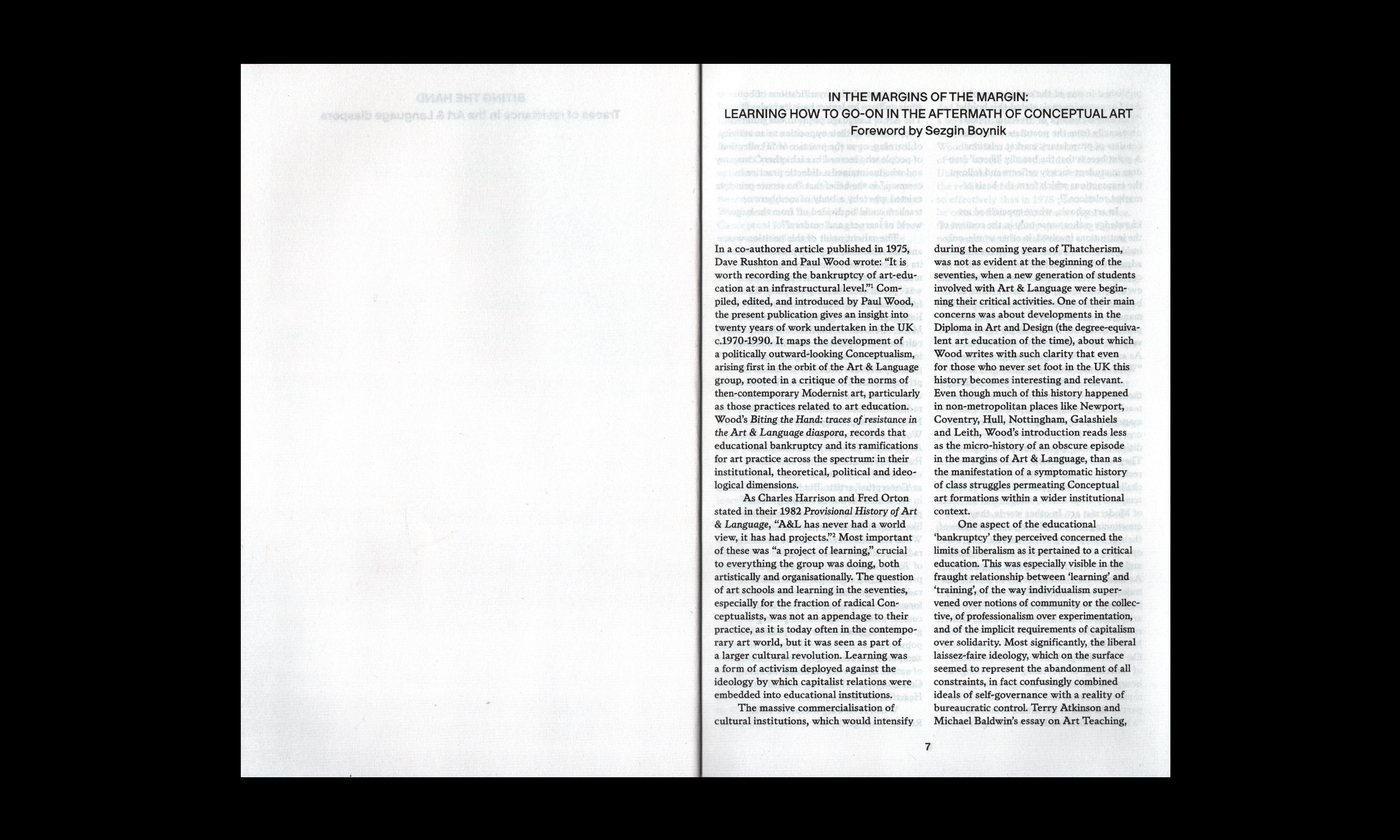 Edited, compiled and introduced by Paul Wood, Biting the Hand: Traces of Resistance in the Art & Language diaspora is about a dissident formation of artists active in the UK in the 1970s and 80s.