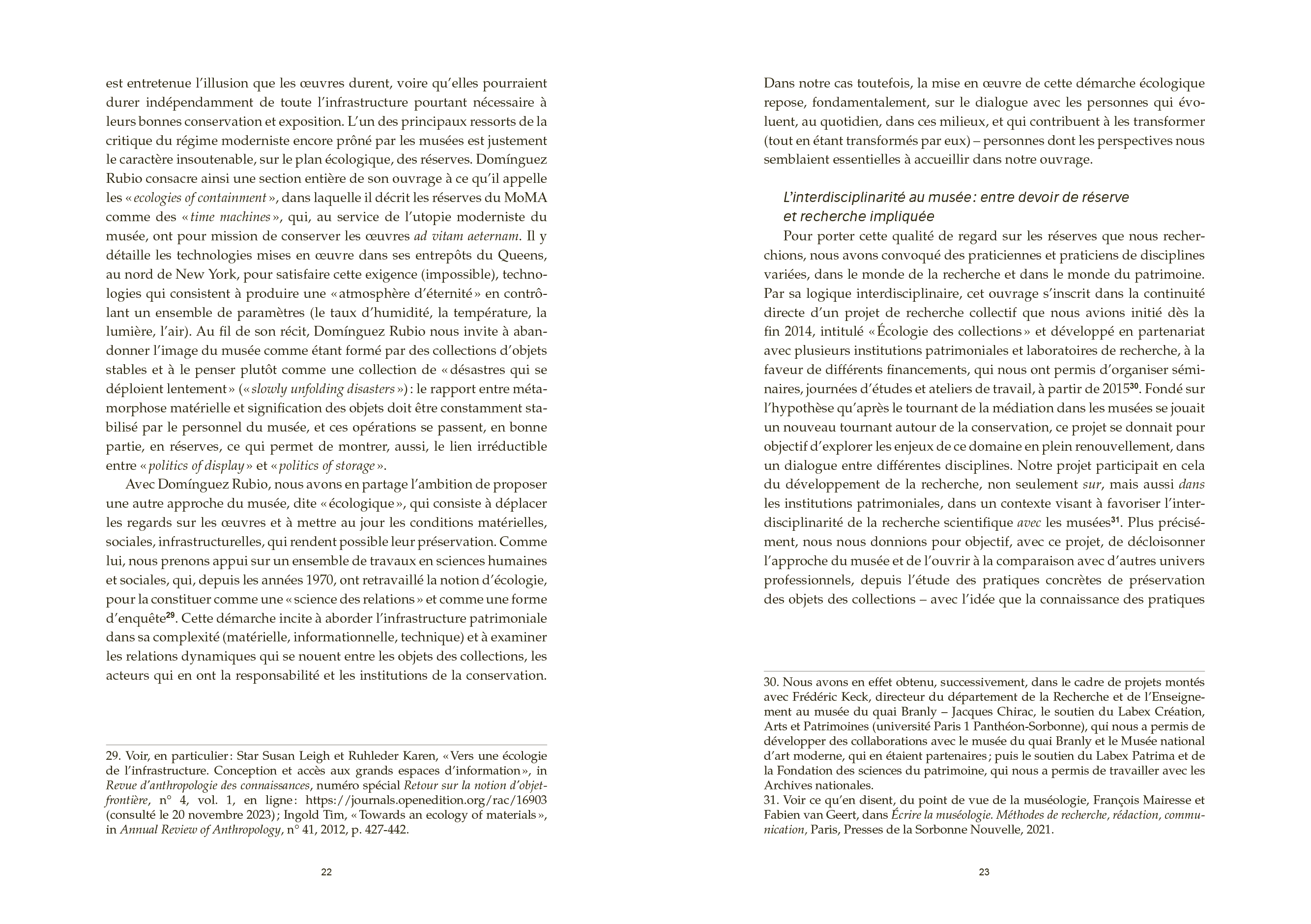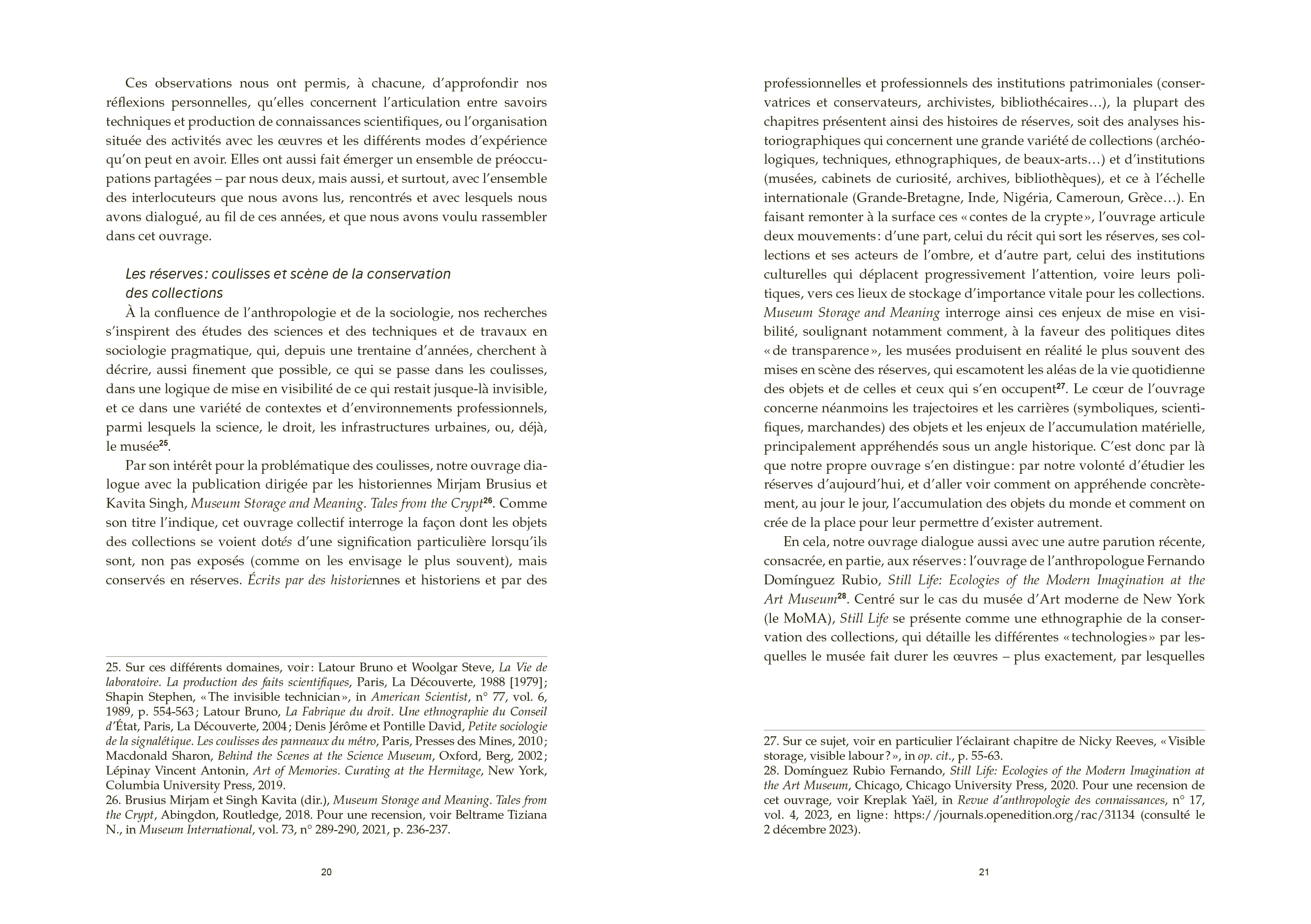 Les réserves des musées est un classique en devenir sur cette thématique et un véritable modèle méthodologique dans la conduite d'une recherche interdisciplinaire où se mêle un grande diversité d'approches. La polyphonie qui s'en dégage atteste de la vitalité de ce passionnant objet d'étude que sont les réserves et des nombreux enjeux qu'elles cristallisent. A n'en pas douter, ces espaces et les réflexions théoriques qui les accompagnent constituent une problématique centrale pour toutes les institutions muséales au cours de ce XXIe siècle en devenir. »