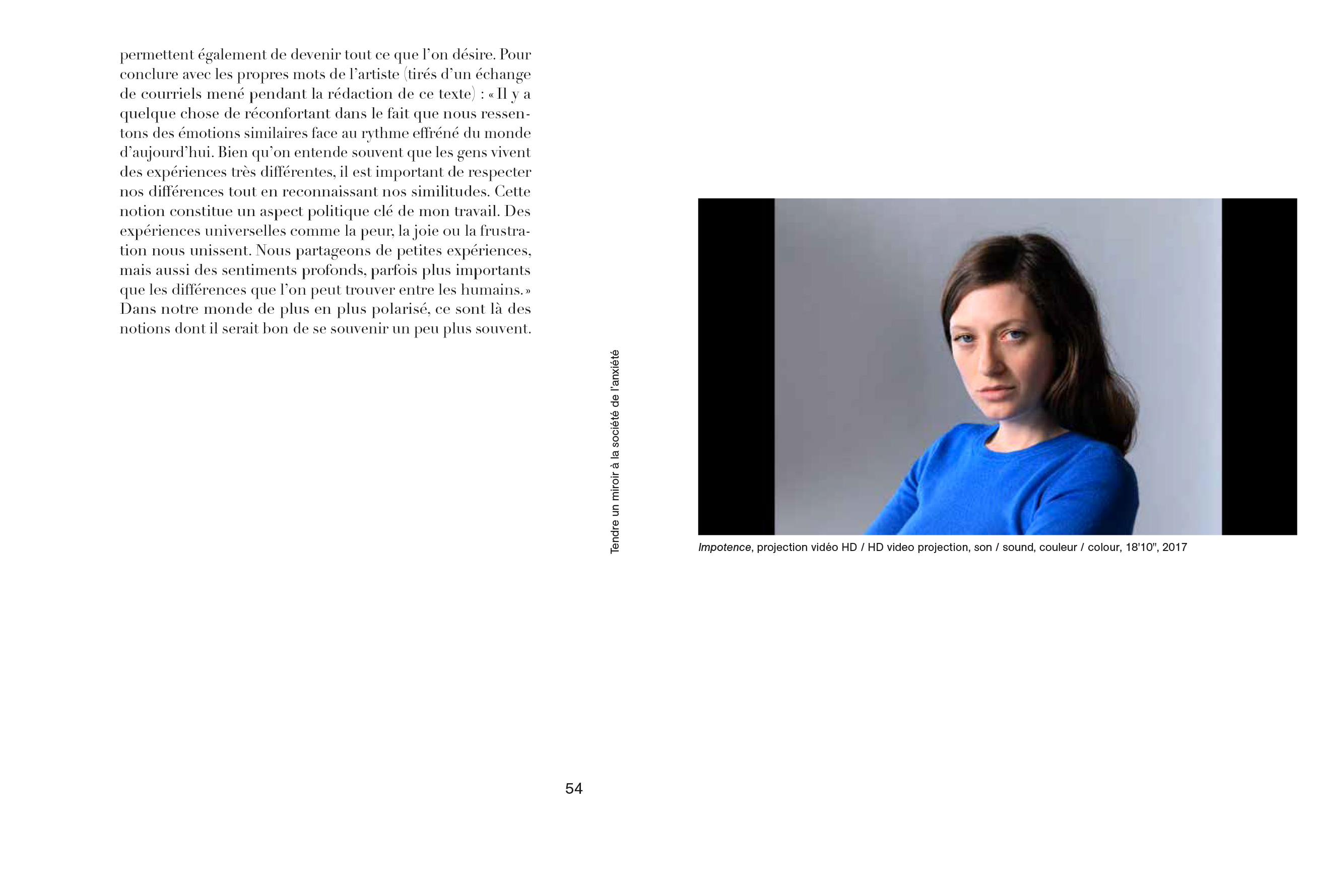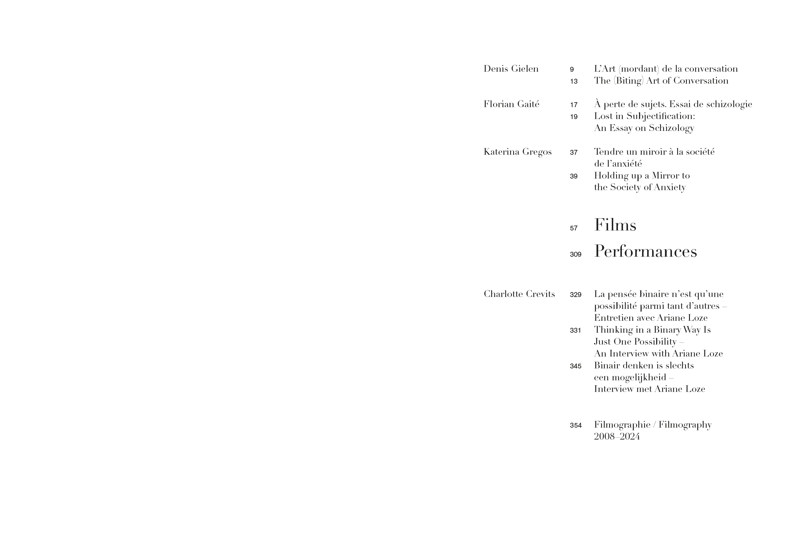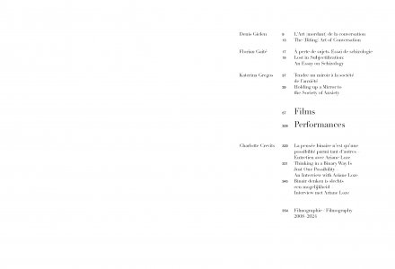 Comment faire société tout en préservant nos individualités ? Quelle valeur accorder à la liberté dans un monde régi par les normes et les algorithmes ? À « l'ère du vide » qui est la nôtre, quelle chance avons-nous de redonner une consistance au langage et une portée à nos voix intérieures ? Bref, sommes-nous capables de résister à la « dictature du bonheur » qu'instaure l'économie néolibérale ? À la croisée de la psychologie et du politique, toutes ces questions, aux prises avec un monde contemporain en crise, occupent le cœur des vidéos de l'artiste belge Ariane Loze. Leur vocation critique y apparaît telle une riposte dans un contexte social nourri des préceptes du capitalisme tardif et de plus en plus appauvri en valeurs humanistes, comme en témoigne la suprématie du narcissisme sur l'empathie ou le réflexe de l'entre-soi face à l'altérité.