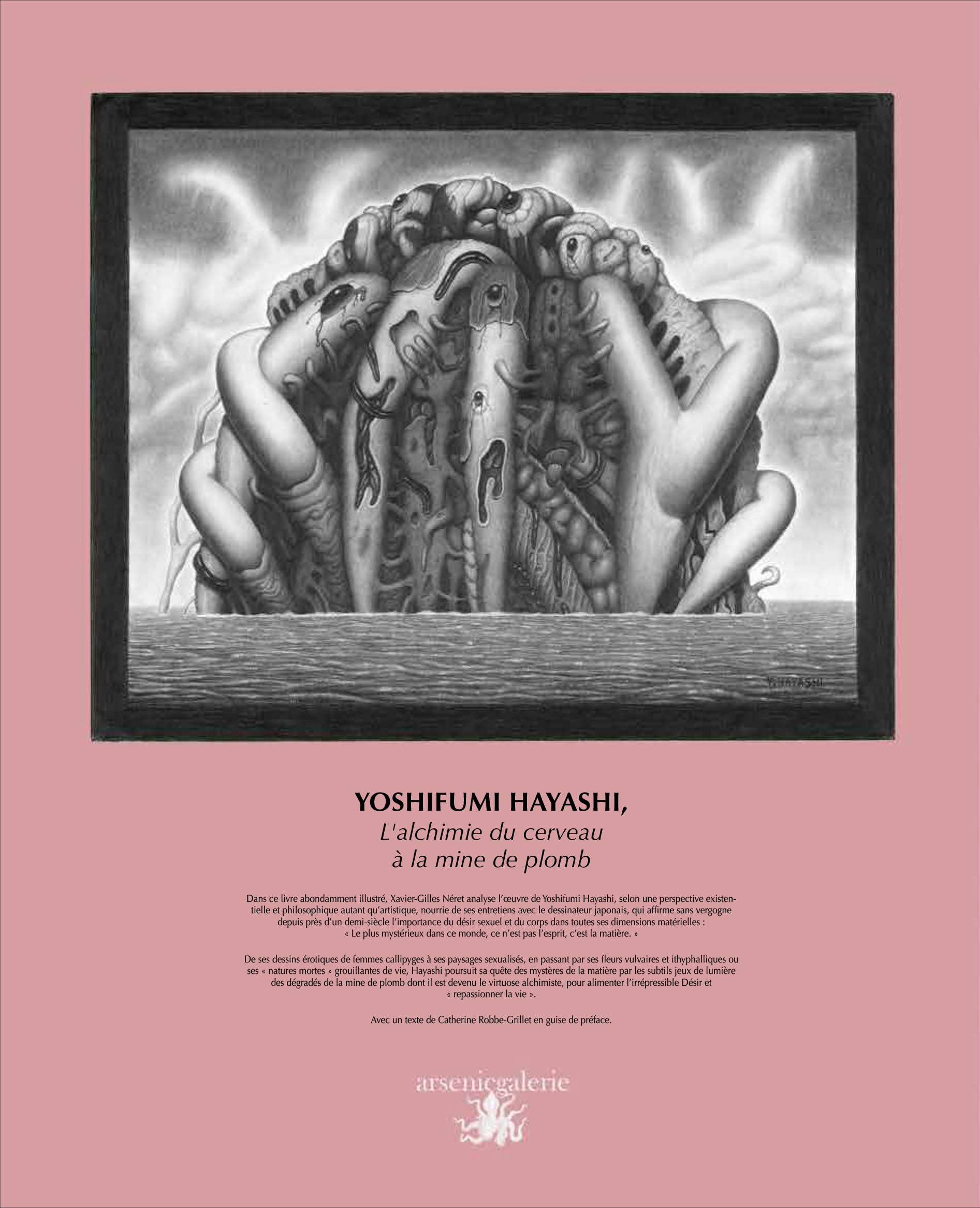 De ses dessins érotiques de femmes callipyges à ses paysages sexualisés, en passant par ses fleurs vulvaires et ithyphalliques ou ses « natures mortes » grouillantes de vie, Hayashi poursuit sa quête des mystères de la matière par les subtils jeux de lumière des dégradés de la mine de plomb dont il est devenu le virtuose alchimiste, pour alimenter l'irrépressible désir et « repassionner la vie ».