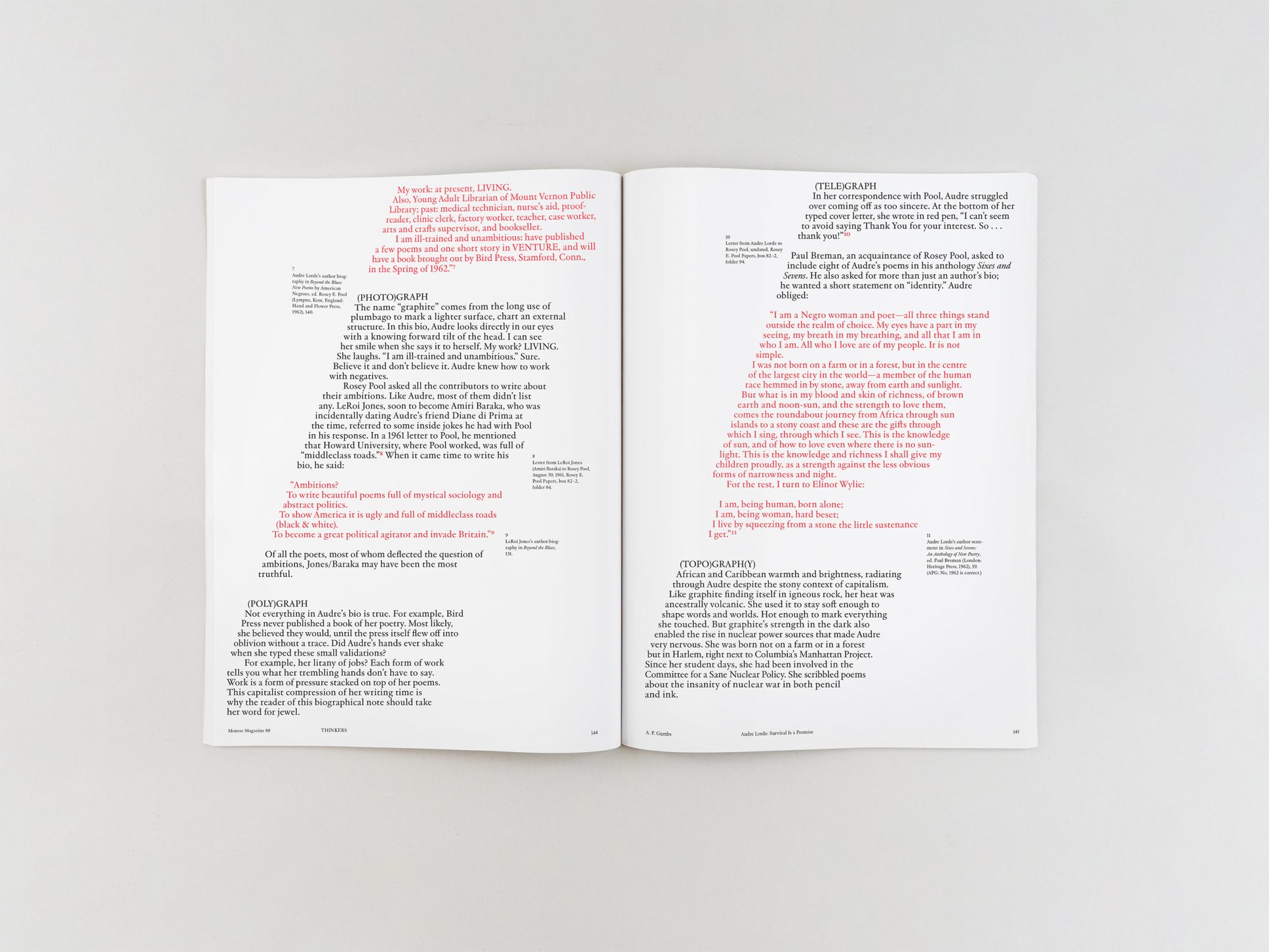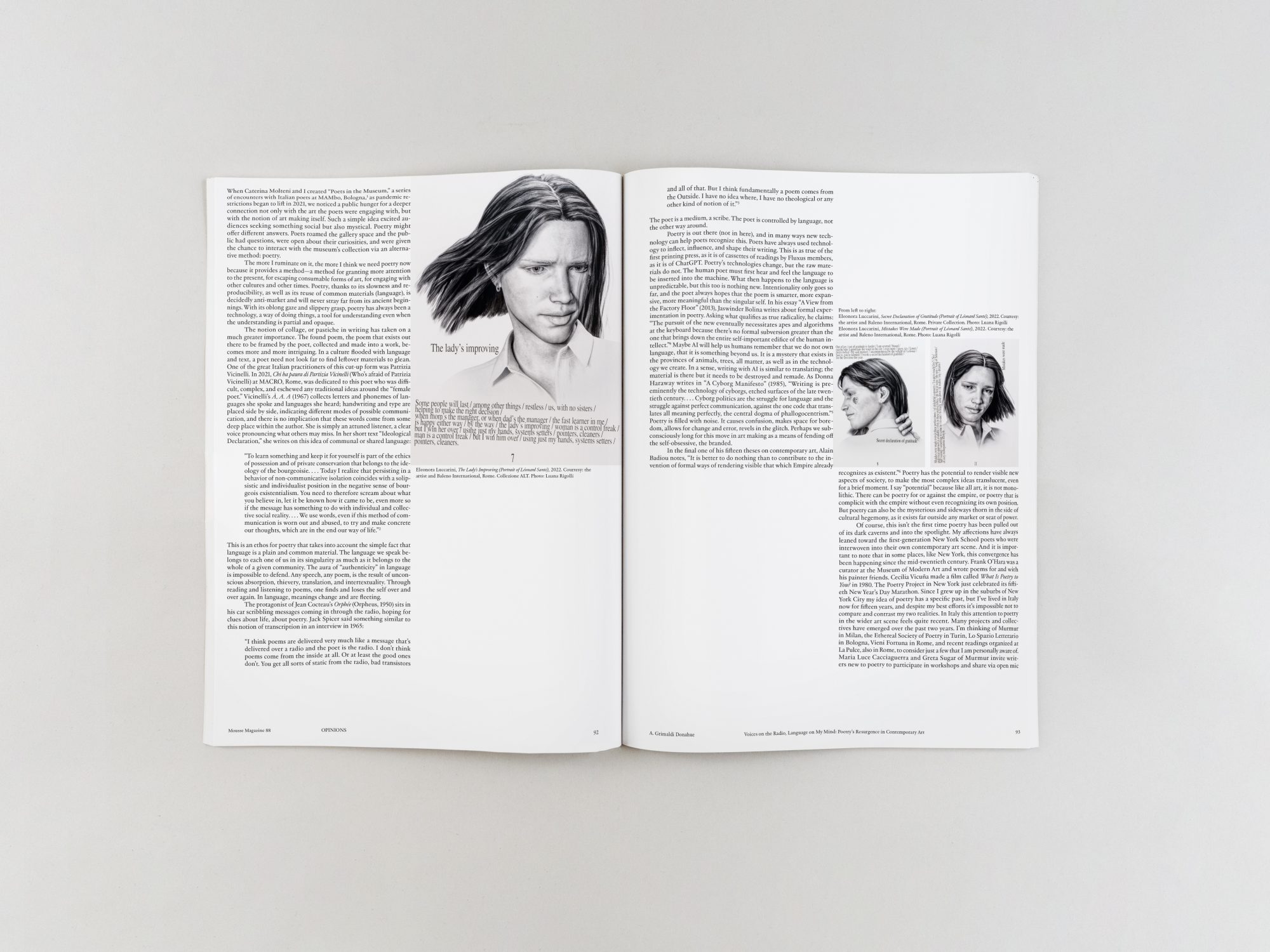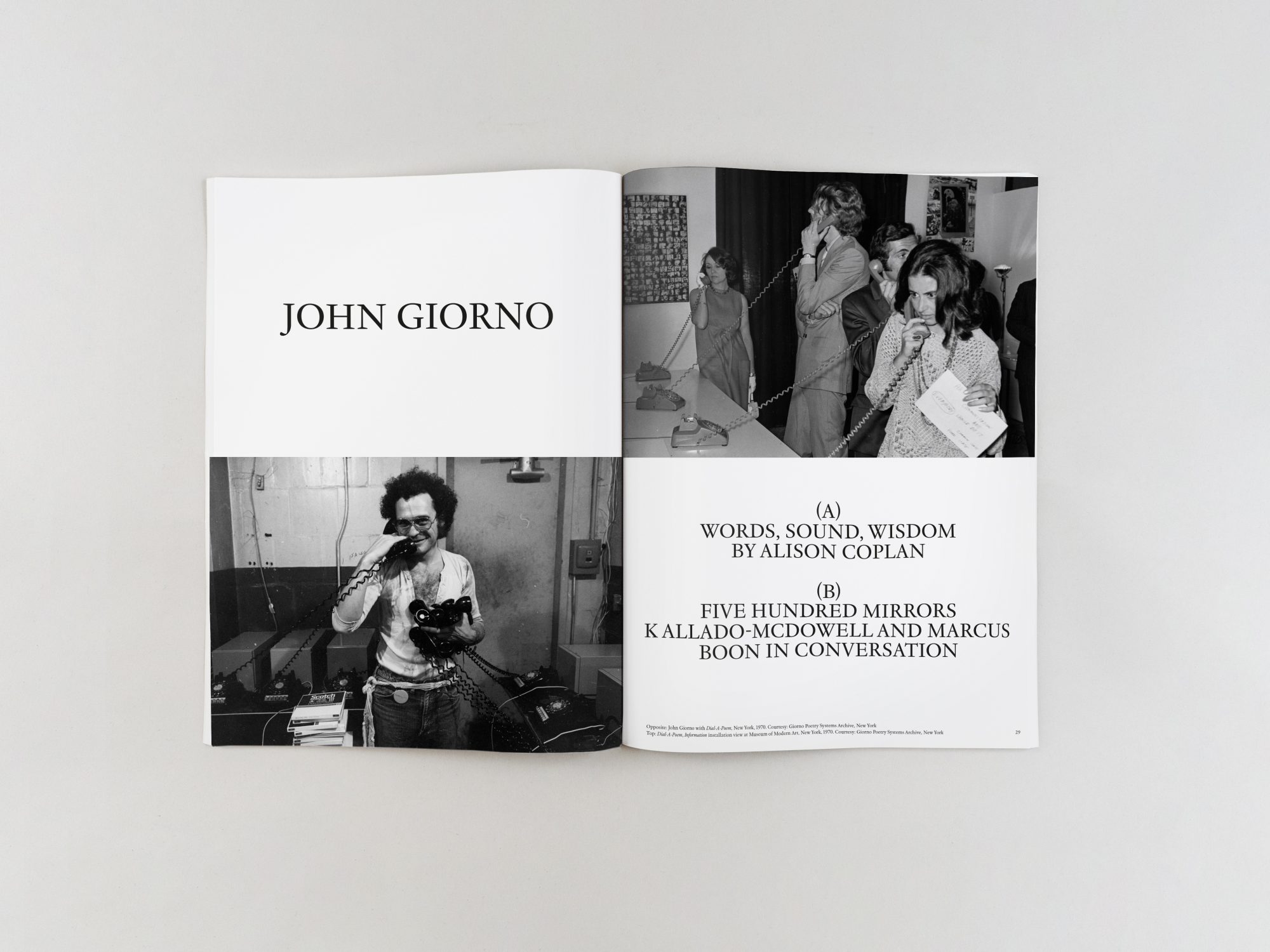 Dear readers, do you sometimes read poems? Then again, who says that poetry should (only) be read? Like John Giorno, we focus on the powers of the human voice, performed as spoken word, recorded, broadcasted, reverberated. Alexis Pauline Gumbs, in her upcoming biography of Audre Lorde, speaks of "survival poetics." Poetics and politics cross paths, as we hope our pages will likewise do.