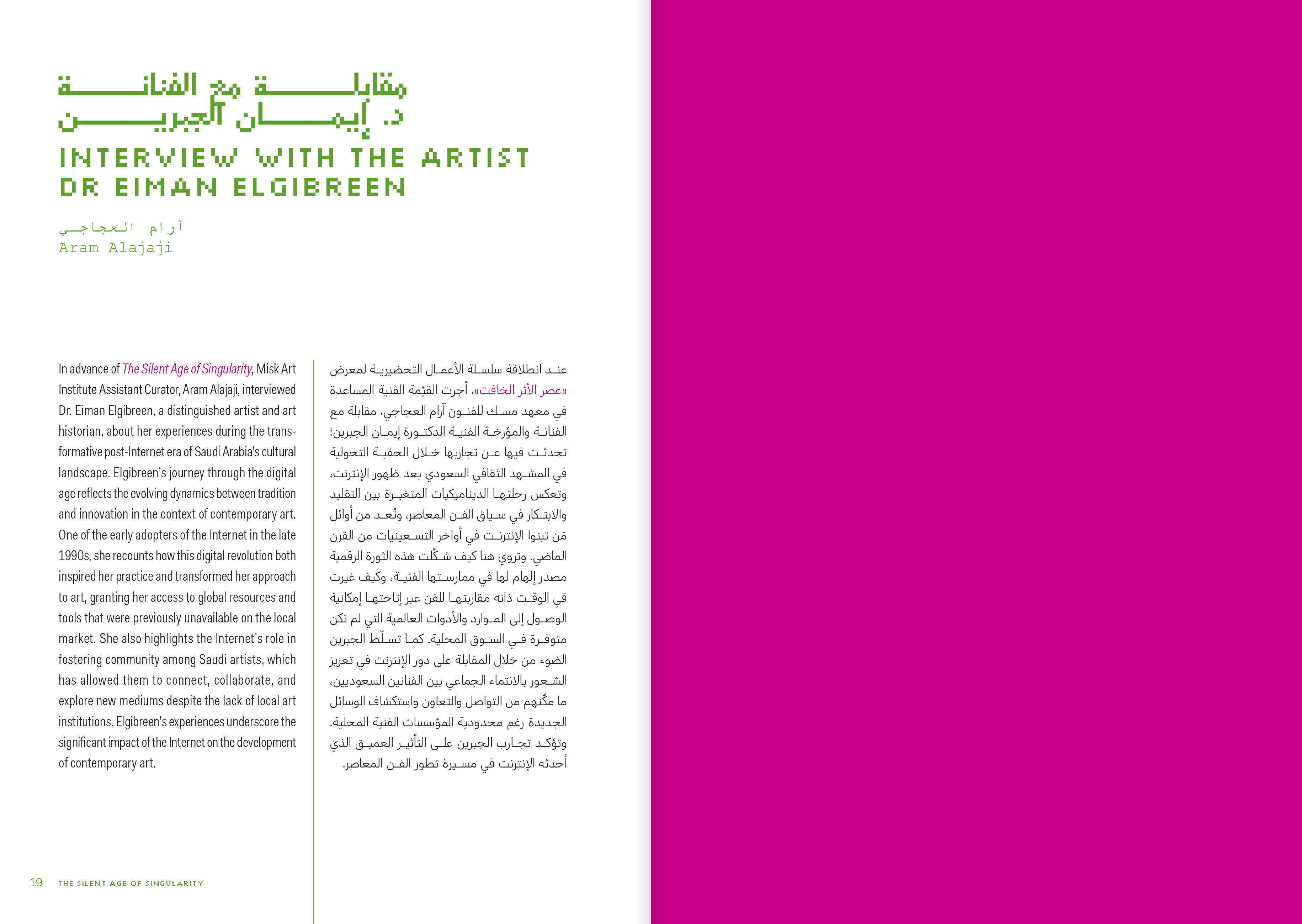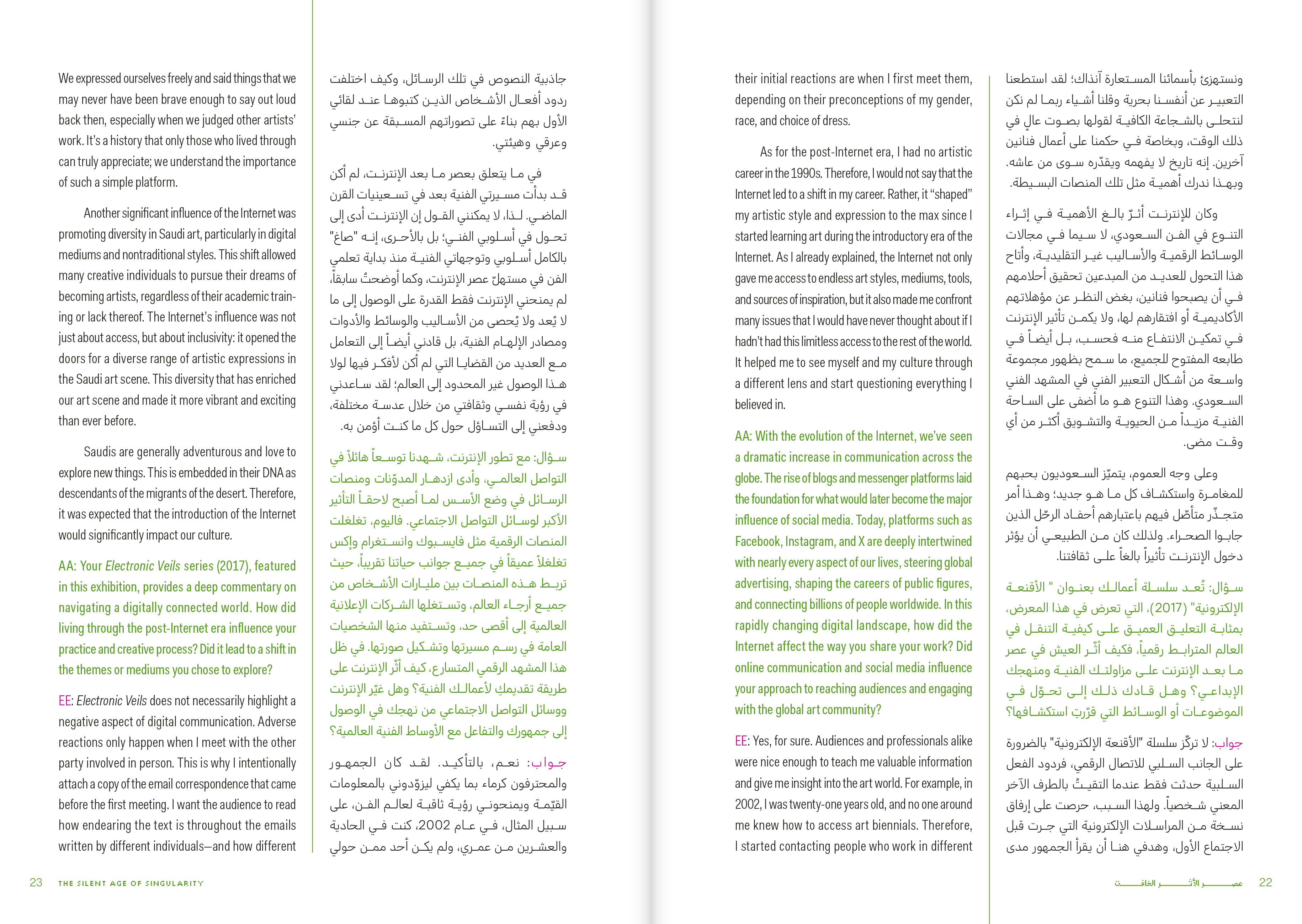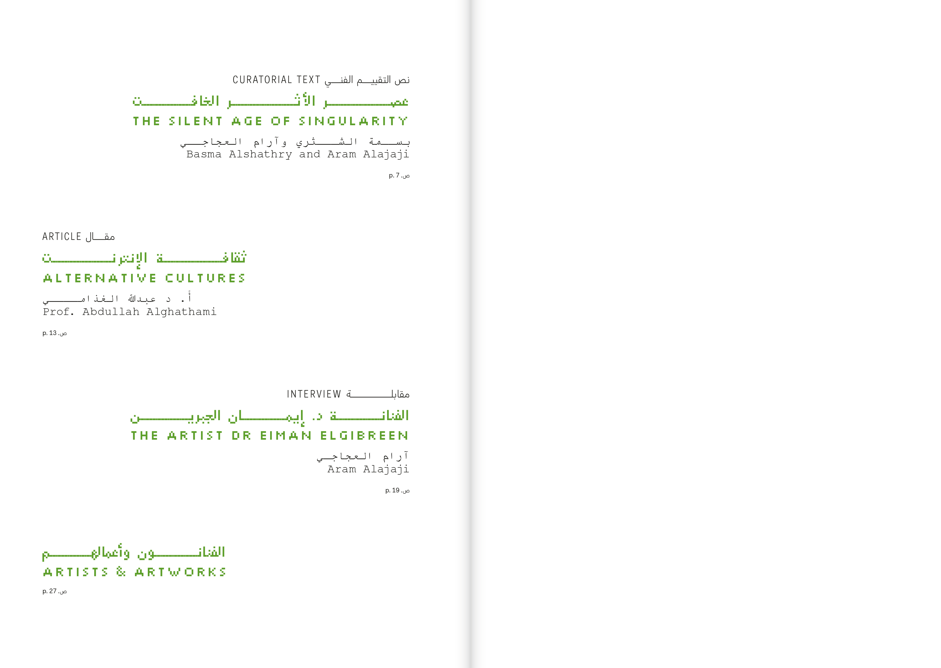 Le catalogue d'une exposition explorant, à travers les œuvres d'une vingtaine d'artistes d'Arabie saoudite, du Moyen-Orient, du Maghreb et de la scène internationale, les bouleversements d'une période marquée par la présence de la technologie, l'ère post-internet.