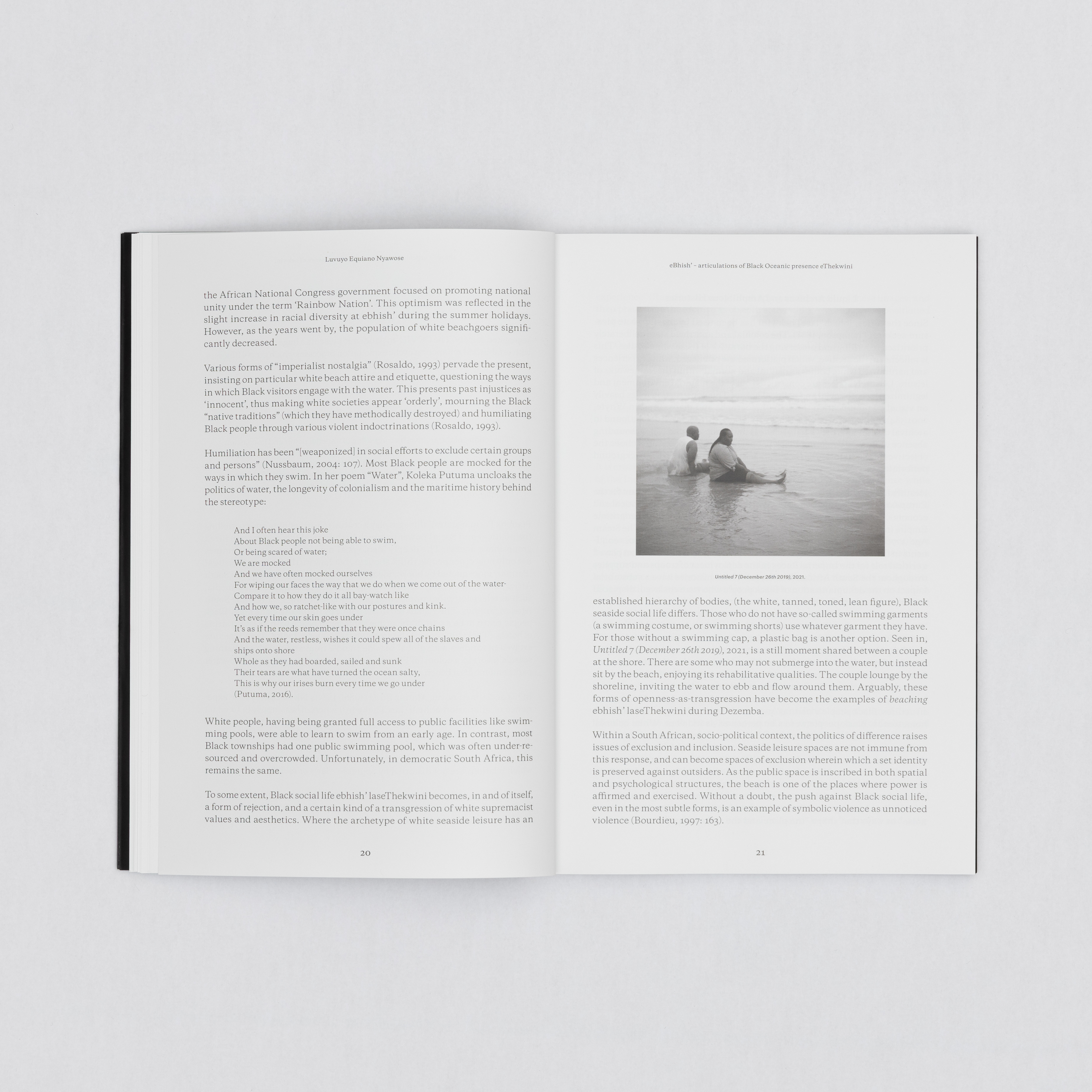eBhish' presents a chorus of voices on notions of Black social life, public communion and humanities of the Indian Ocean. While some contributors respond to the ongoing series eBhish' others share their critical perspectives and ponder on the intimacy and vastness of being Black at the beach.