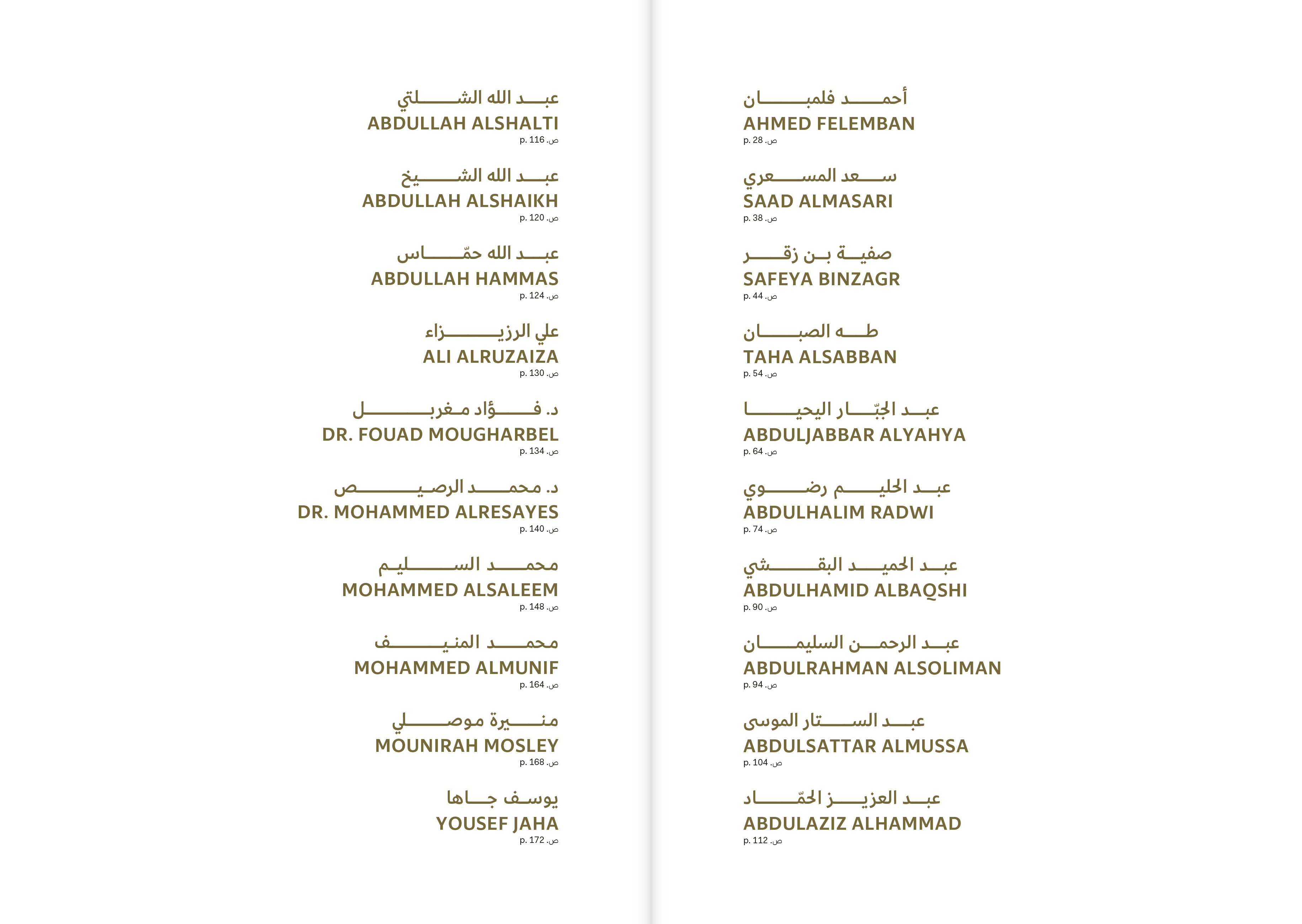 Avec Abdullah Alshalti, Abdullah Alshaikh, Abdullah Hammas, Ali Alruzaiza, Dr. Fouad Mougharbel, Mohammed Alresayes, Mohammed Alsaleem, Mohammed Almunif, Mounirah Mosley, Yousef Jaha, Ahmed Felemban, Saad Almasari, Safeya Binzagr, Taha Alsabban, Abduljabbar Alyahya, Abdulhalim Radwi, Abdulhamid Albaqshi, Abdulrahman Alsoliman, Abdulsattar Almussa, Abdulaziz Alhammad.