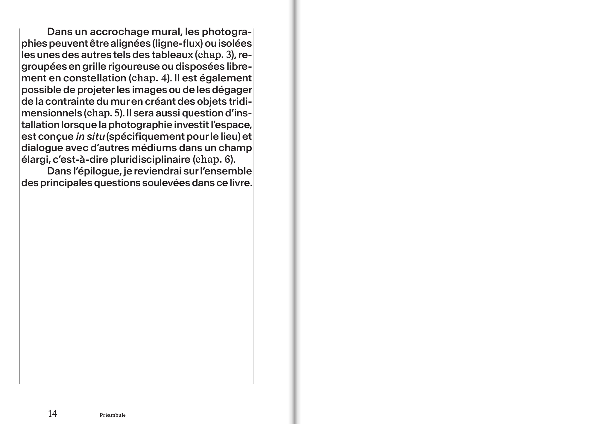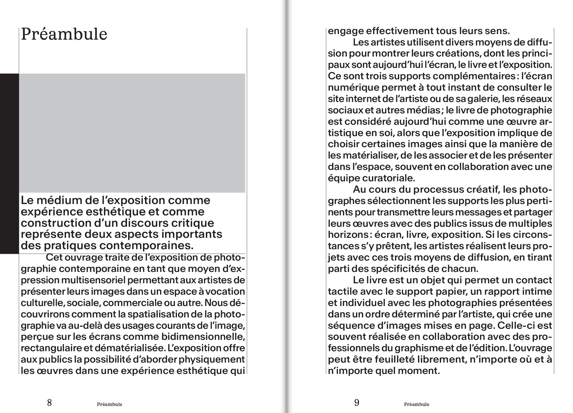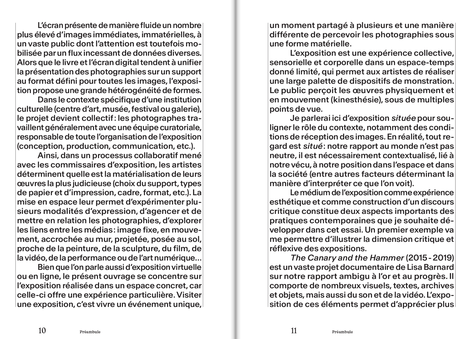 Quelles sont les relations entre exposition et photographie ? La mise en espace valorise-t-elle la malléabilité de la photographie et sa fluidité au sein des médias digitaux ? Permet-elle aux artistes de développer l'expérimentation ? Comment s'effectue la collaboration avec les curators ? Le public est-il invité à vivre une expérience inédite ? Ce livre propose d'aborder certaines des multiples questions que se posent les personnes qui apprécient l'exposition de photographie contemporaine comme moyen d'enrichir aussi bien leur expérience de l'art que leur vision du monde.