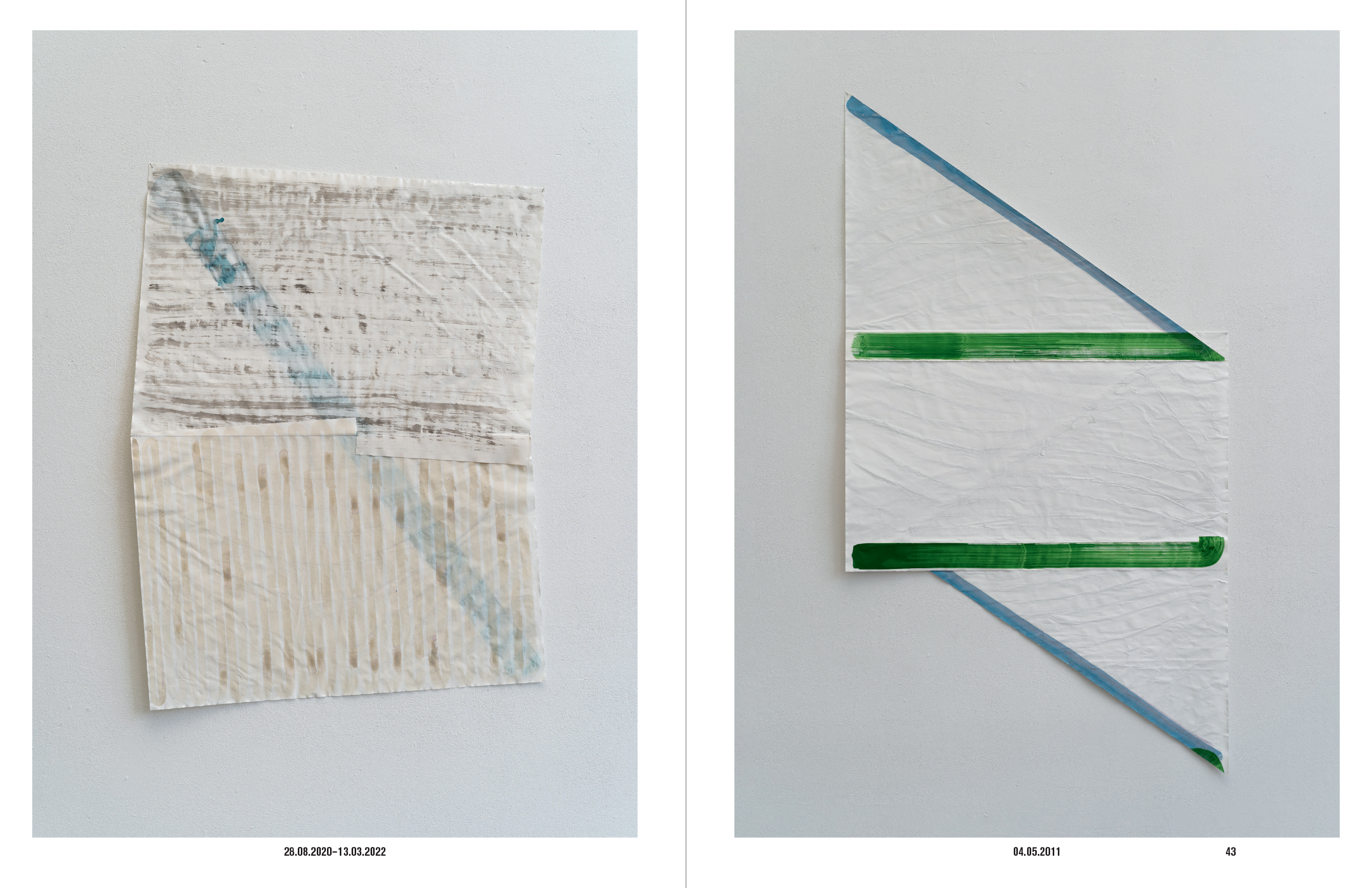 Ces dessins, nés de l'ouverture d'une feuille, s'articulent par une ou plusieurs charnières ; a minima un livre se constitue d'une feuille pliée en deux. Ici ces plis ne coïncident jamais, disons qu'ils se convoquent respectivement.