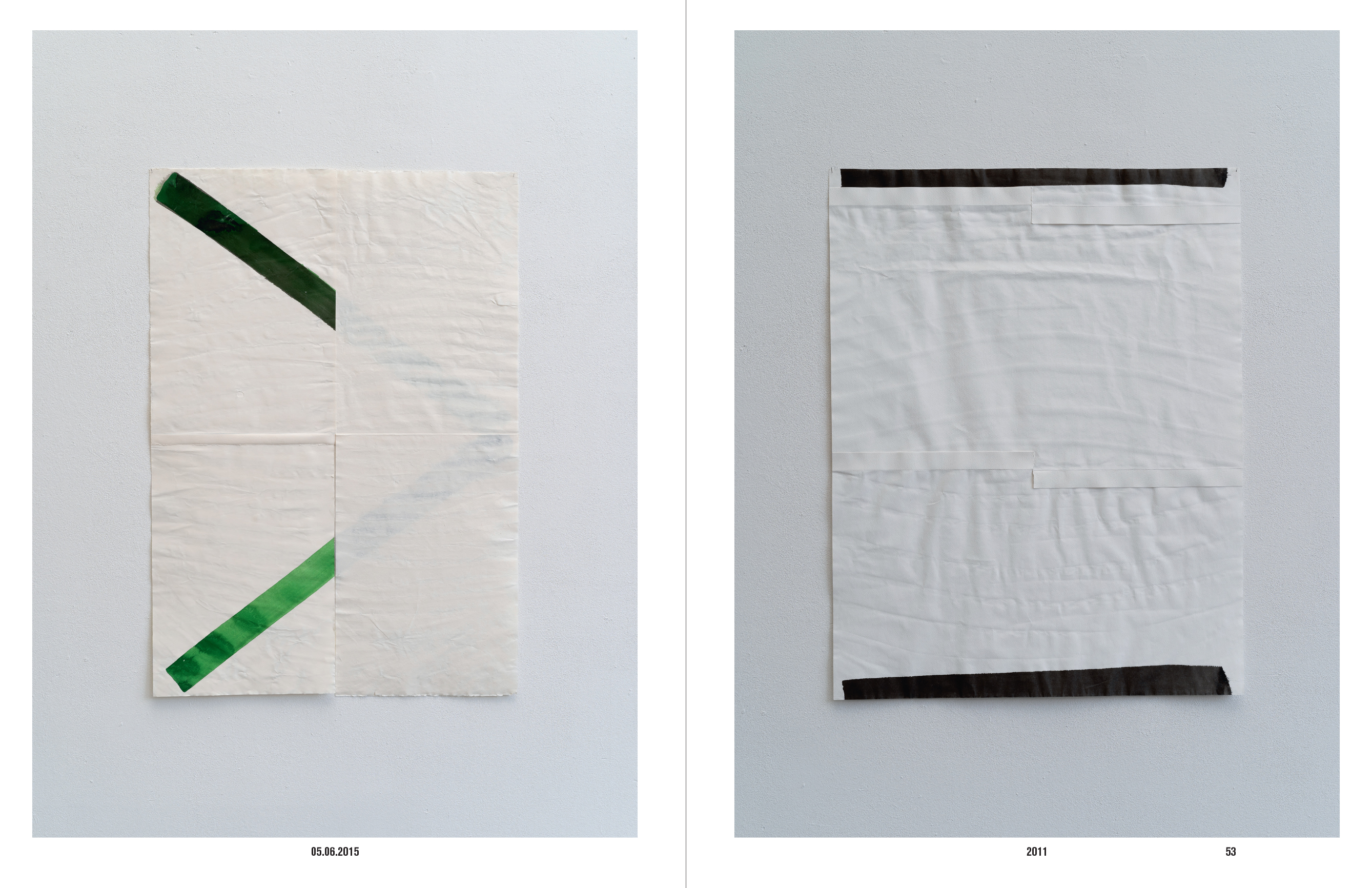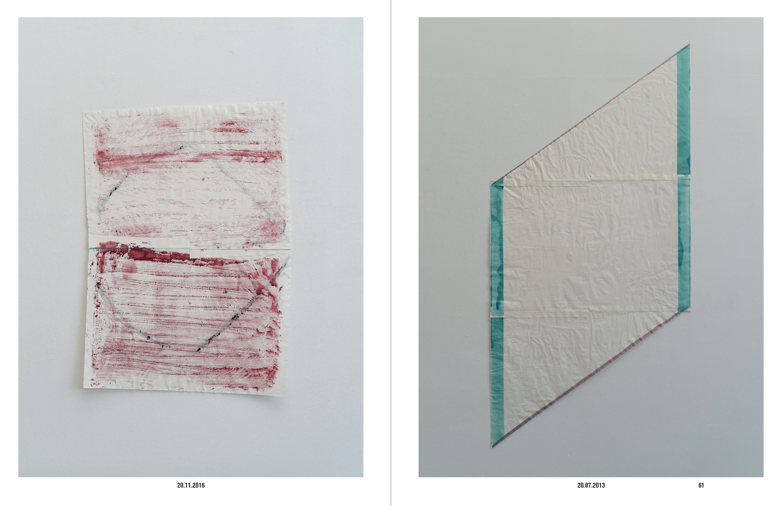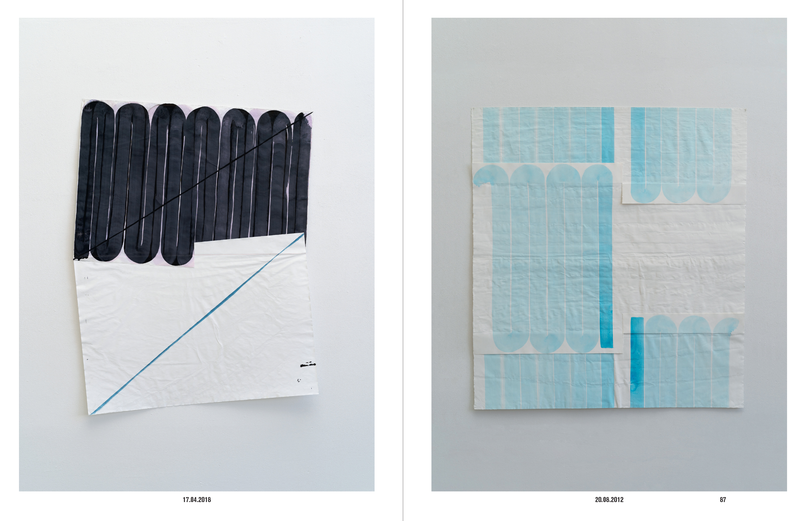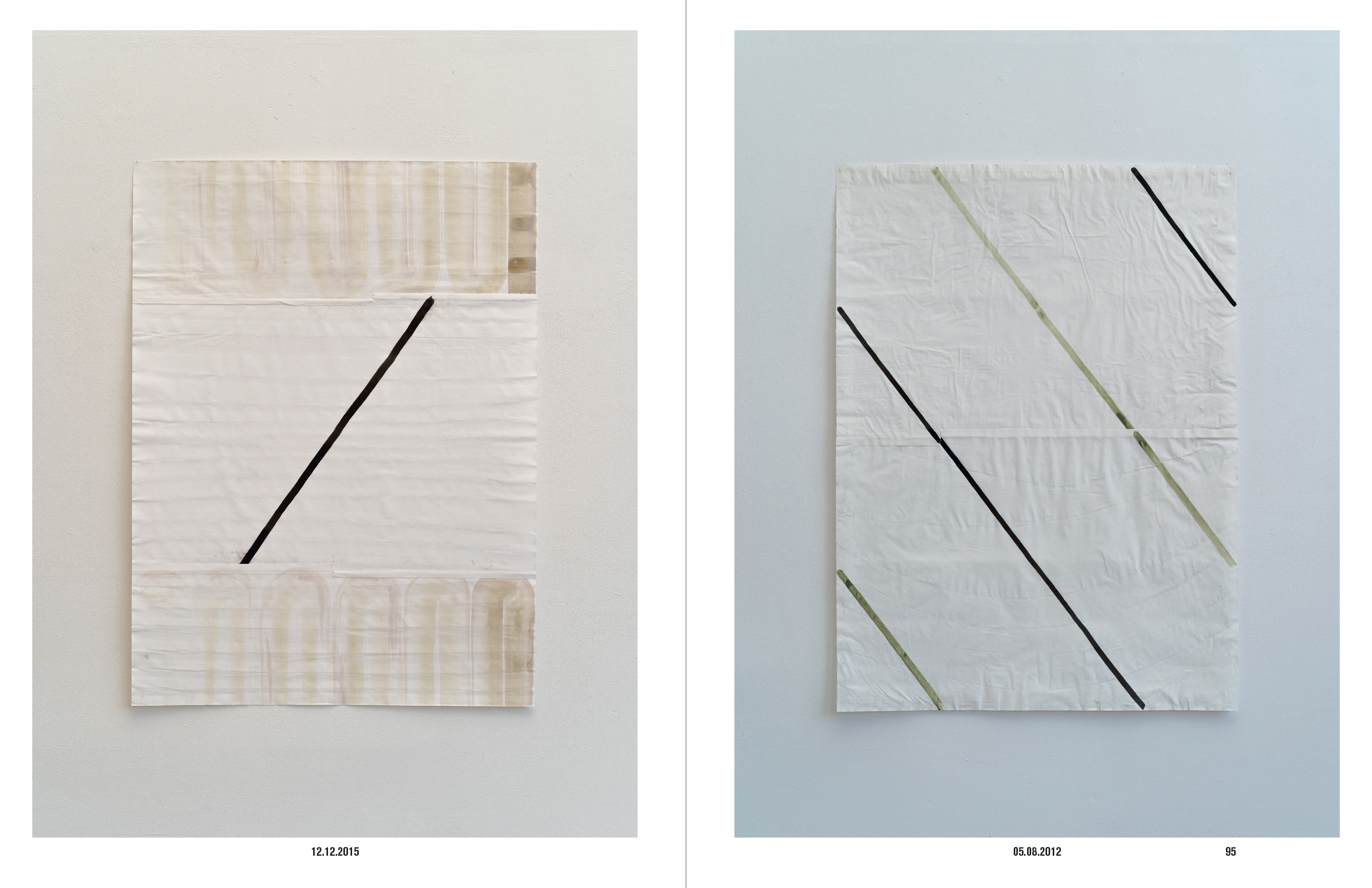 Ces « dessins » non figuratifs sollicitent le papier dans sa texture d'une manière que le livre ne peut rendre directement. Cependant, organisées en cahiers de 16 pages de deux papiers très différents, dévolus l'un à la reproduction des photographies, l'autre aux textes, la matière du papier et une hétérogénéité sont mises en œuvre.