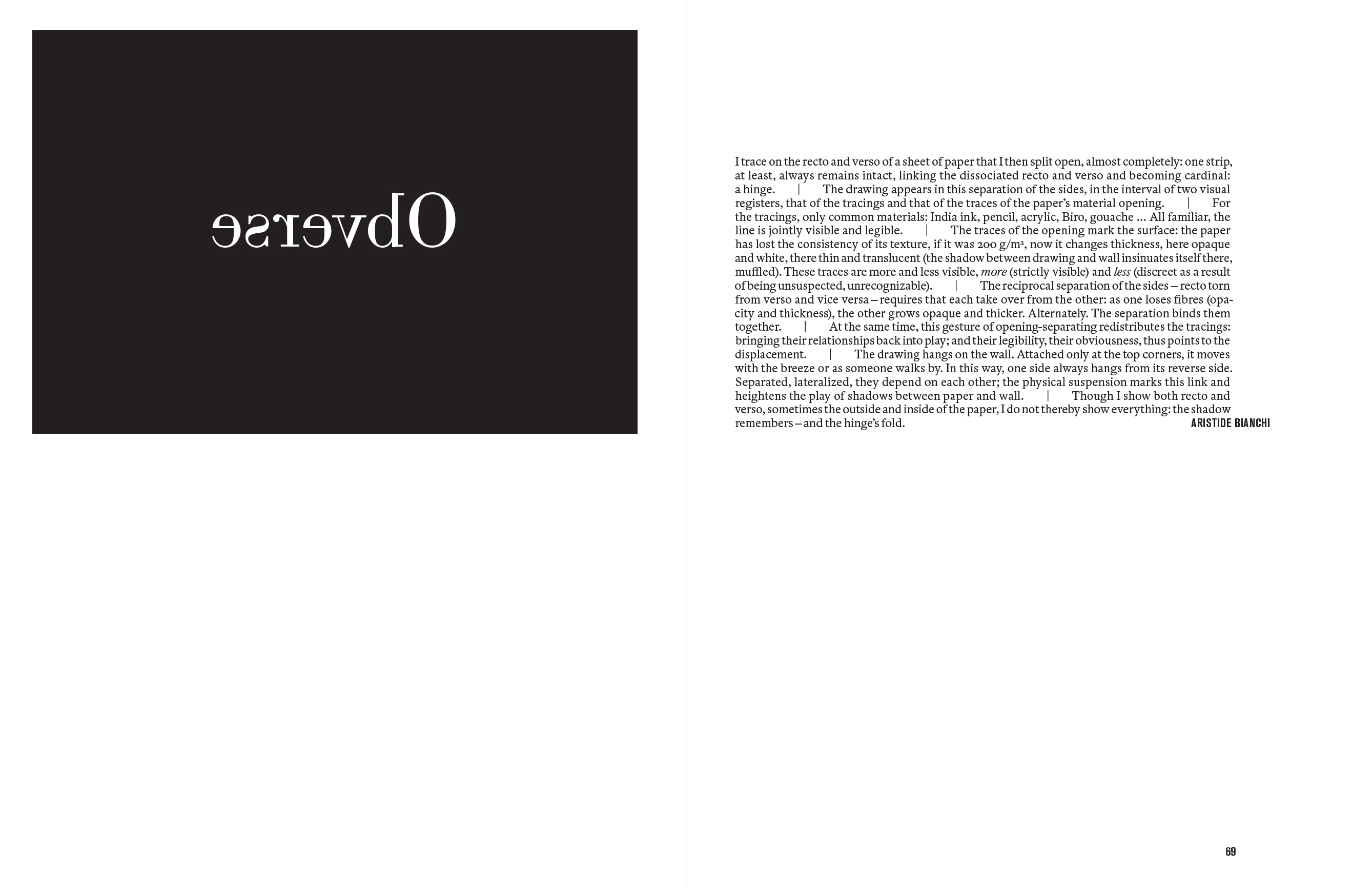 La première monographie d'Aristide Bianchi, consacrée à un geste plastique né au tournant du siècle : l'ouverture matérielle d'une feuille rencontrant des tracés préalables pour former dessin.