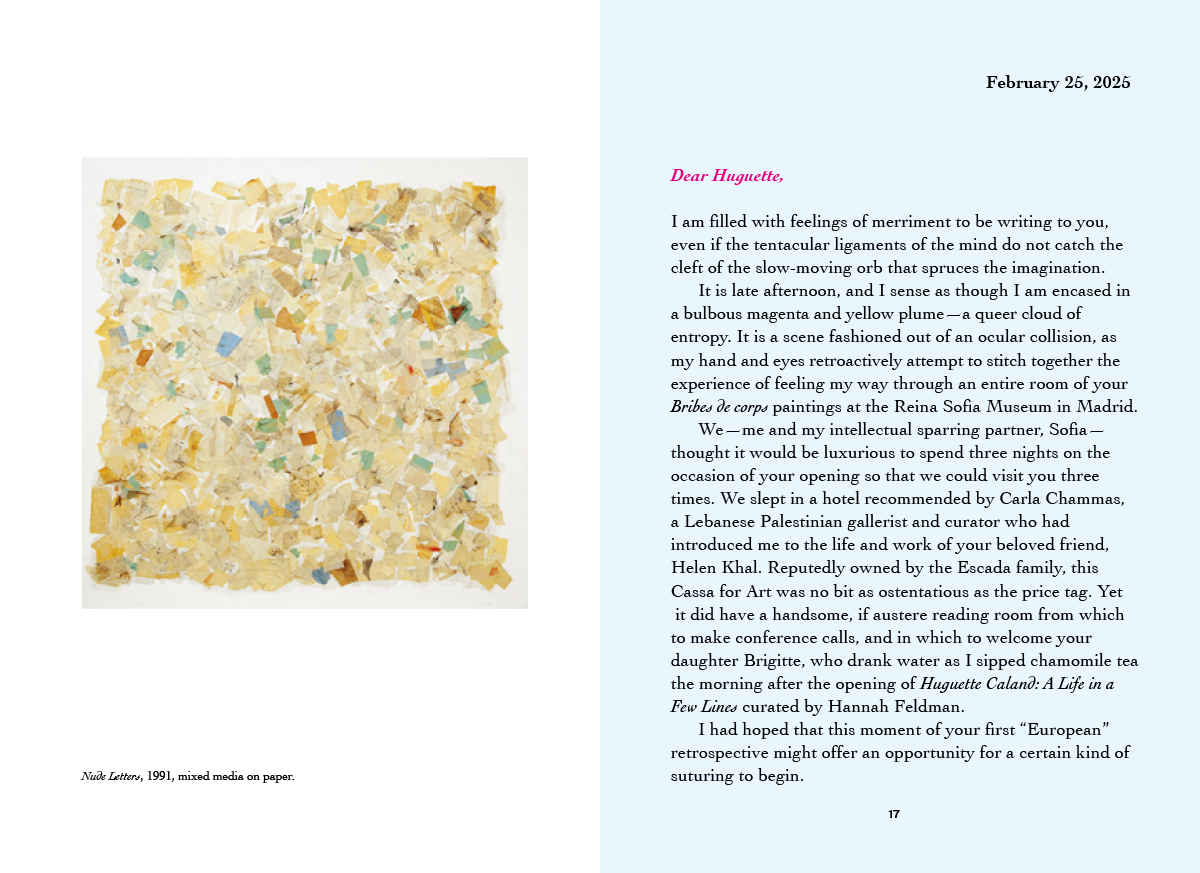 Un recueil de textes et d'images, de journaux intimes et de correspondances pour célébrer la personnalité singulière d'Huguette Caland, figure majeure de la scène artistique libanaise, et poursuivre un dialogue constant autour de l'érotisme de l'art.