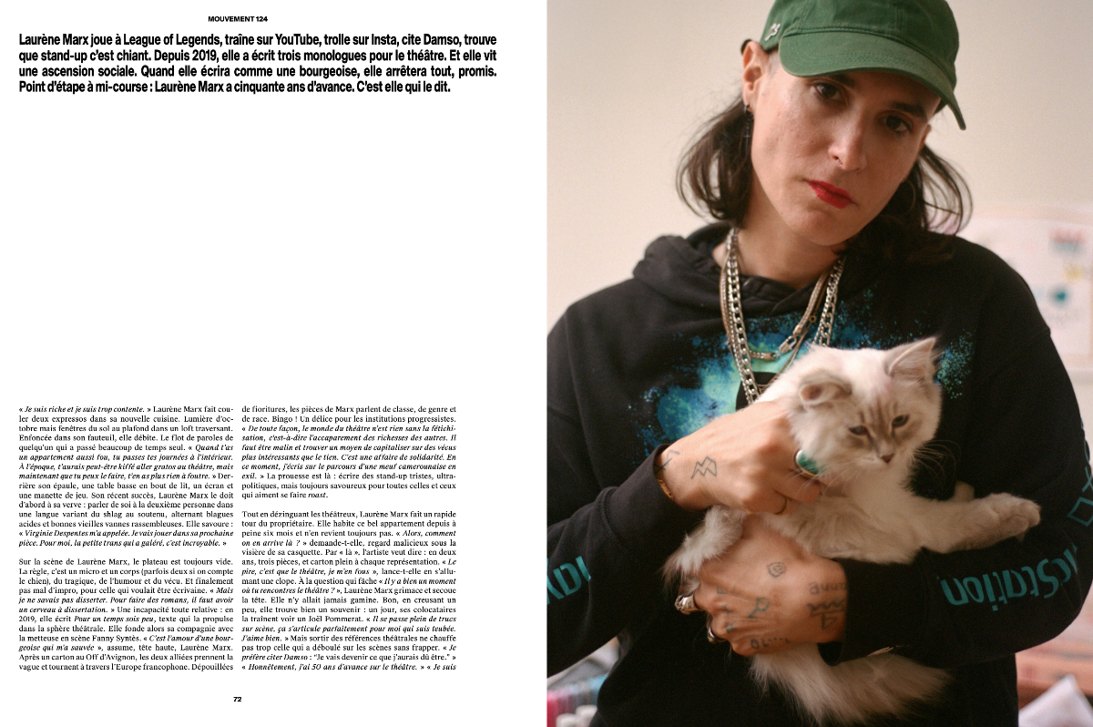 Mouvement est le seul magazine trimestriel consacré à toutes les facettes de la création contemporaine. Tout particulièrement attentif aux formes émergentes et aux propositions artistiques inclassables, Mouvement noue un dialogue en direct avec les acteurs culturels d'aujourd'hui. Carnets de création, reportages en coulisses, entretiens et portraits, ce magazine éclaire les recherches des artistes et leur donne la parole à travers des portfolios, des cartes blanches et des tribunes. Avec l'indépendance de ton qui le caractérise, Mouvement offre également une sélection d'événements culturels.