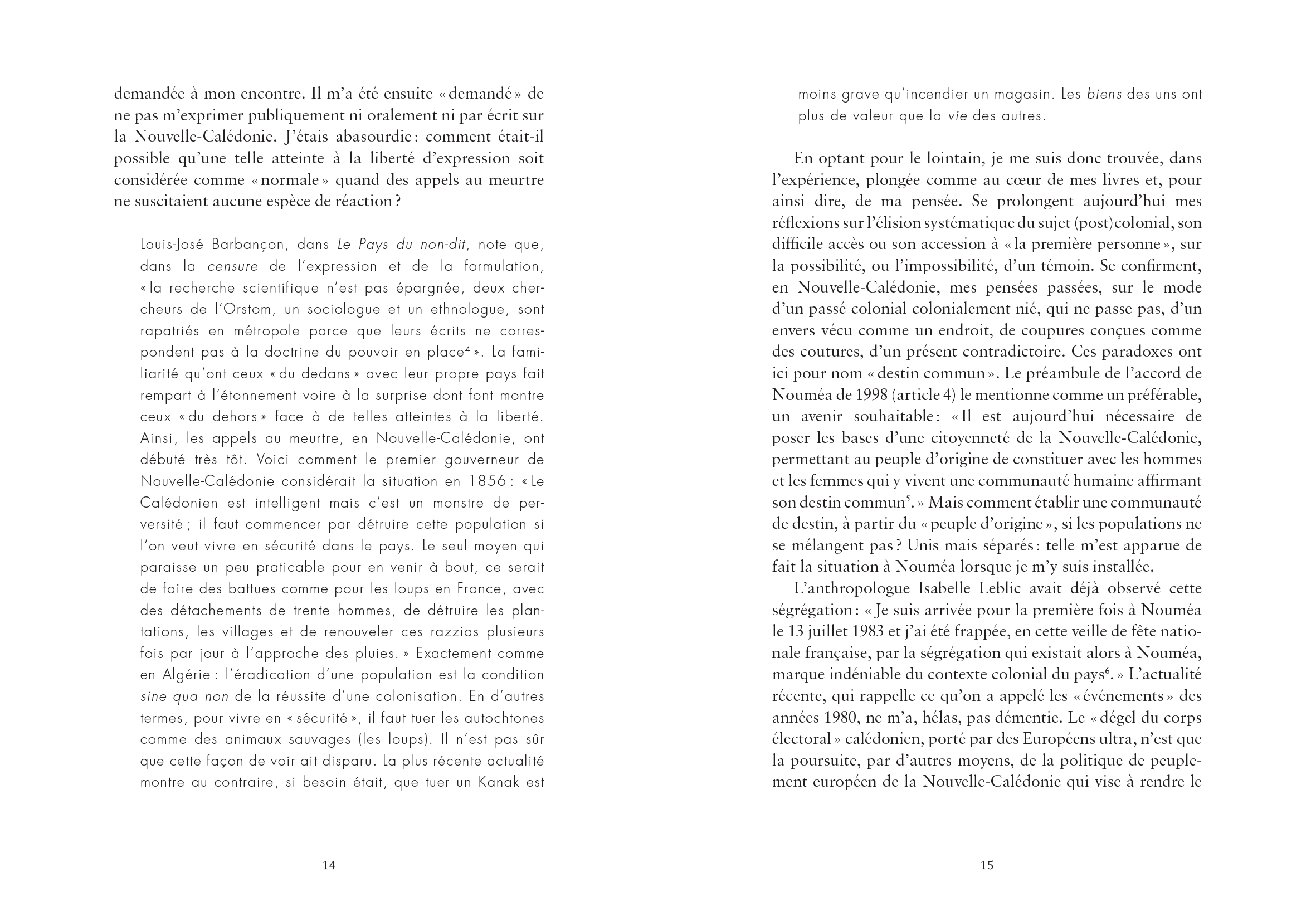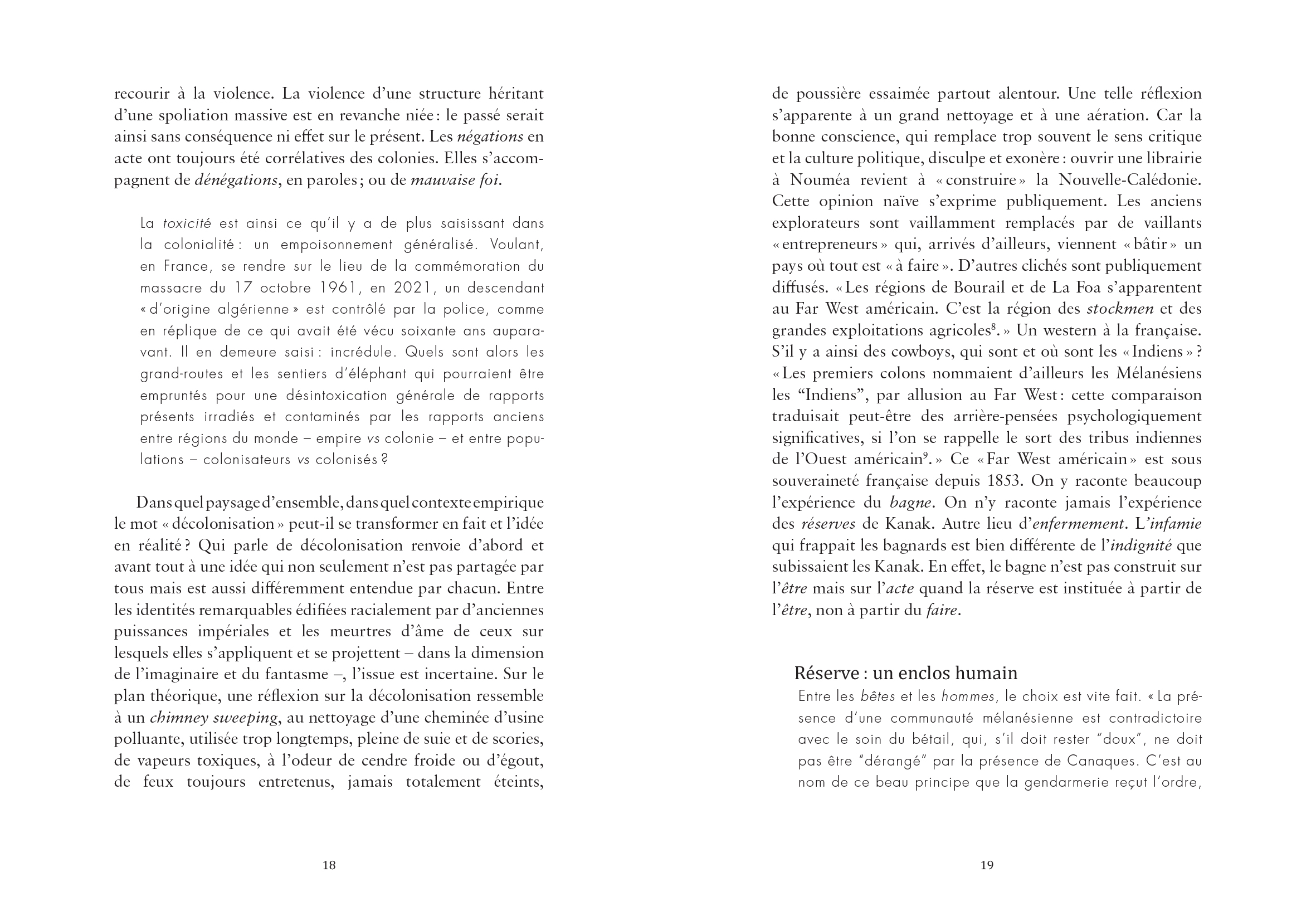 « Dans cet essai radical, la philosophe et politiste algéro-française Seloua Luste Boulbina explore, à partir de son expérience en Kanaky, les persistances coloniales qui enkystent le présent. [...] Une œuvre majeure du savoir sur la décolonisation. »