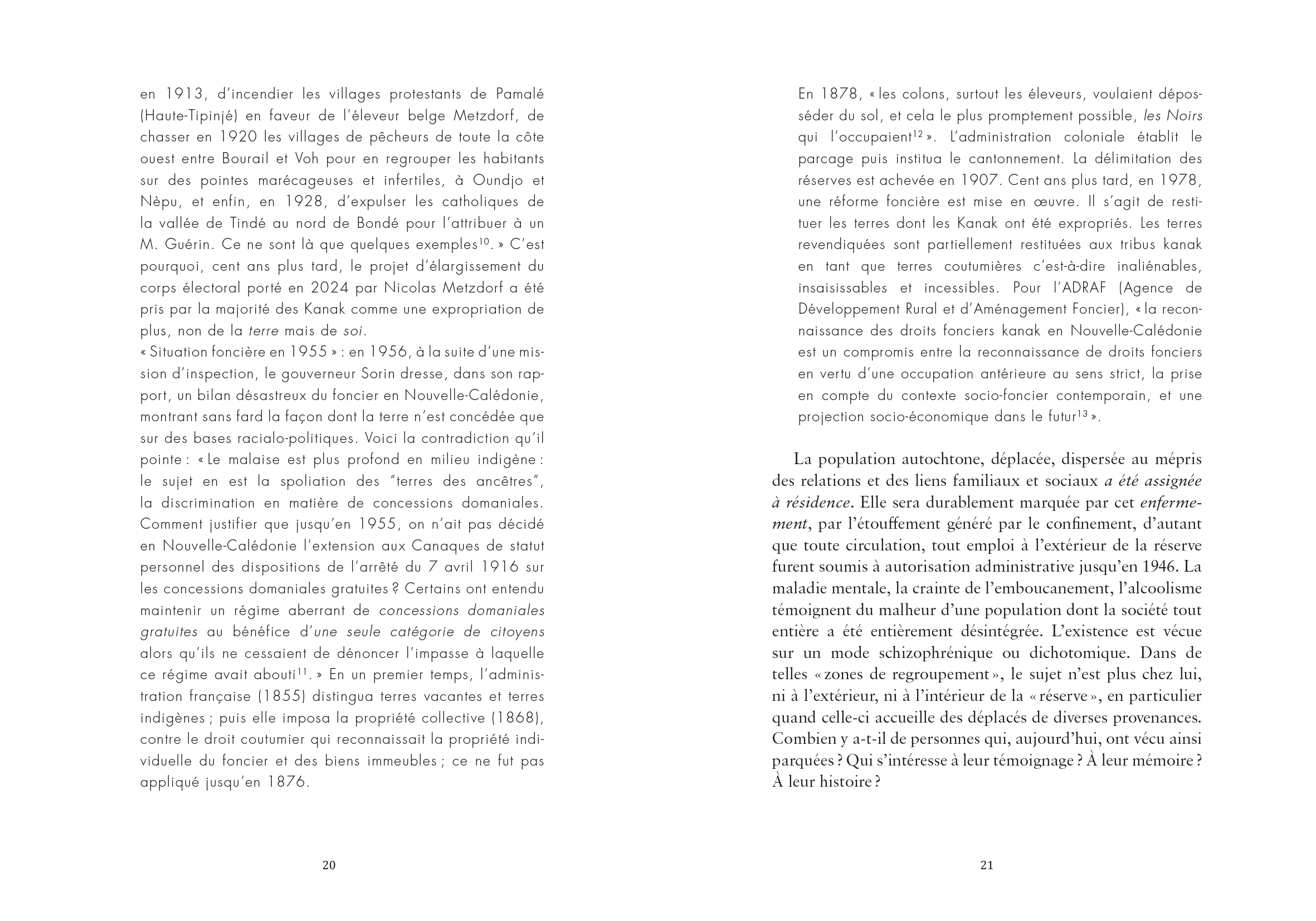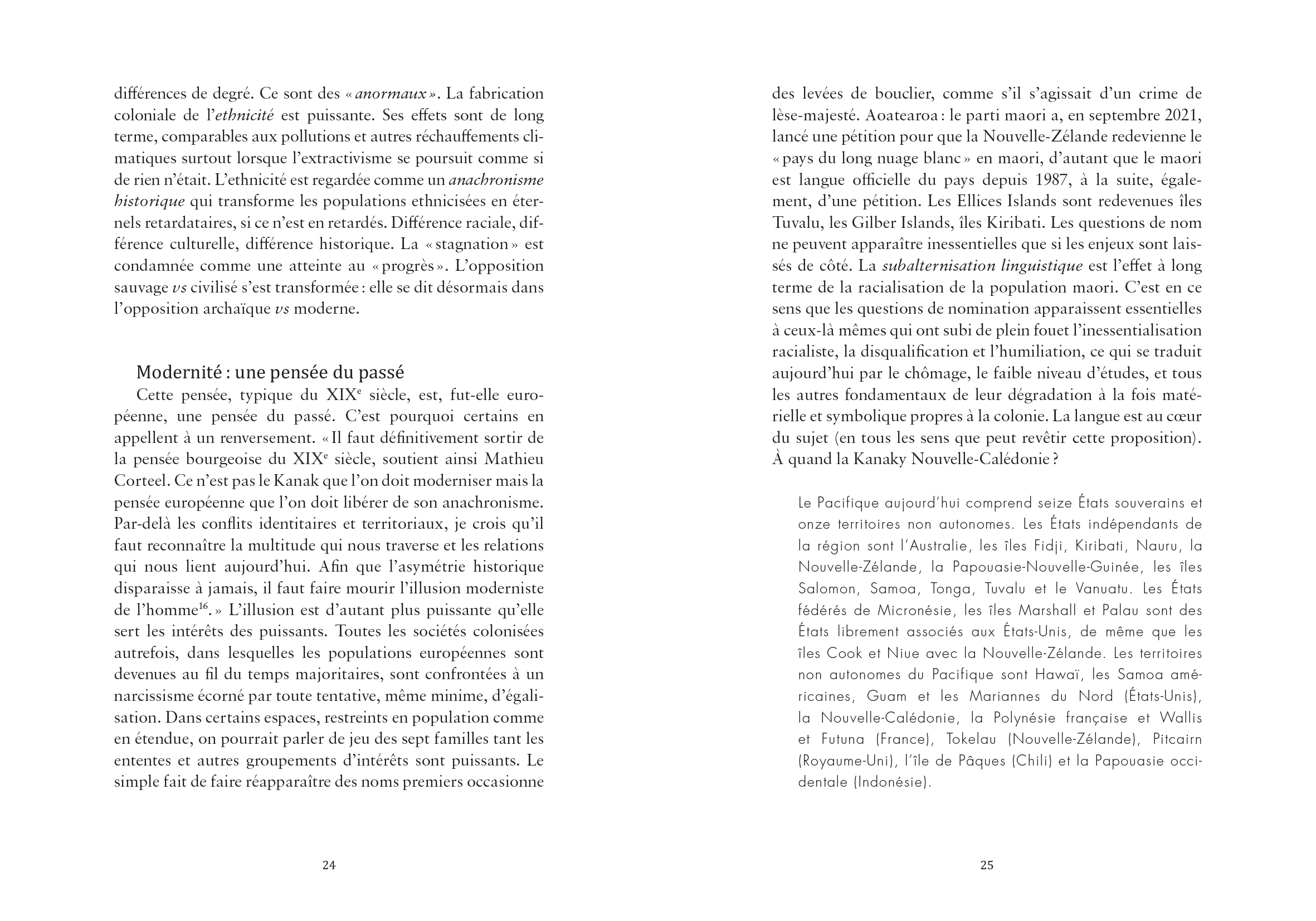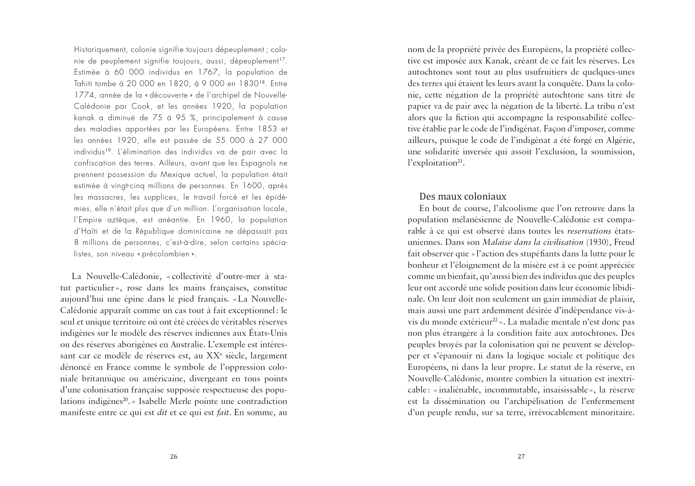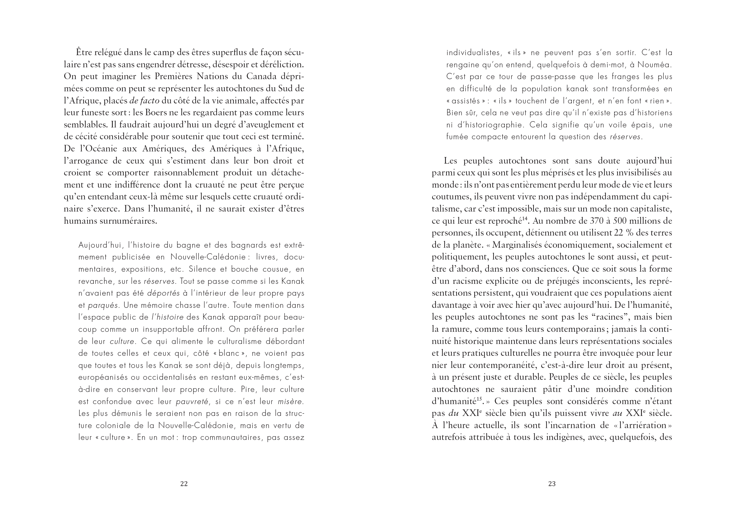 Les aberrations coloniales ne se sont pas évaporées. Leurs empreintes et leurs recompositions s'observent, aujourd'hui encore, un peu partout dans le monde. Leurs conséquences sont patentes. Au Nord et au Sud. L'existence sociale des Kanak de Nouvelle-Calédonie s'est-elle véritablement et profondément améliorée ? Qu'est-ce qui, en Haïti, hante encore ses citoyens ?